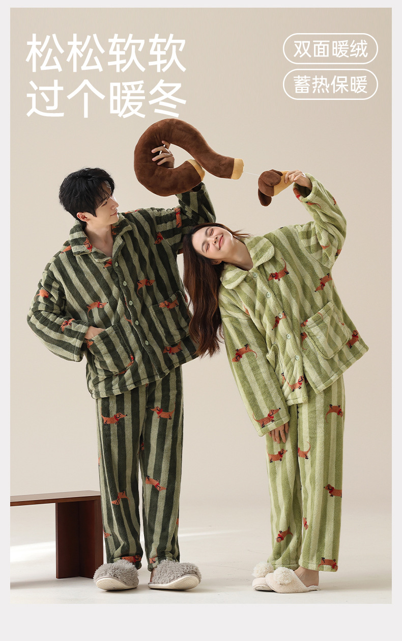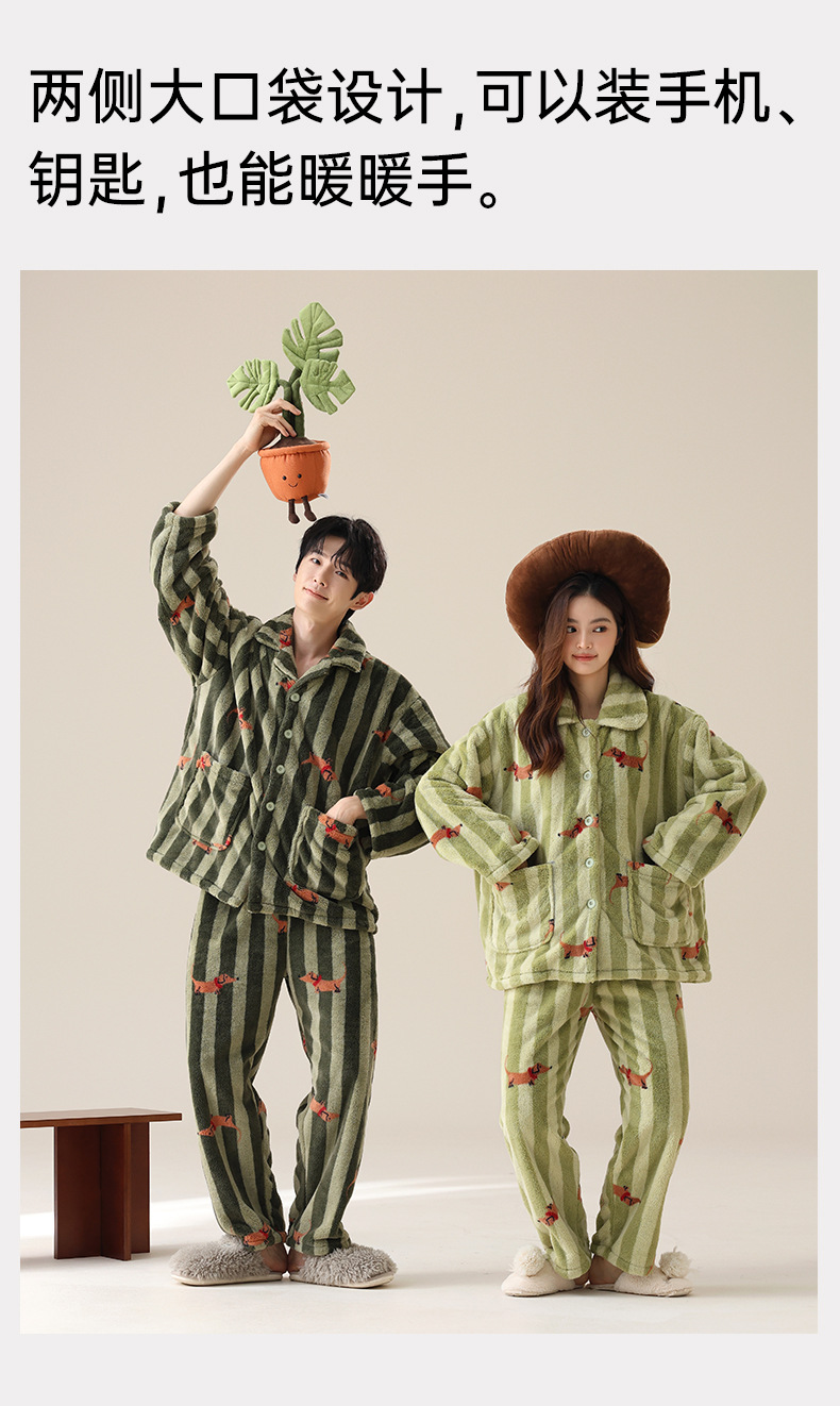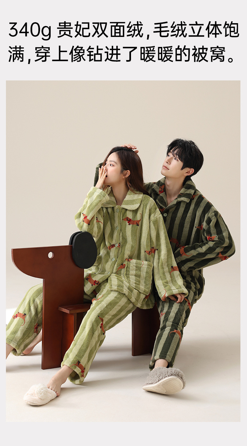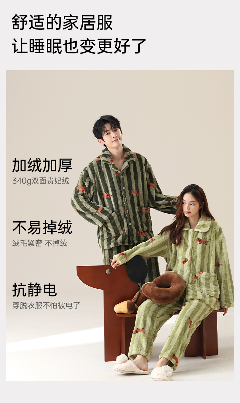 [소프트 벨벳] 겨울 커플 잠옷 여성 산호 벨벳 패딩 남성 플란넬 세트스토어 가기