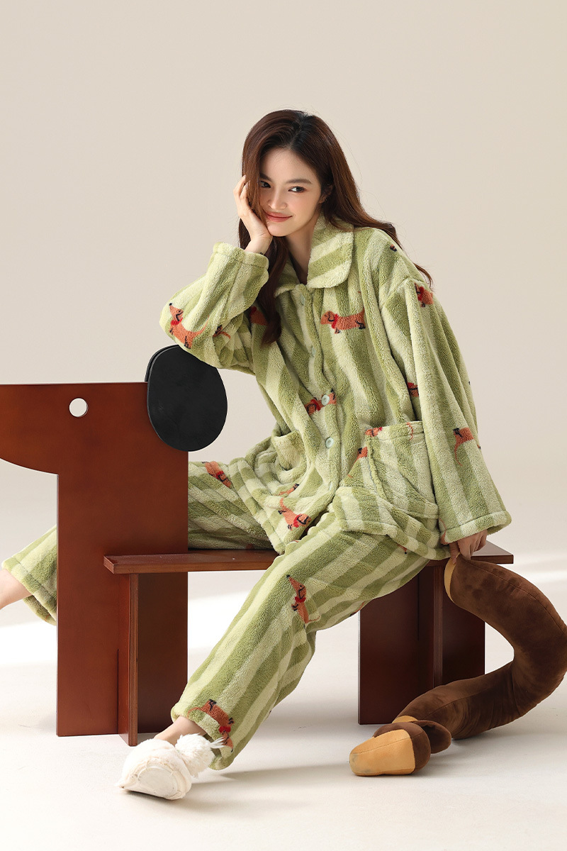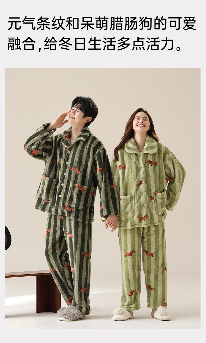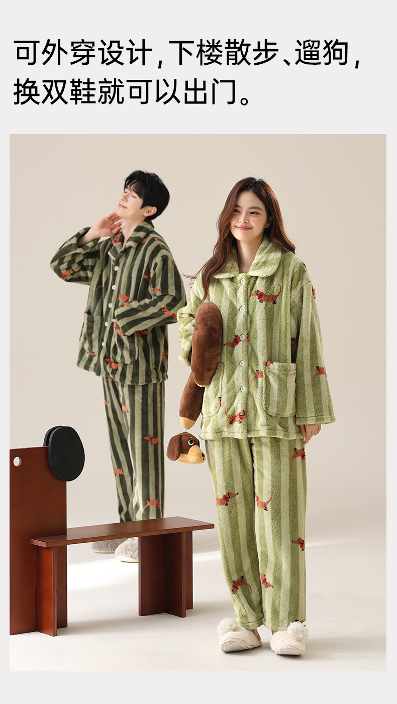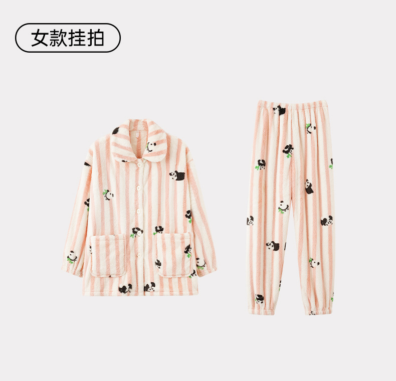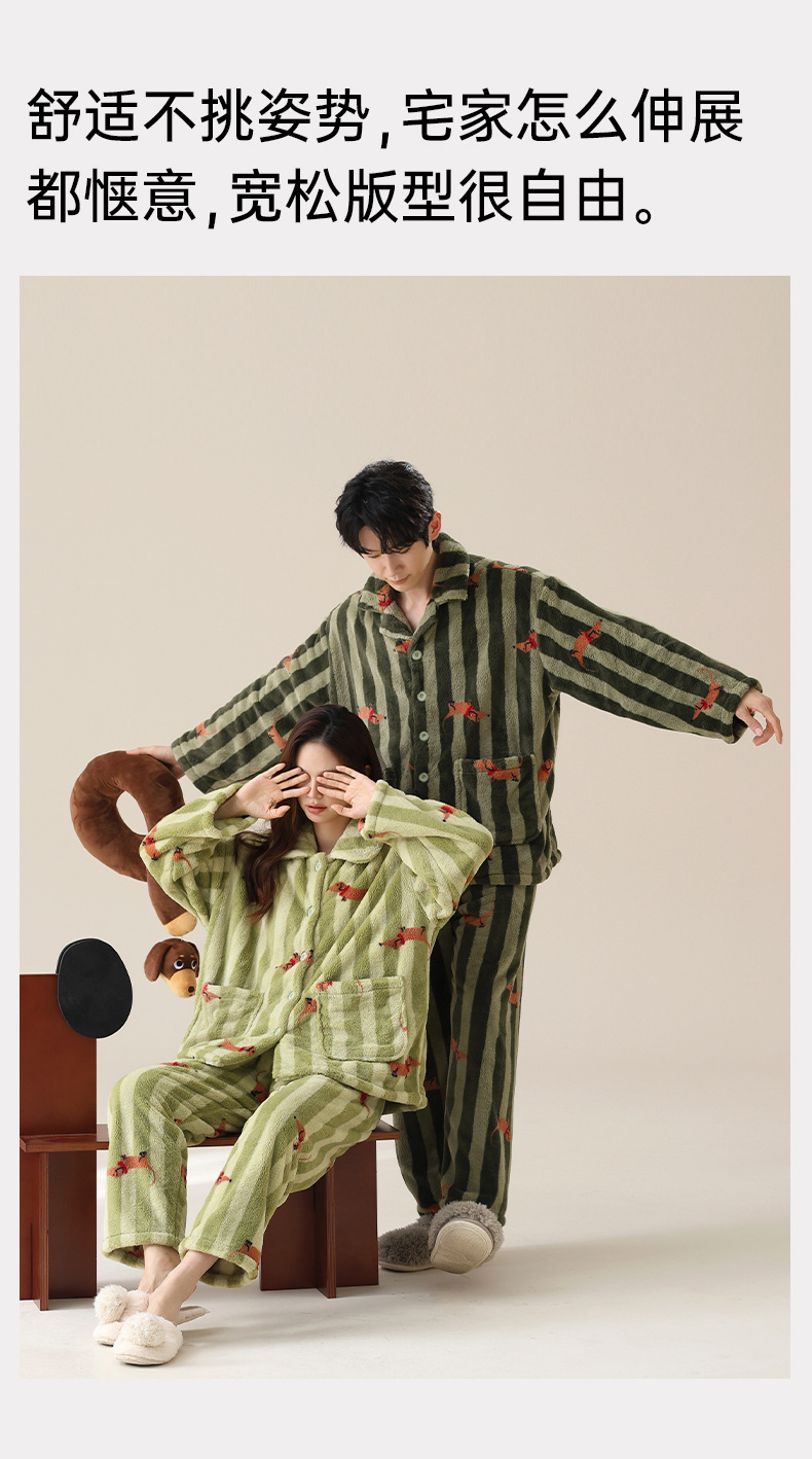 [소프트 벨벳] 겨울 커플 잠옷 여성 산호 벨벳 패딩 남성 플란넬 세트스토어 가기