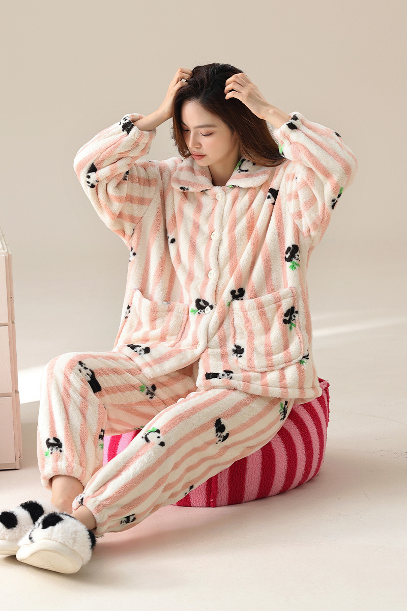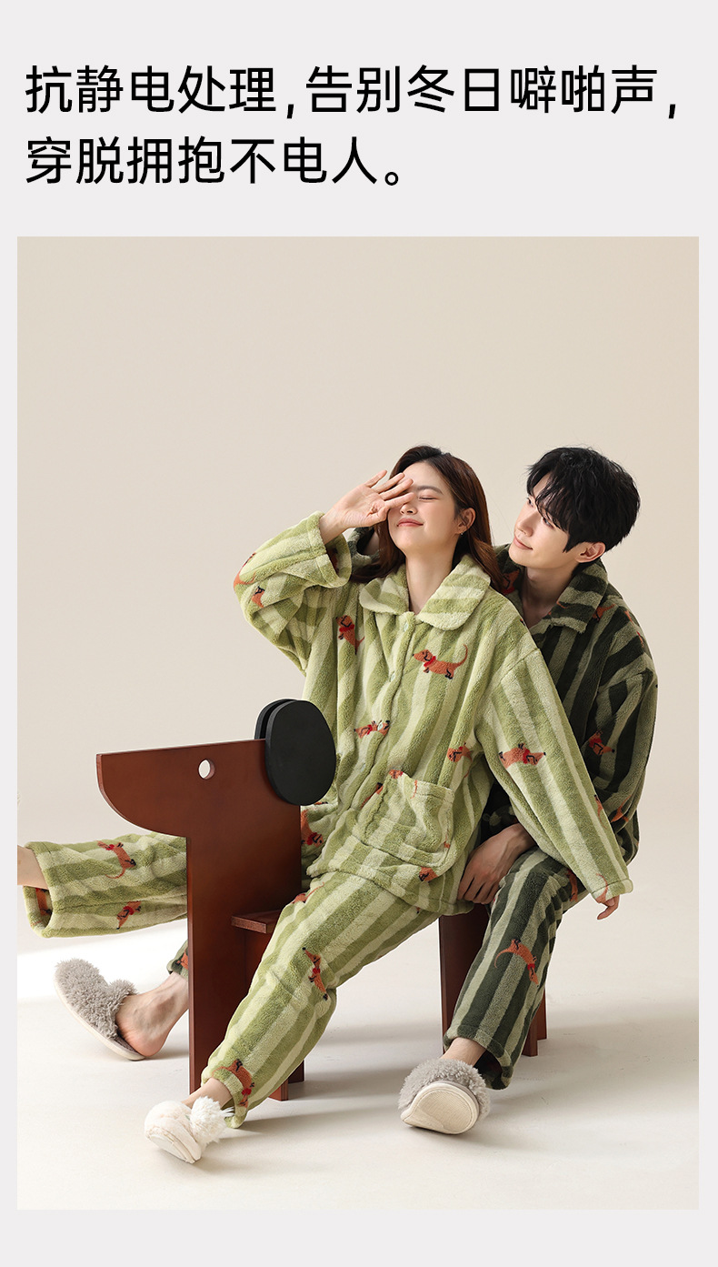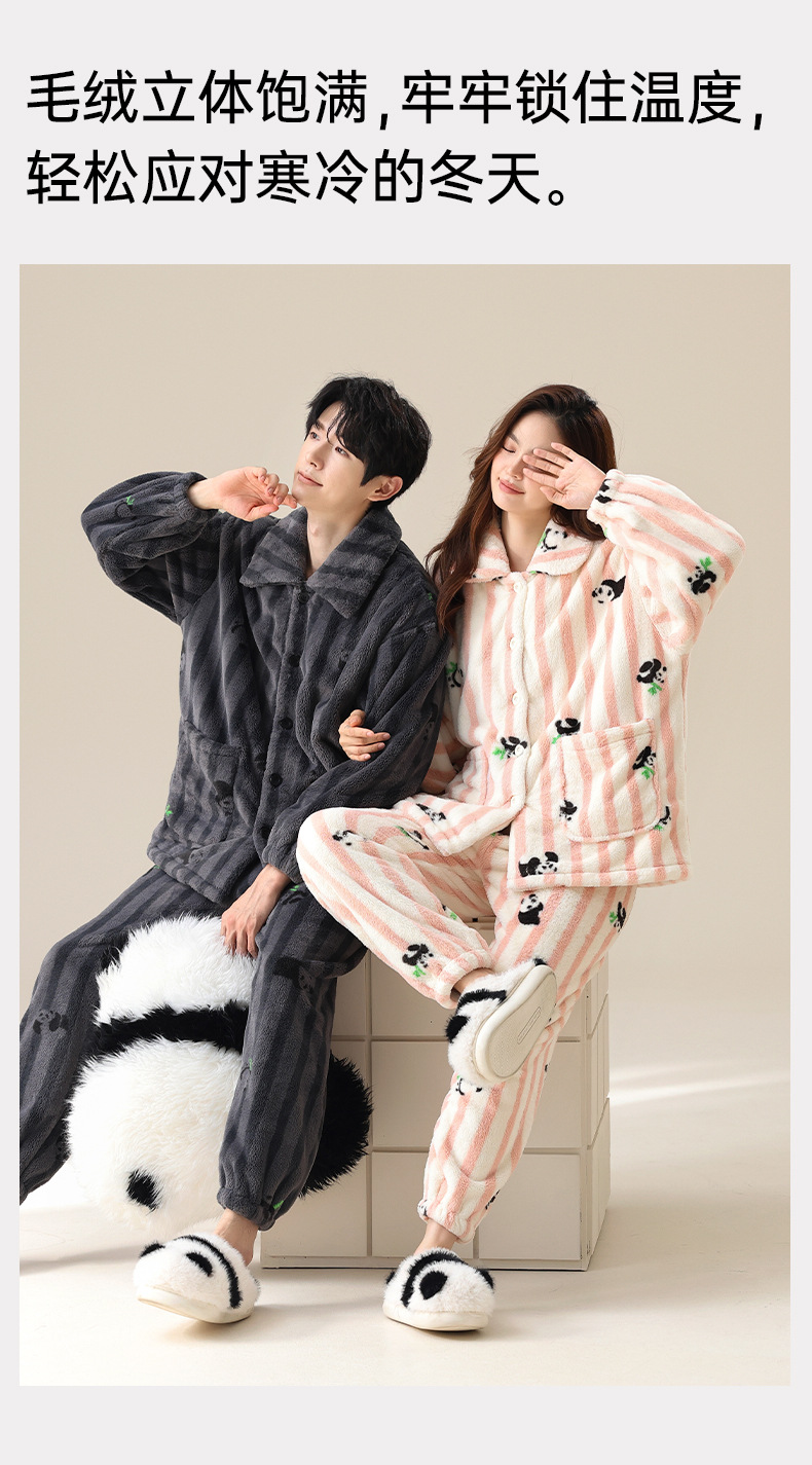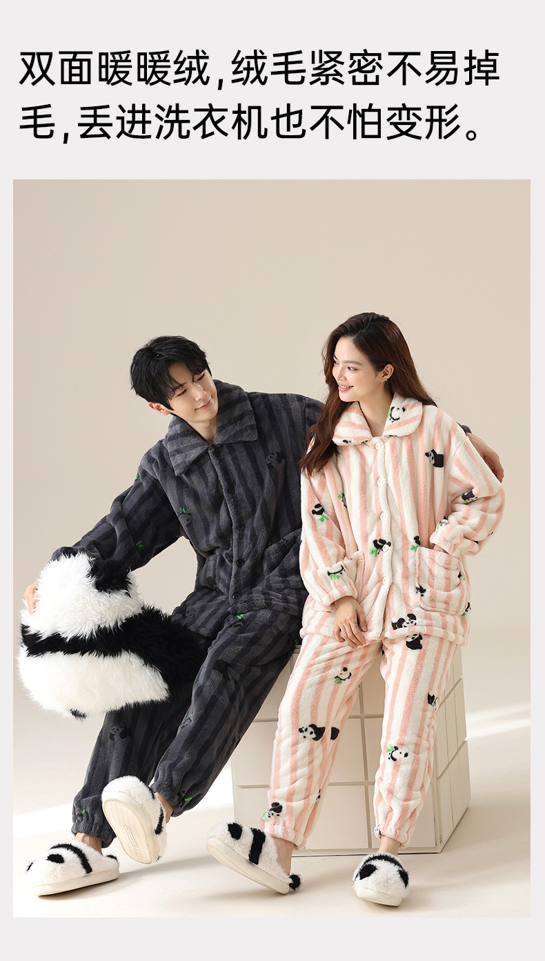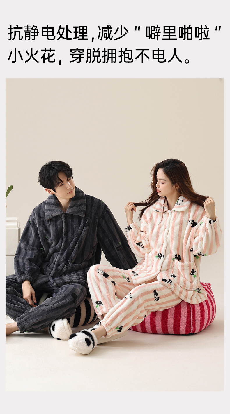 [소프트 벨벳] 겨울 커플 잠옷 여성 산호 벨벳 패딩 남성 플란넬 세트