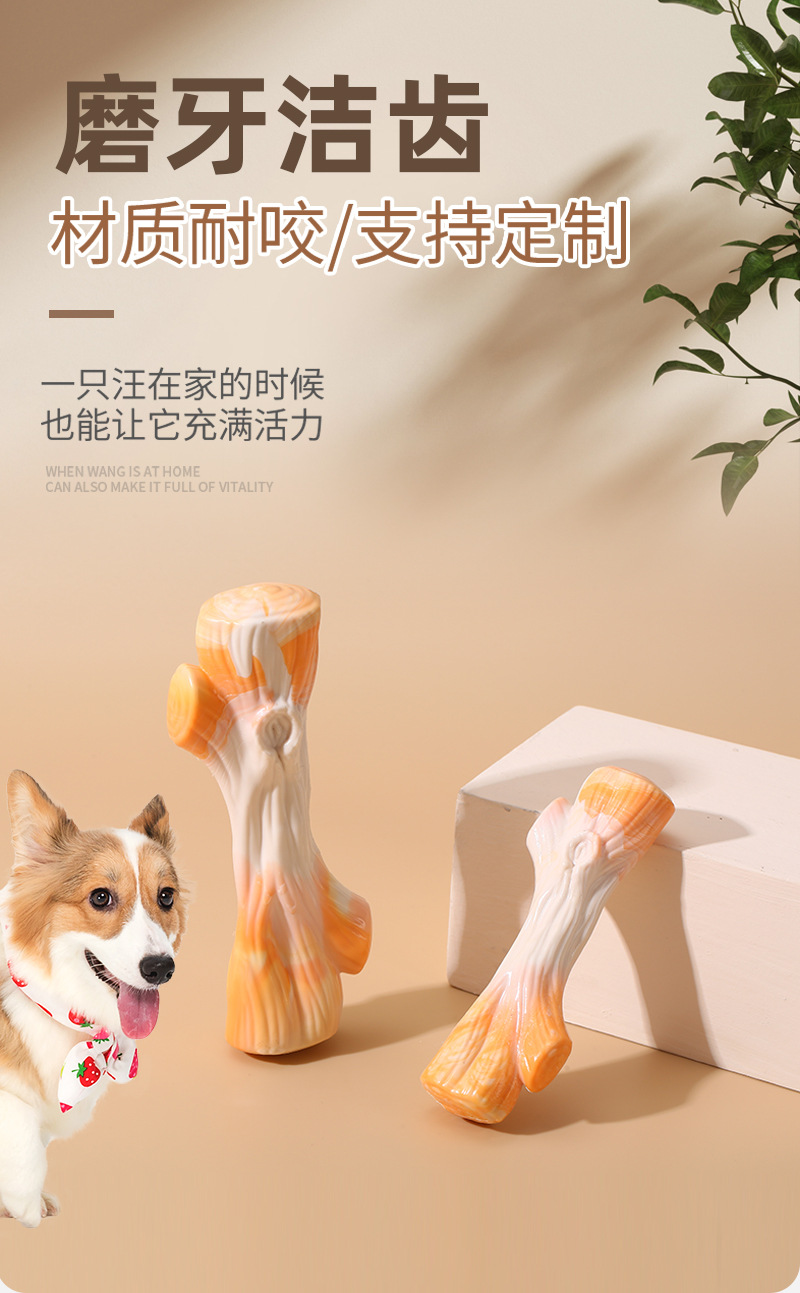 국경을 넘는 강아지 이갈이 스틱 애완동물 장난감, 나무껍질 질감의 치아 청소 스틱, 내구성 있고 지루함을 해소하는 인터랙티브 강아지 훈련 장난감스토어 가기