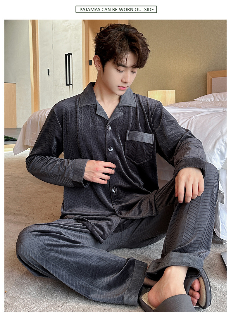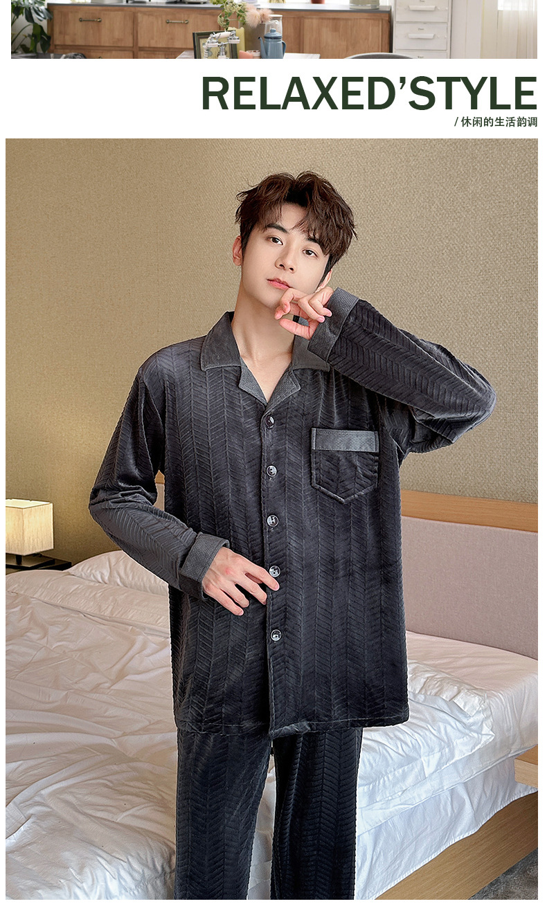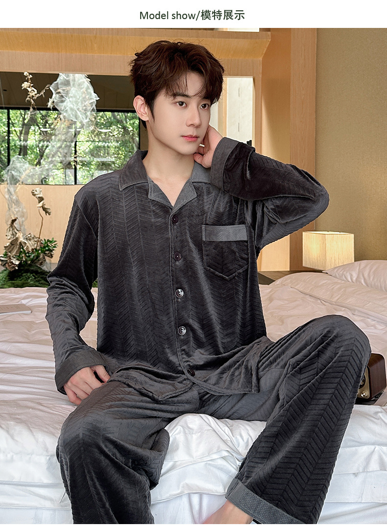 2024 년 새로운 가을과 겨울 남자 잠옷 홈 의류 카디건 긴 소매 섬 벨벳 기모 두꺼운 따뜻한 한국어 버전스토어 가기