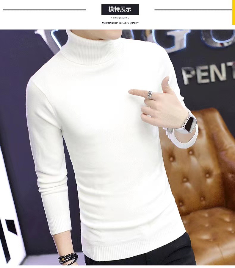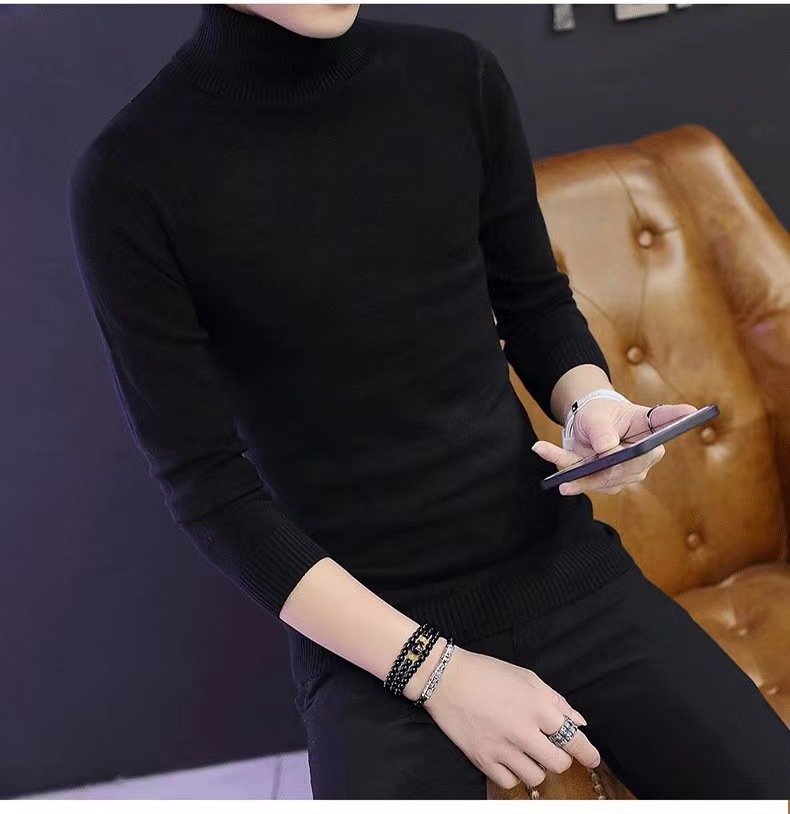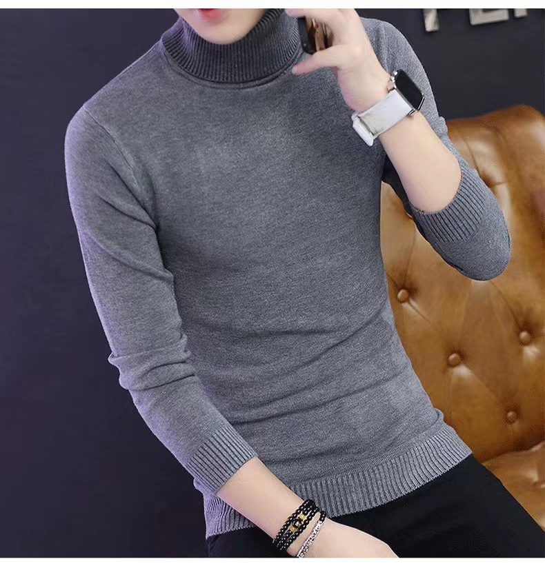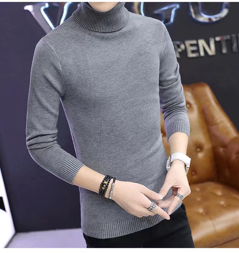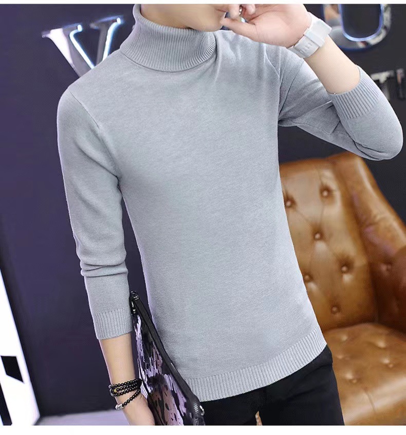 국경 간 대외 무역 세대 봄과 가을 남성 단색 세미 하이 칼라 슬림 스웨터 청소년 트렌드 기본 스웨터스토어 가기