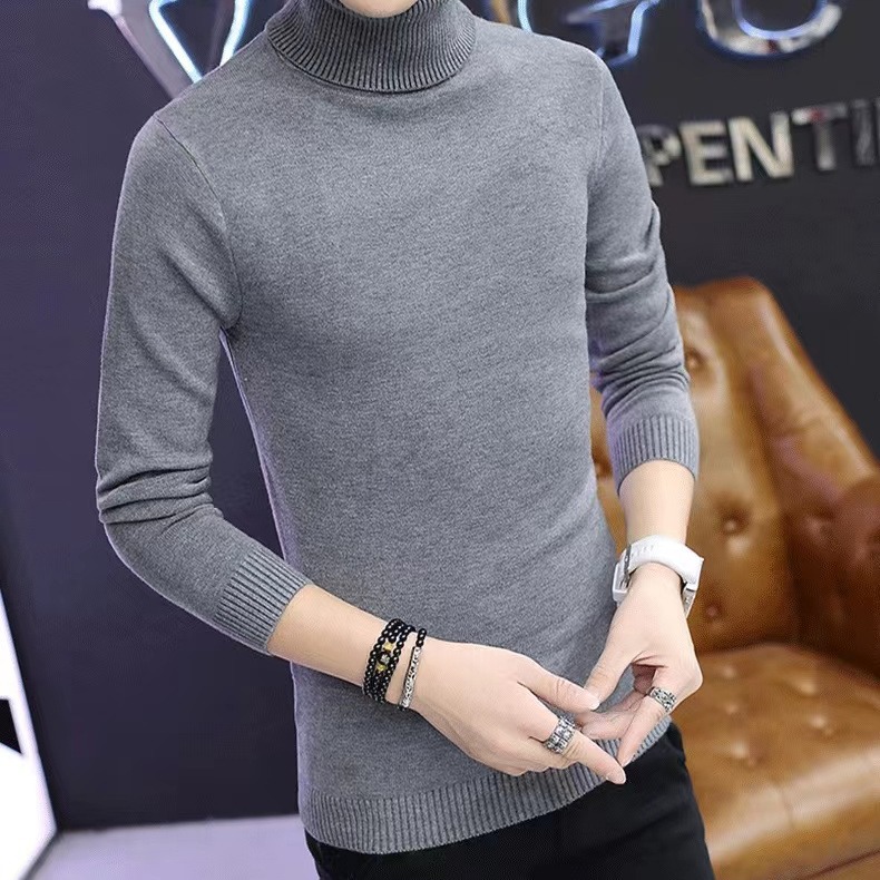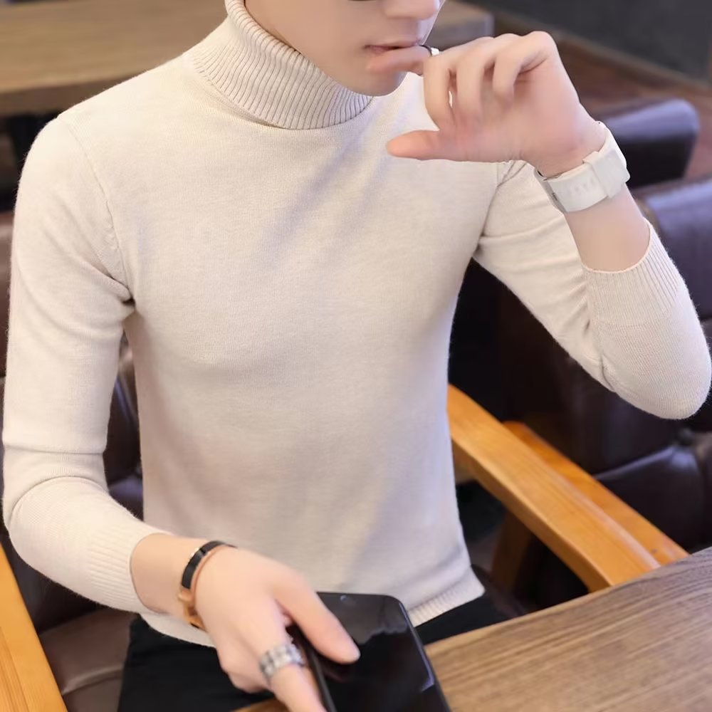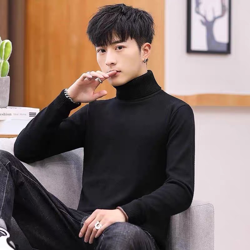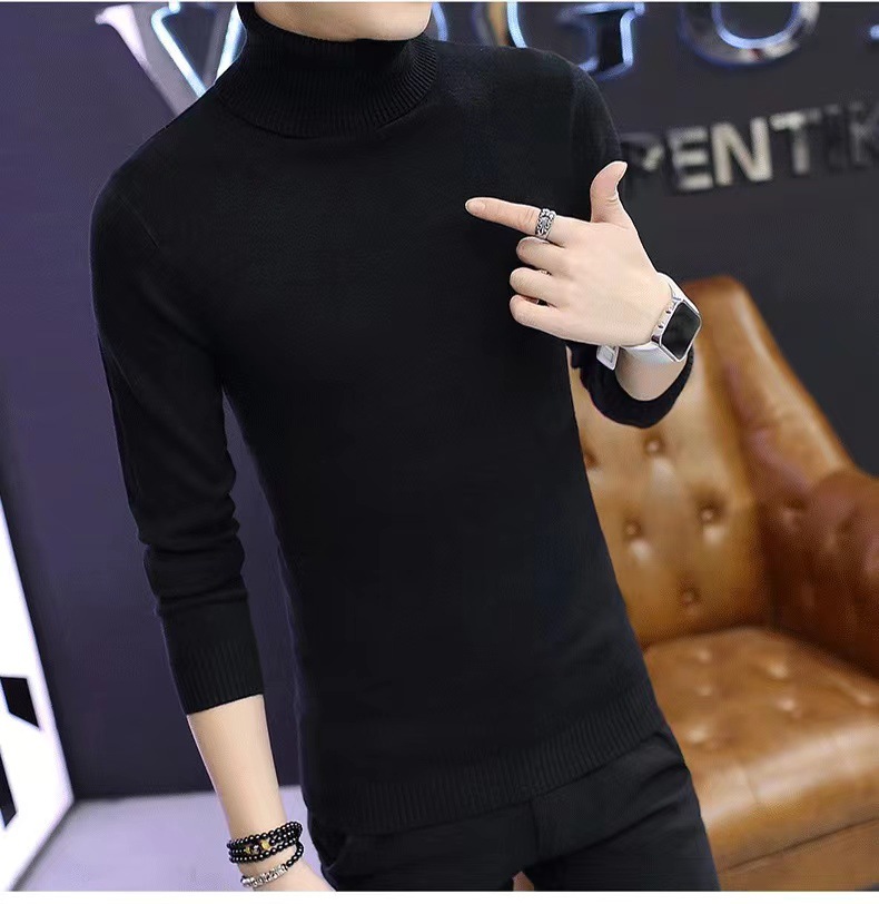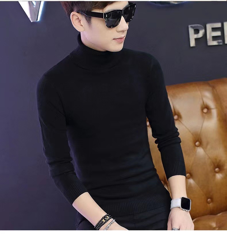 국경 간 대외 무역 세대 봄과 가을 남성 단색 세미 하이 칼라 슬림 스웨터 청소년 트렌드 기본 스웨터스토어 가기