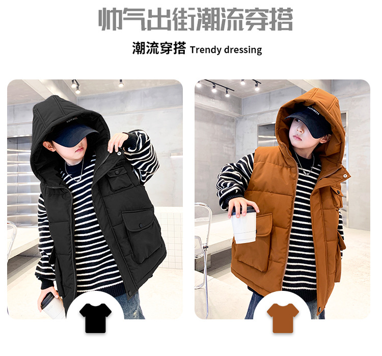 남아용 다운 코튼 조끼 가을 겨울 2025 신상 아동용 외투 조끼 두꺼운 중대형 어린이 남아용 조끼 트렌디스토어 가기