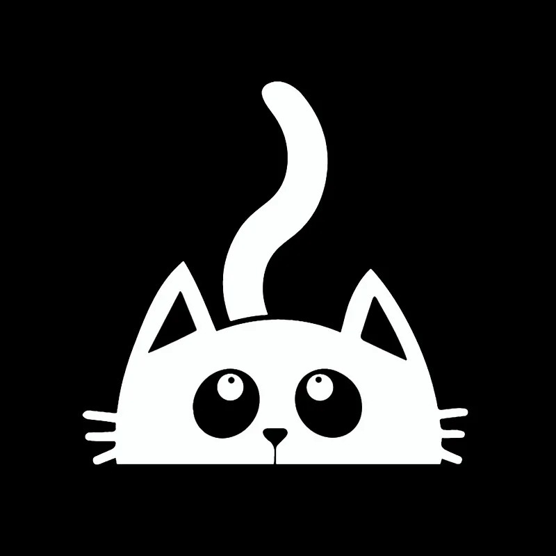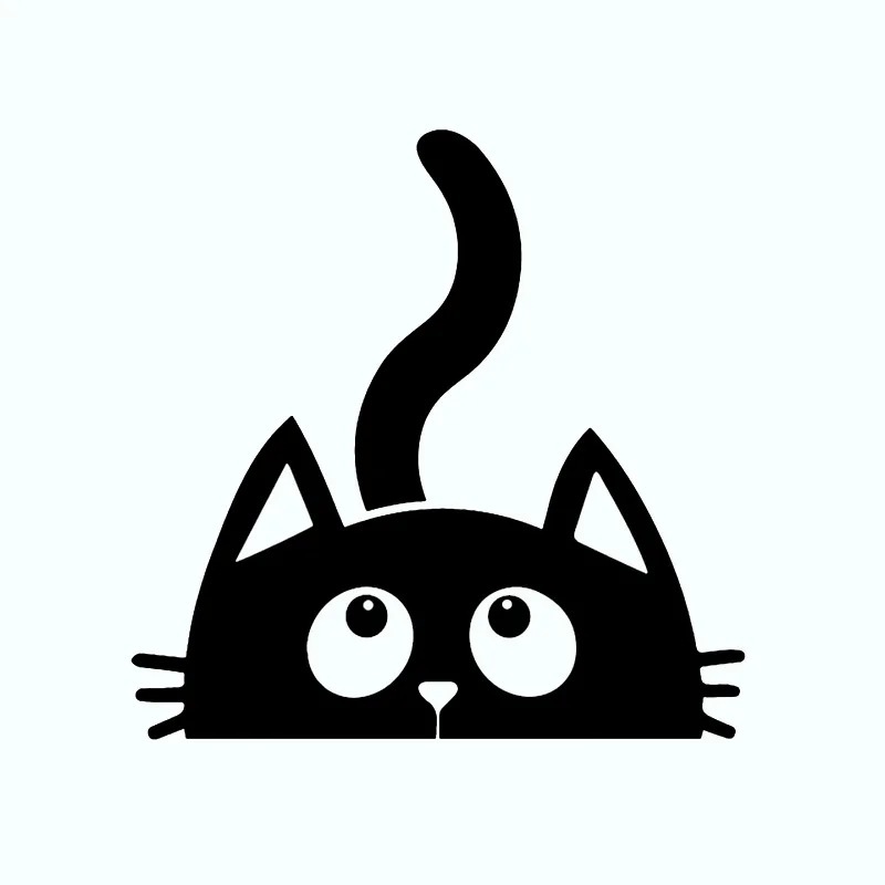 • 조각 - 둥근 얼굴 고양이 꼬리 - 검정색