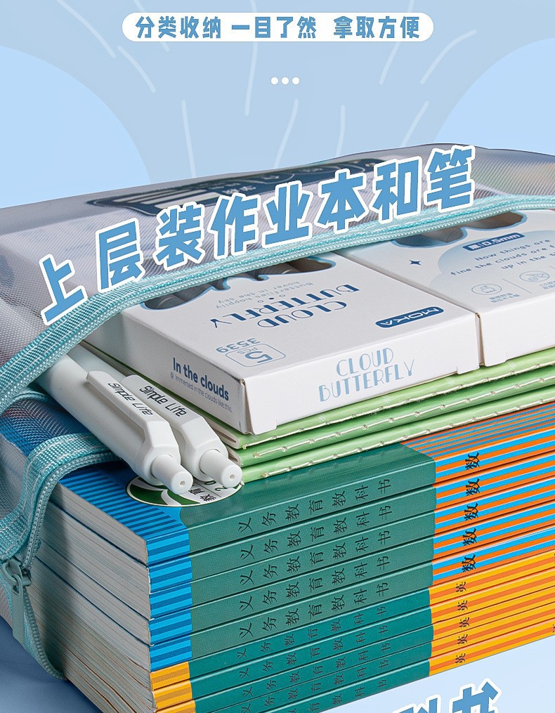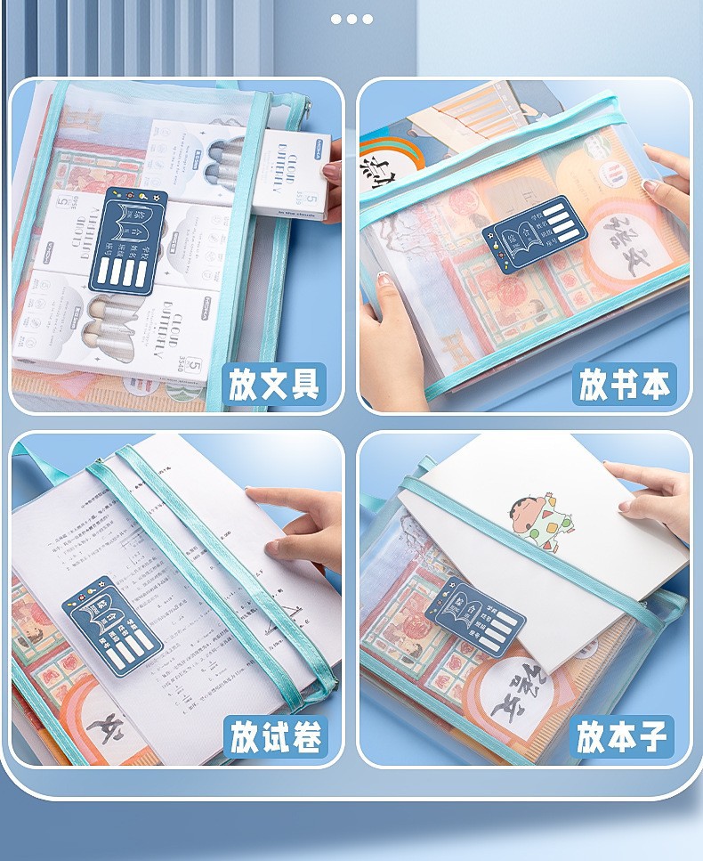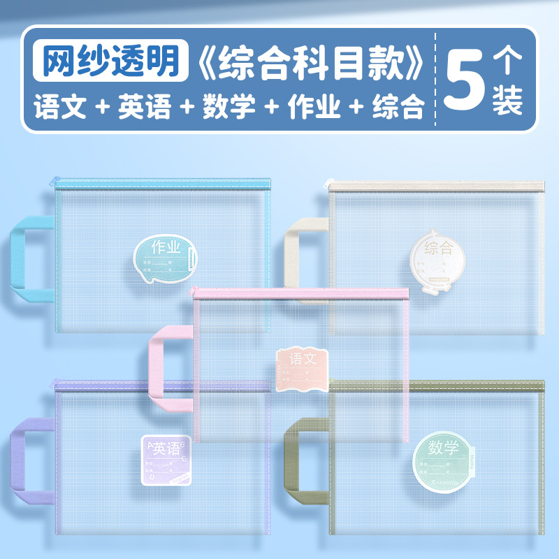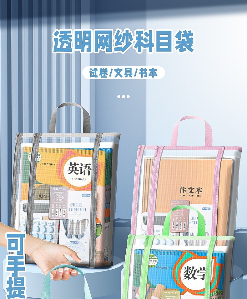 컬러 간단한 제목 가방 더블 레이어 지퍼 대용량 학생 학습 선물 가방 투명 메쉬 두꺼운 정보 가방스토어 가기