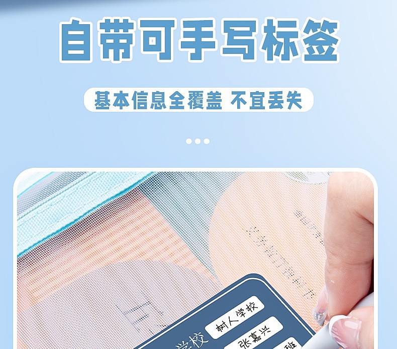 컬러 간단한 제목 가방 더블 레이어 지퍼 대용량 학생 학습 선물 가방 투명 메쉬 두꺼운 정보 가방