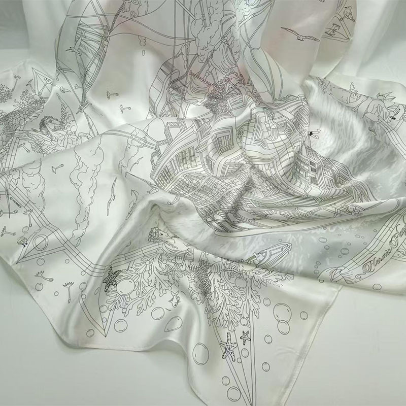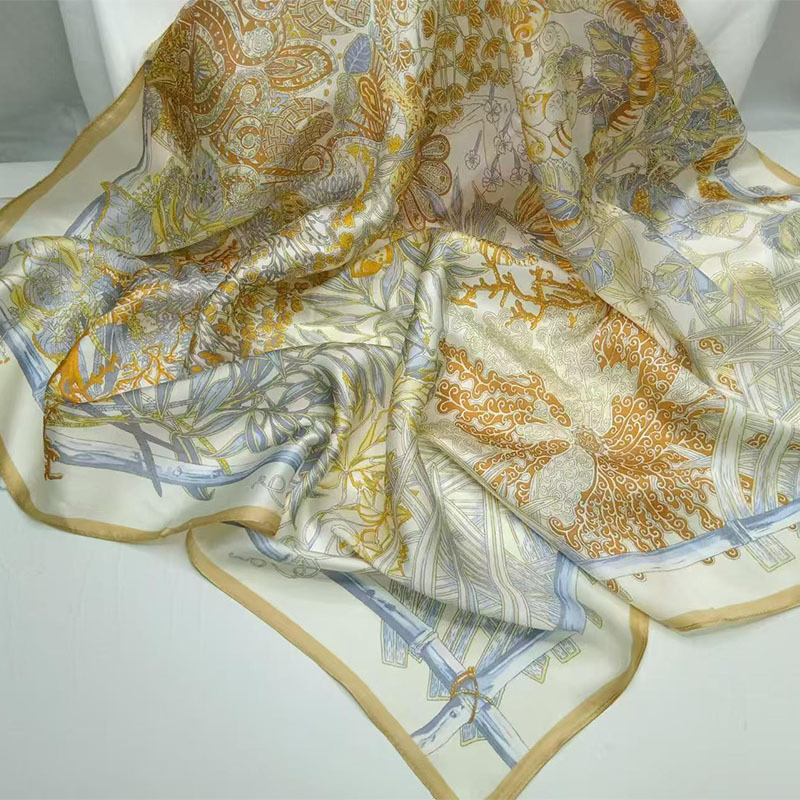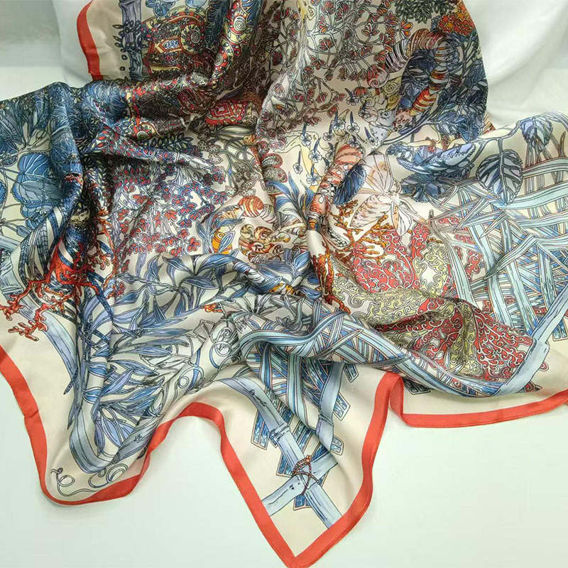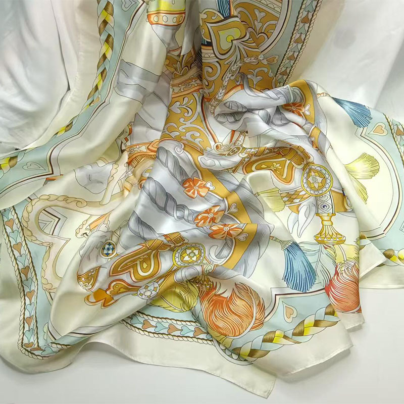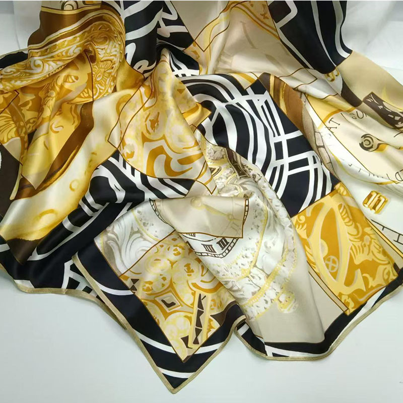가벼운 럭셔리 화려한 실크 90 스퀘어 스카프 여성 Ins 스타일 디자인 센스 콘트라스트 컬러 우아한 사교계 뽕나무 실크 스카프 트렌디