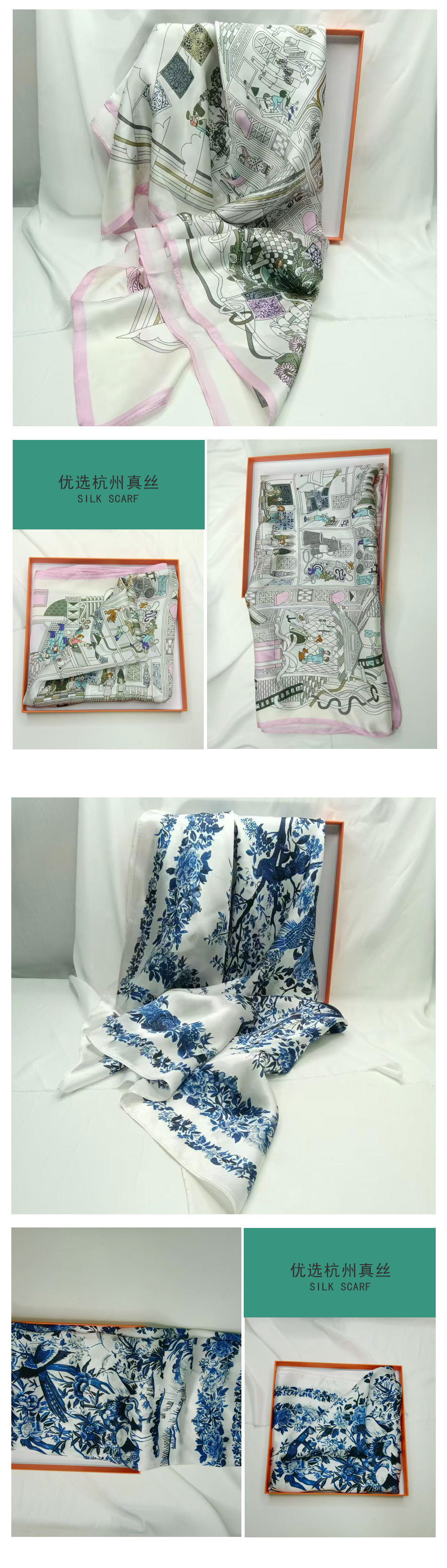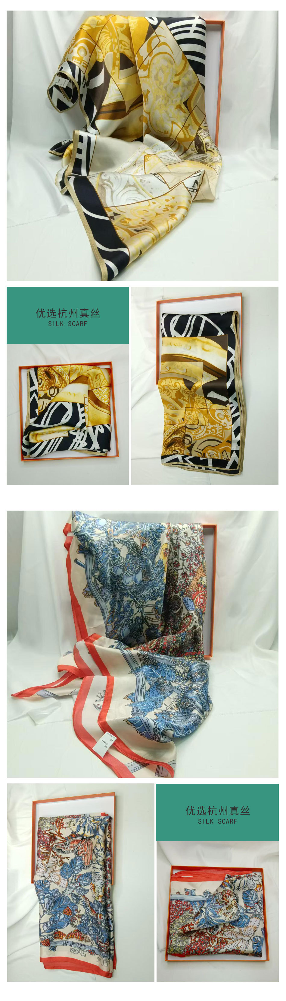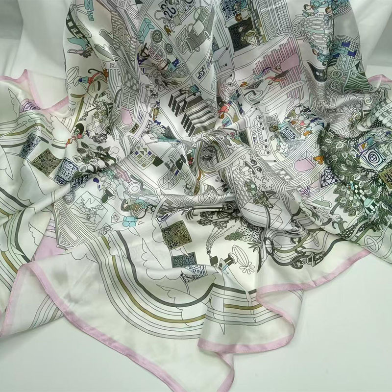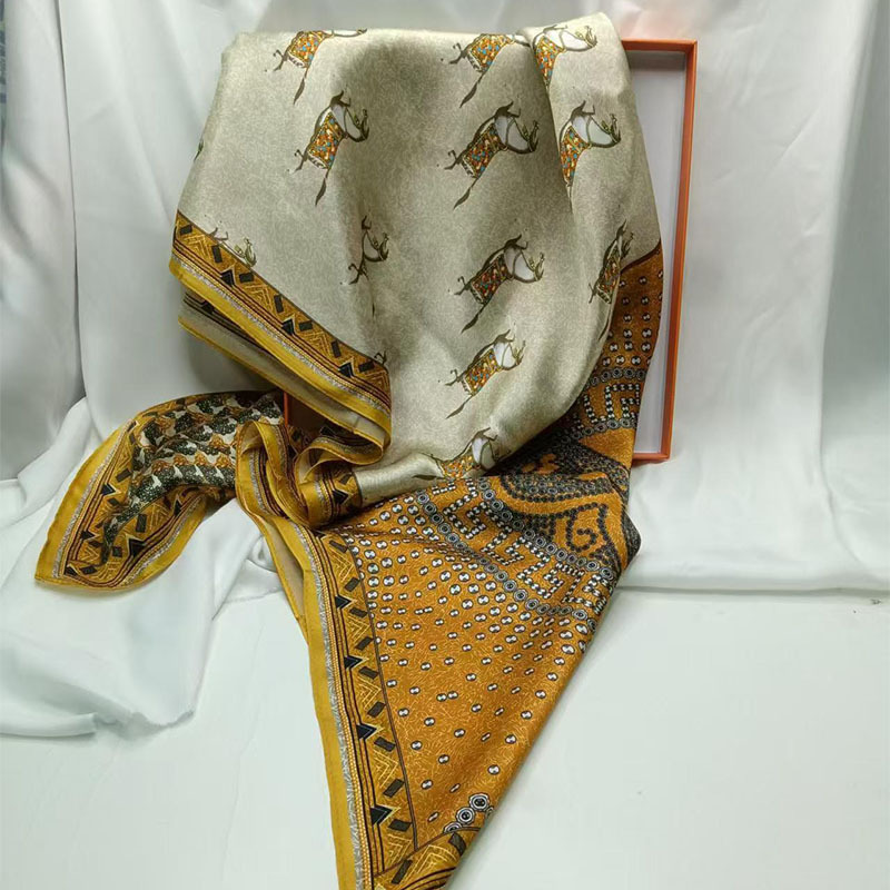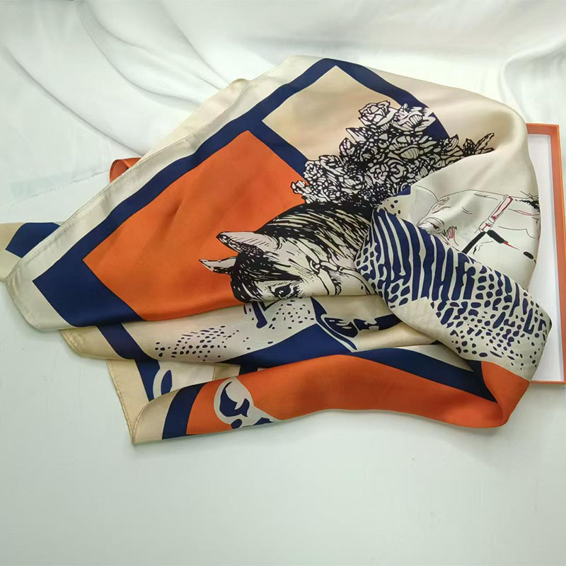 가벼운 럭셔리 화려한 실크 90 스퀘어 스카프 여성 Ins 스타일 디자인 센스 콘트라스트 컬러 우아한 사교계 뽕나무 실크 스카프 트렌디스토어 가기