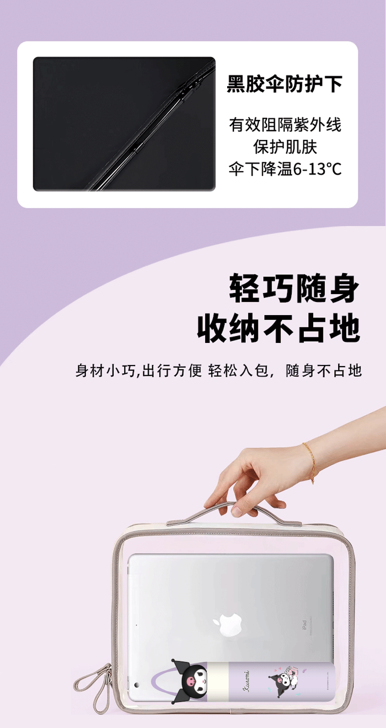 산리오 정품 태양 음영 및 비 음영 이중 목적 우산 쿨라 스테레오 인형 헤드 매뉴얼 작은 50% 접기 귀여운 가볍고 귀여운스토어 가기