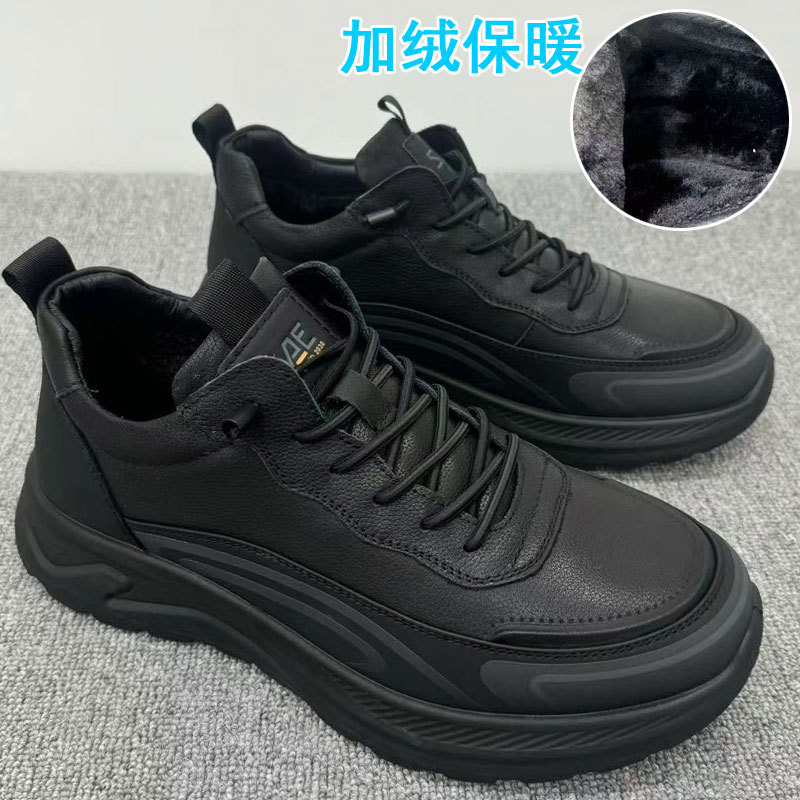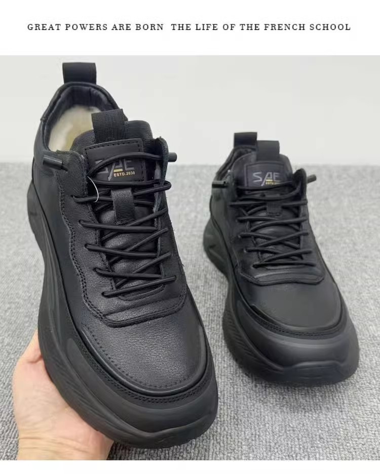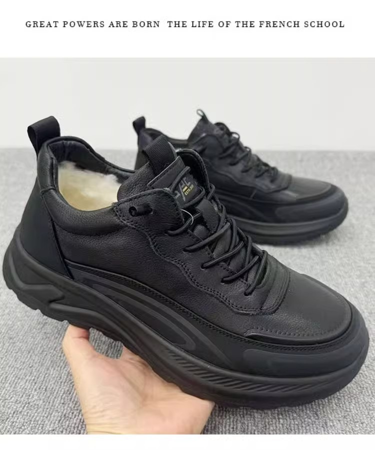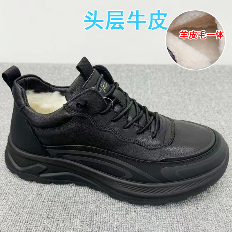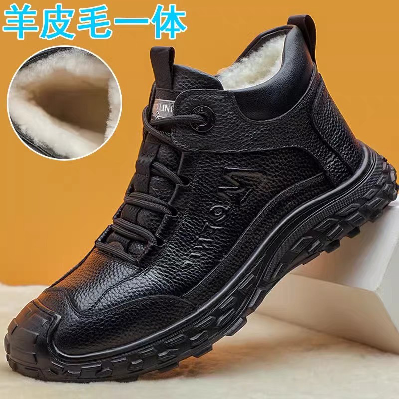 겨울 신상 양모 면화 앞부분 소가죽 및 모피 일체형 야외 미끄럼 방지 등산 따뜻한 남성 신발 동북면화