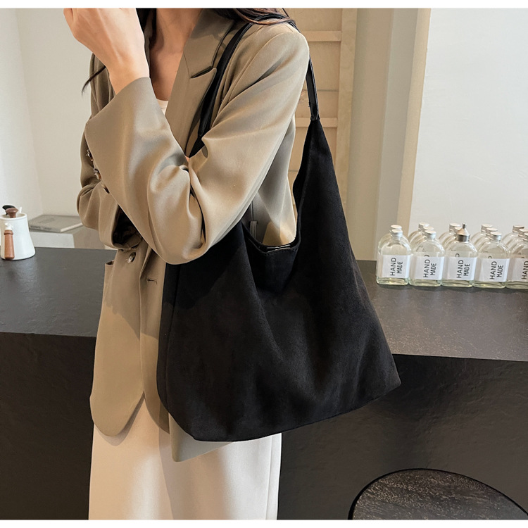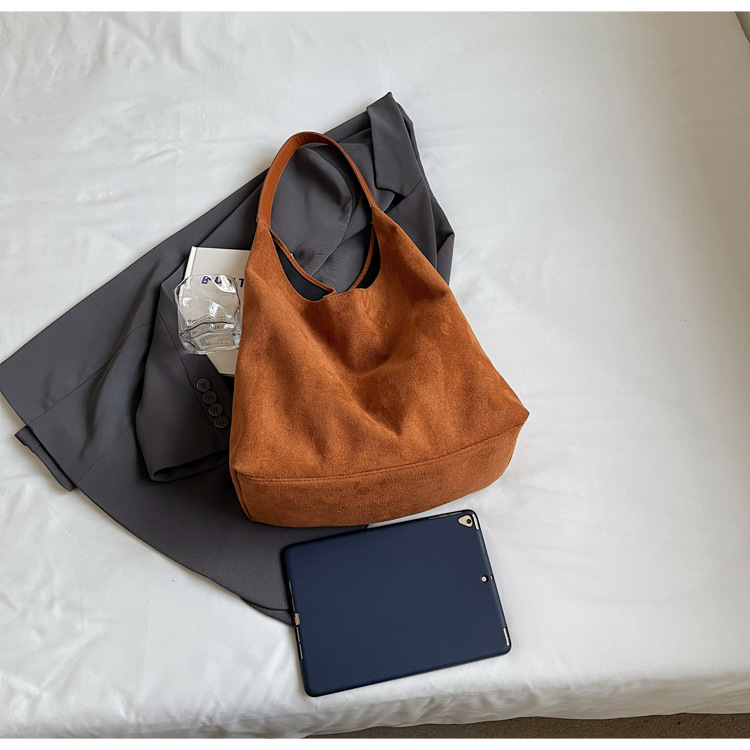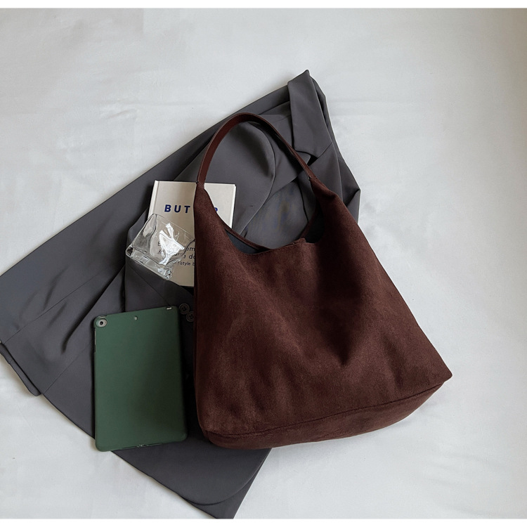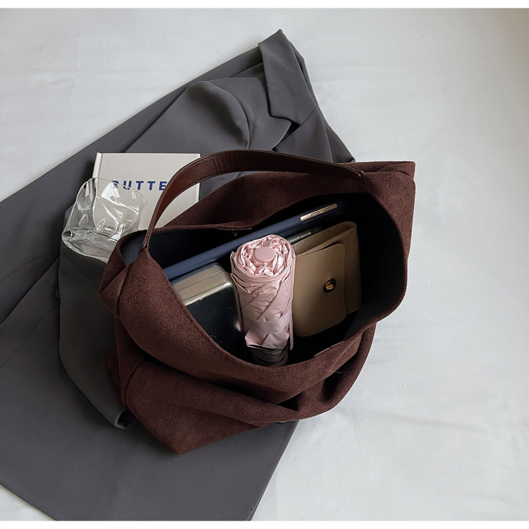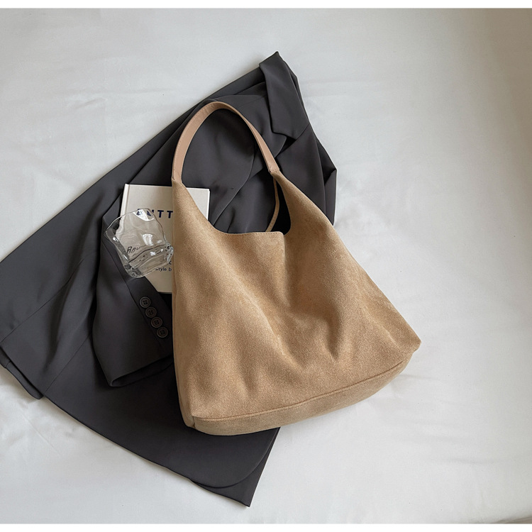 휴식 대용량 가방 여성 가방 2024 새로운 가을 및 겨울 통근 어깨 가방 스웨이드 토트 버킷 가방스토어 가기