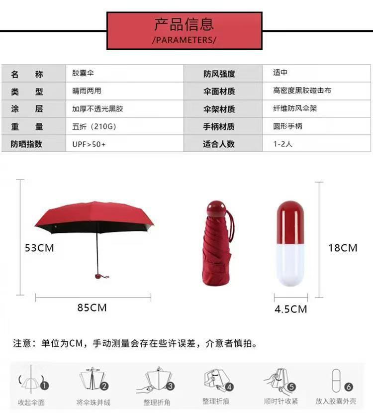 캡슐 50% 접은 우산 선 스크린 자외선 보호 양산 미니 높은 색상 가치 프리미엄 선물 우산 인쇄 로고