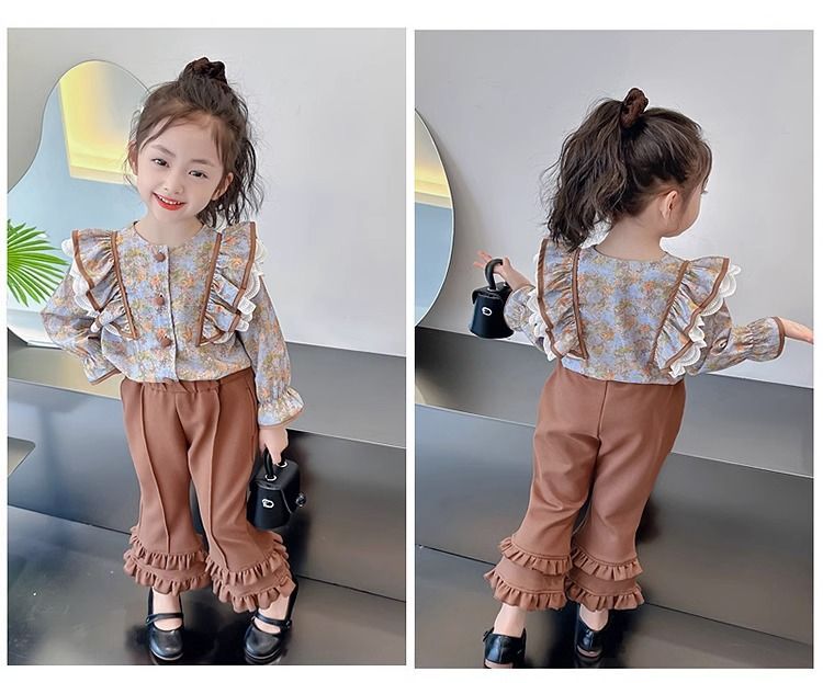 여아 가을 의류 세트 2025 신상 여아 셔츠 상의 아동 패션 봄, 가을 바지 투피스 세트 한국어 버전스토어 가기