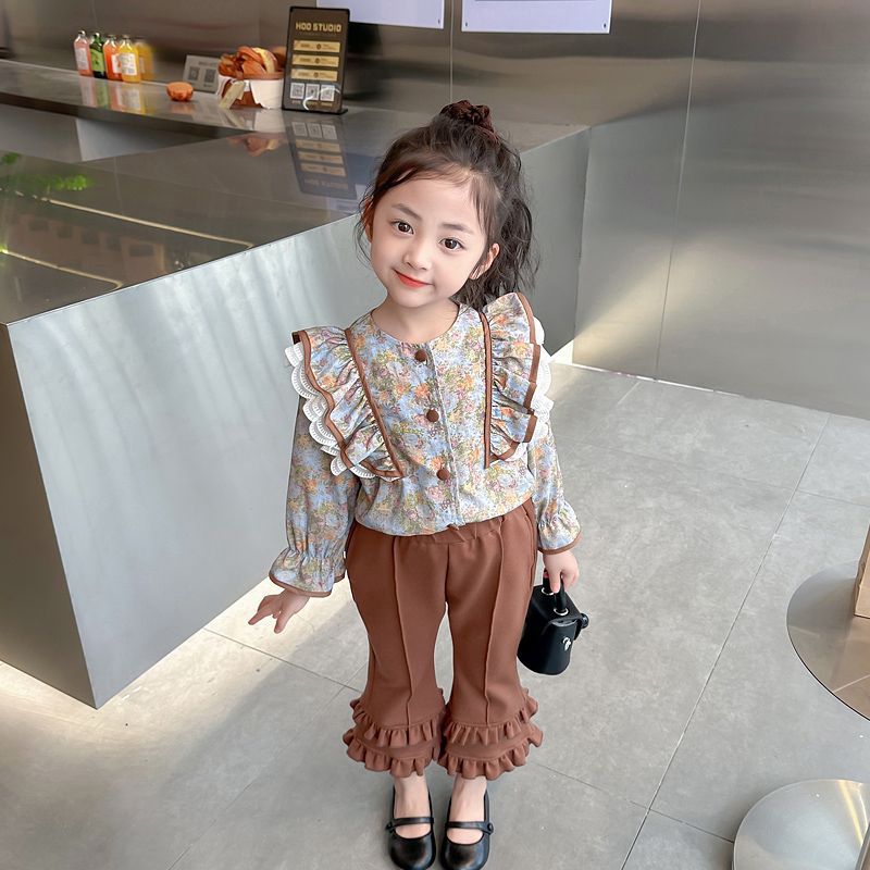 여아 가을 의류 세트 2025 신상 여아 셔츠 상의 아동 패션 봄, 가을 바지 투피스 세트 한국어 버전