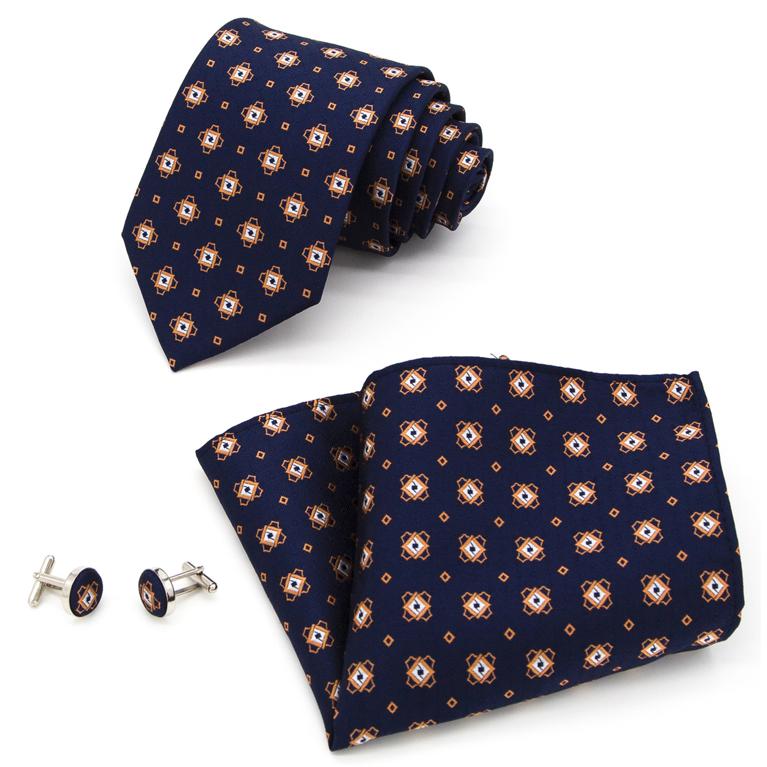 套装包含:(1条领带+1条口袋巾+1对袖扣)