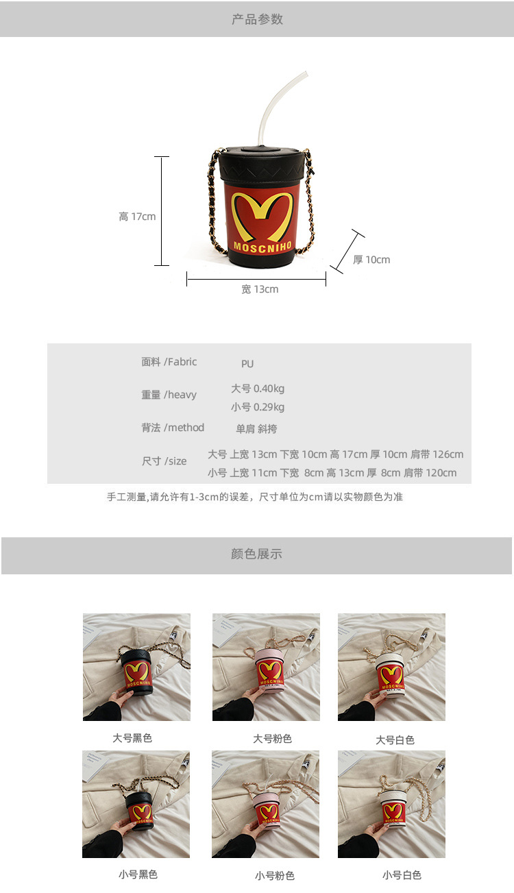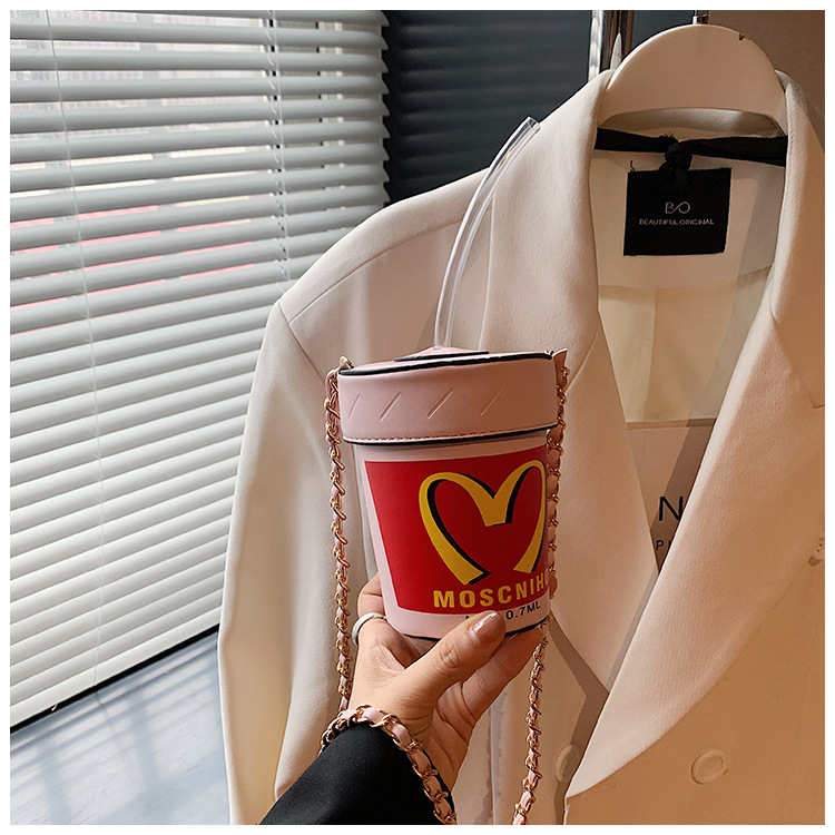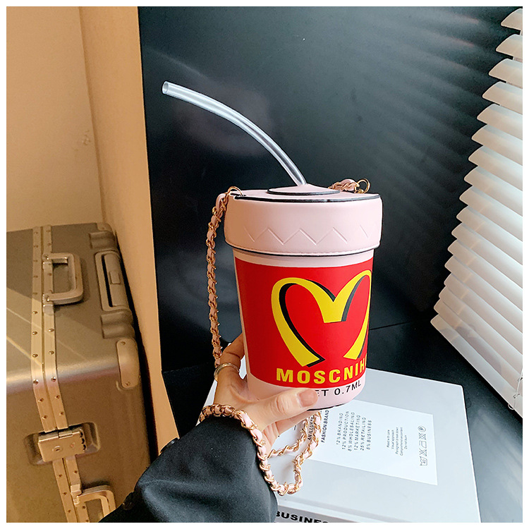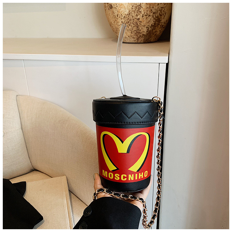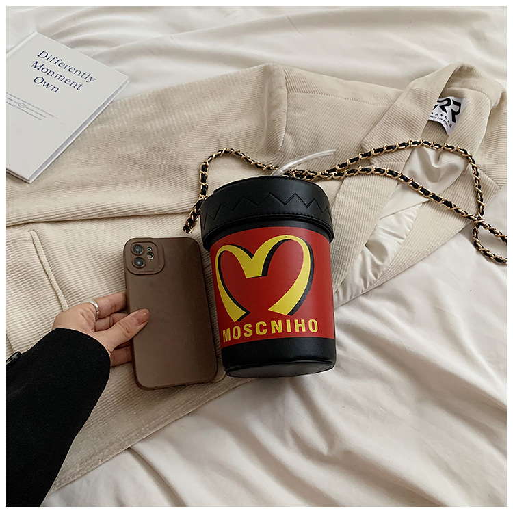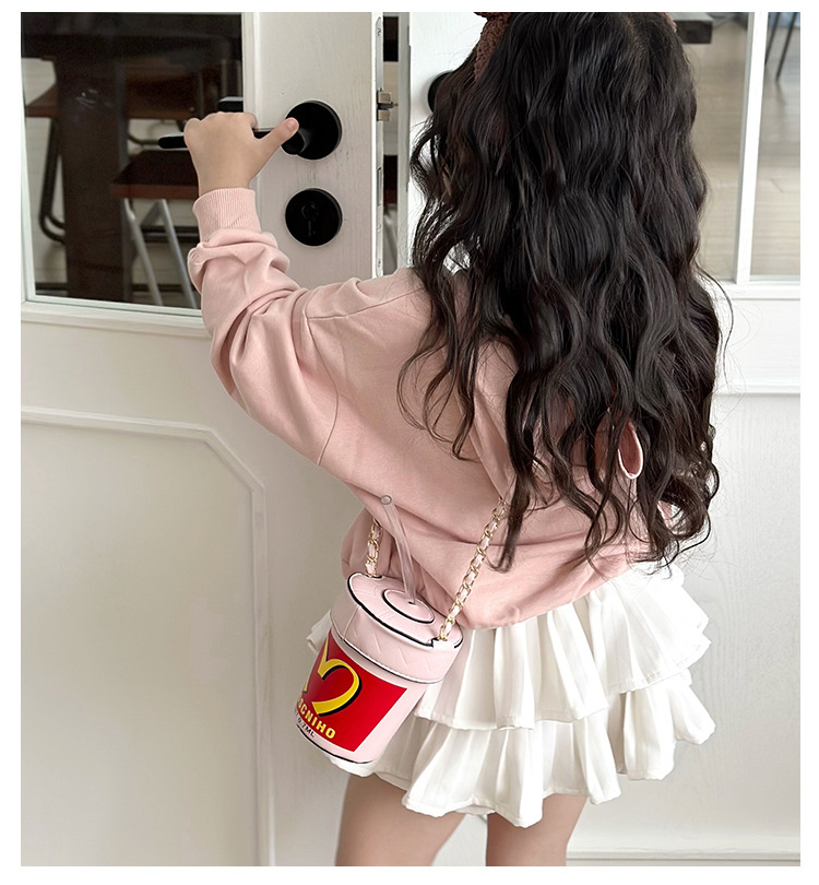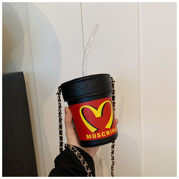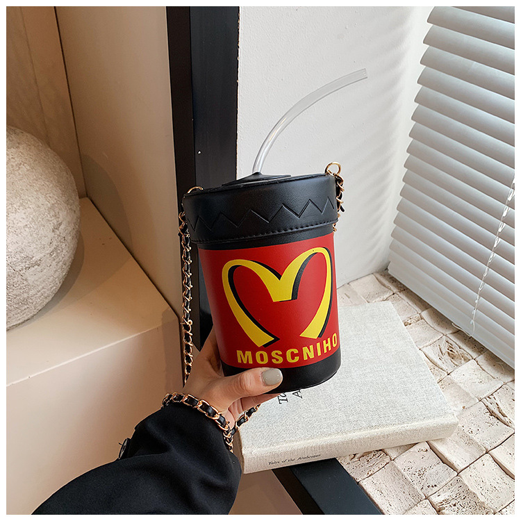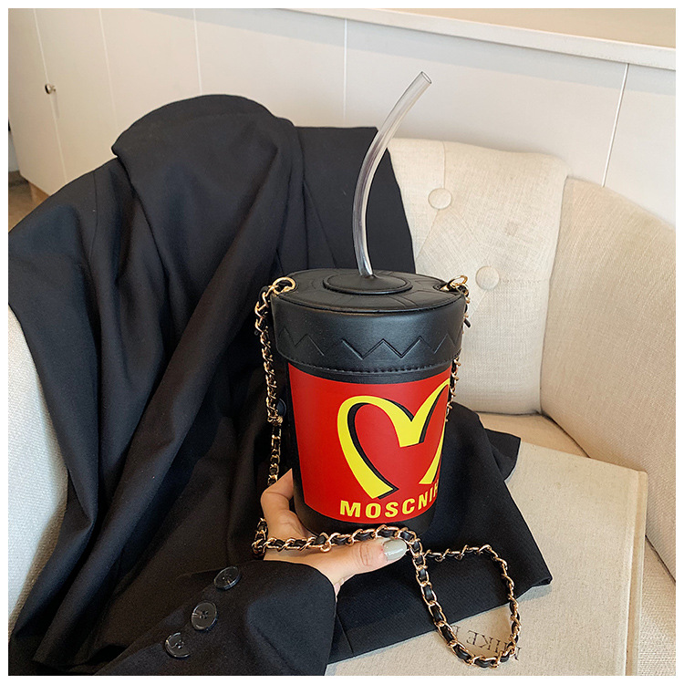 한국 스타일 작은 새첼 새로운 밀크 티 컵 체인 백 독특한 창조적 인 버킷 백 서양식 소녀 숄더 백 크로스 바디 백