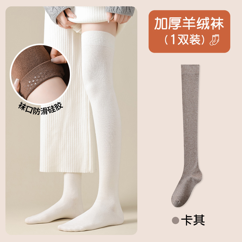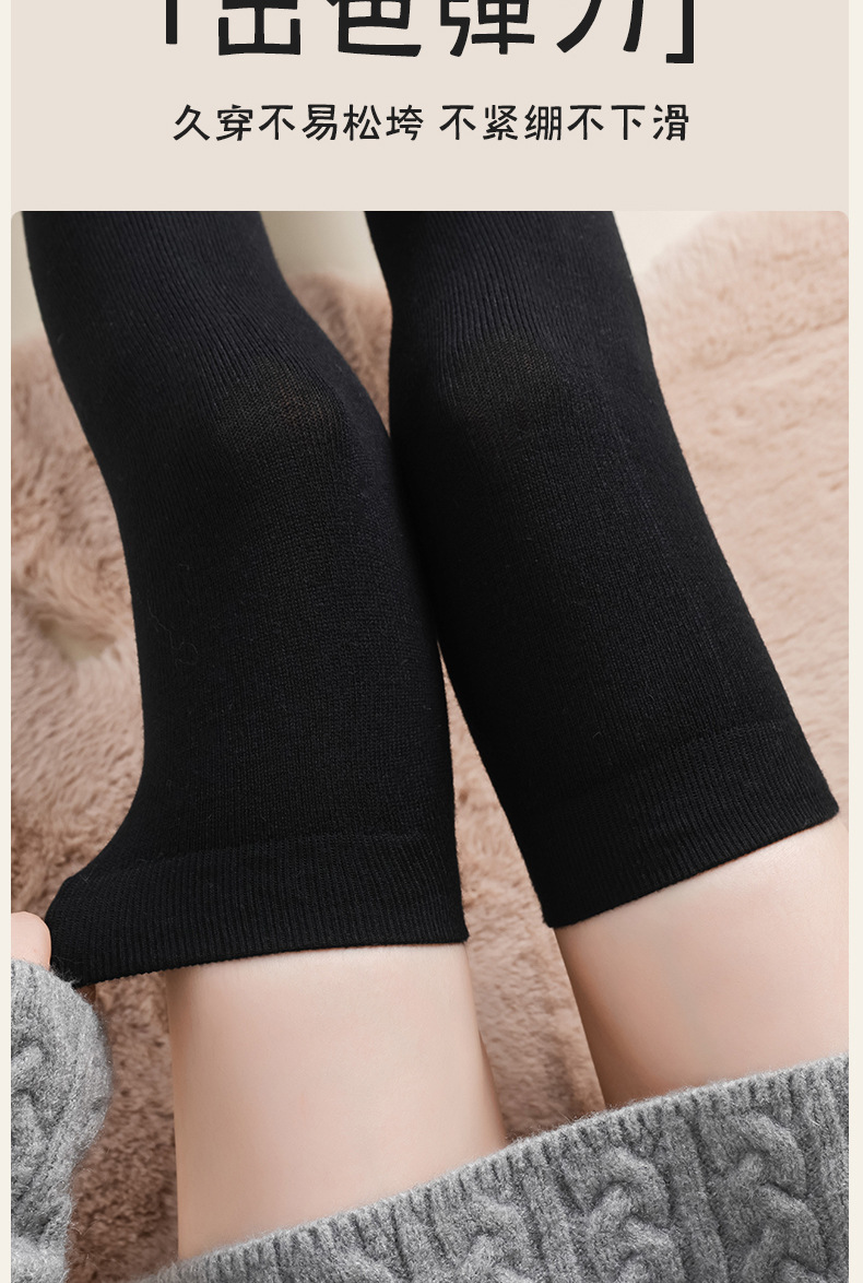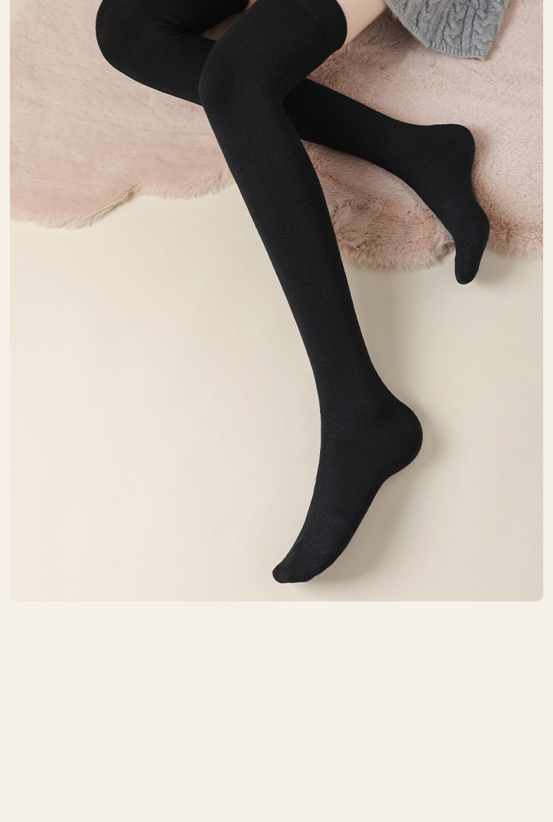 아청가의 도매 무릎 위 양말은 따뜻하고 벨벳으로 두껍게 만들어진 겨울용 수면 양말로, 다리를 날씬하게 만들어주는 겨울 여성용 롱 양말 맞춤 제작입니다.스토어 가기
