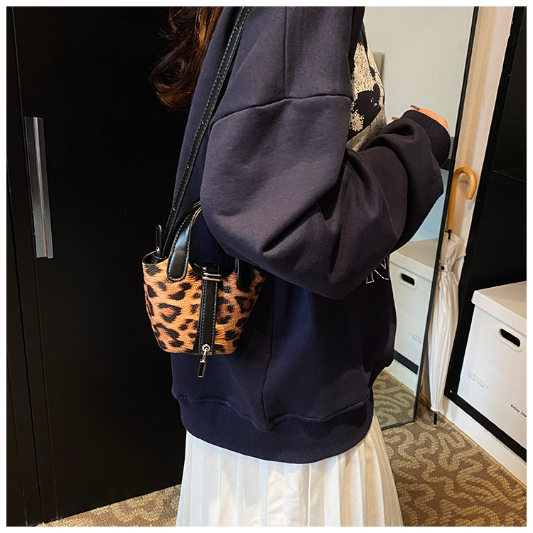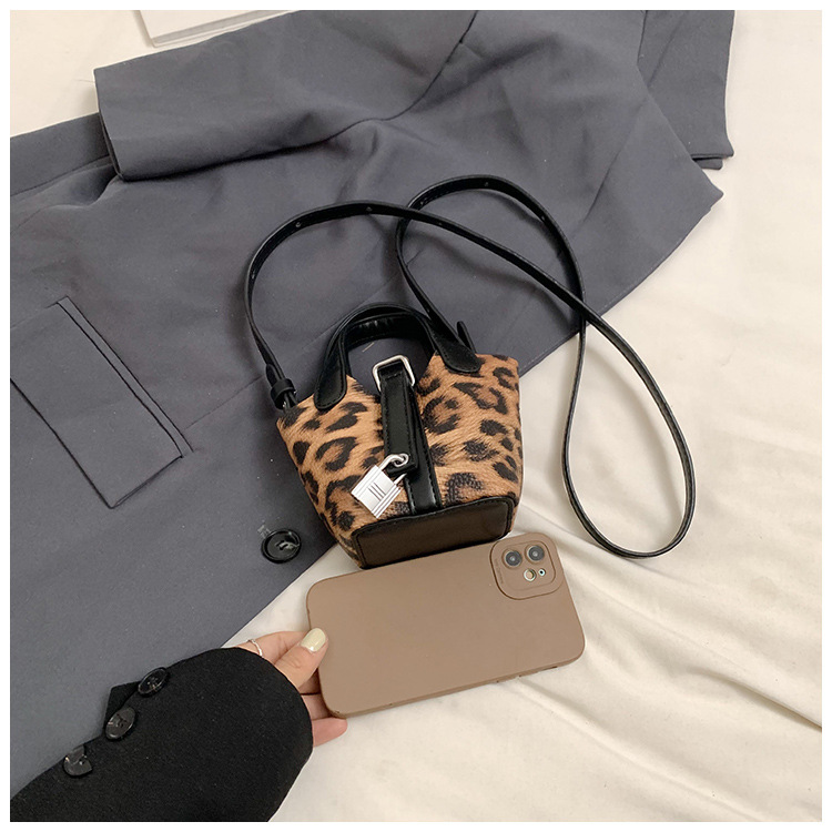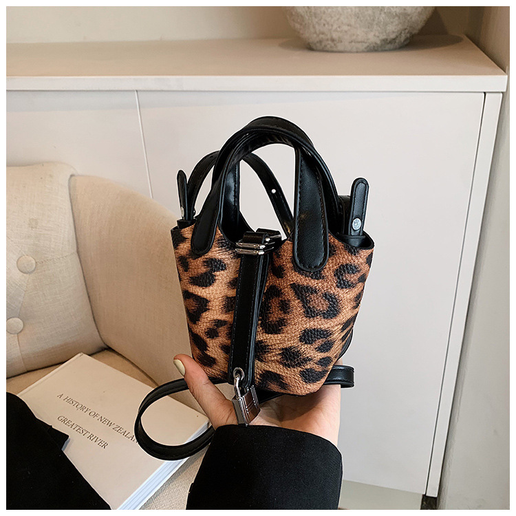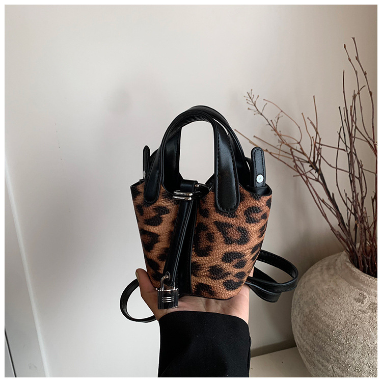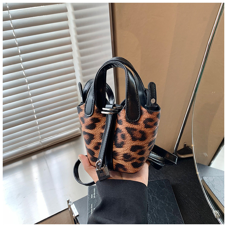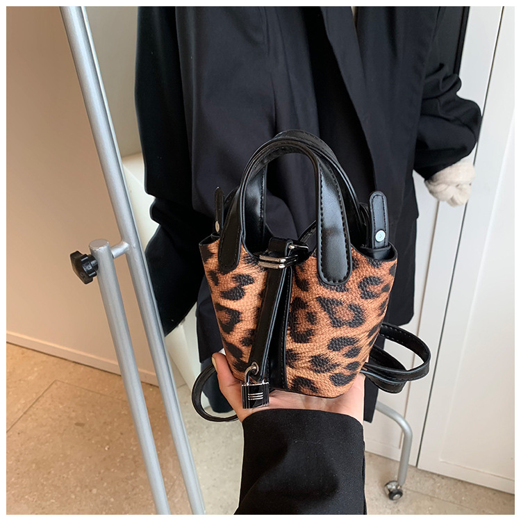 한국 가을 인기있는 틈새 디자인 어깨 가방 소녀 레오파드 무늬 야채 바구니 가방 미니 휴대용 소형 가방