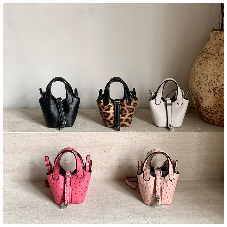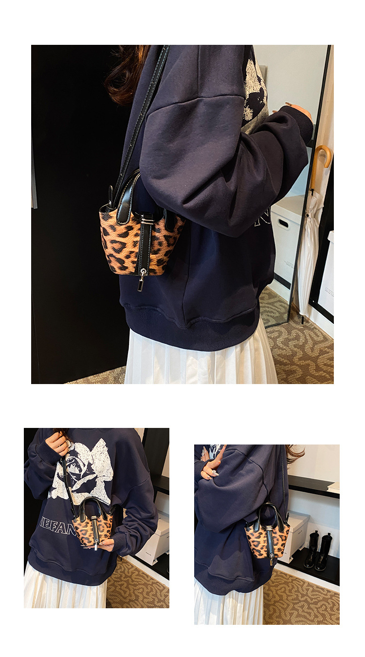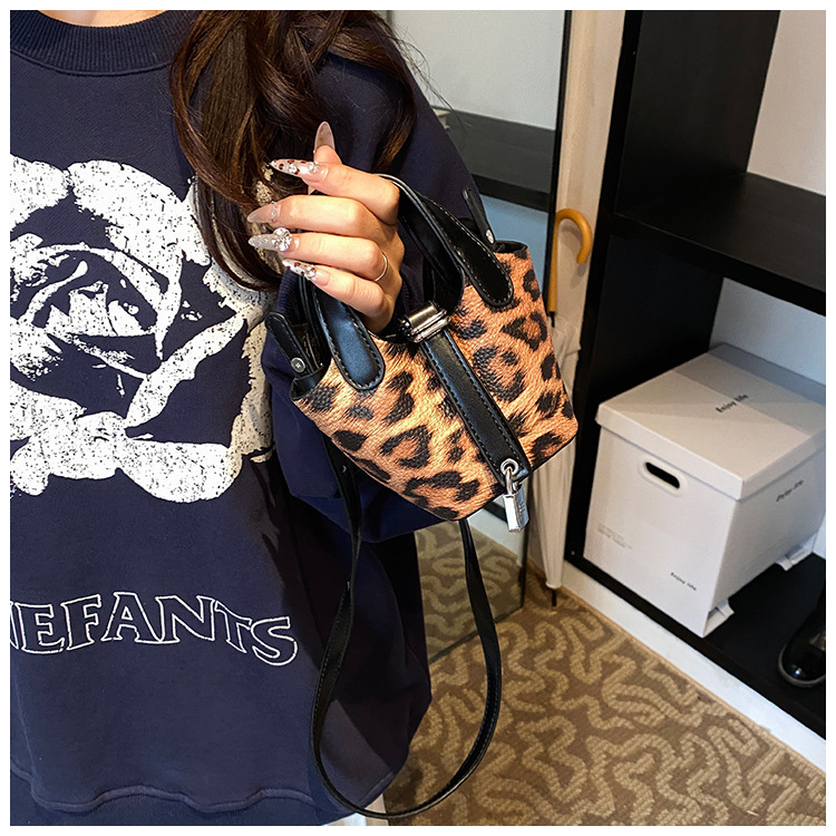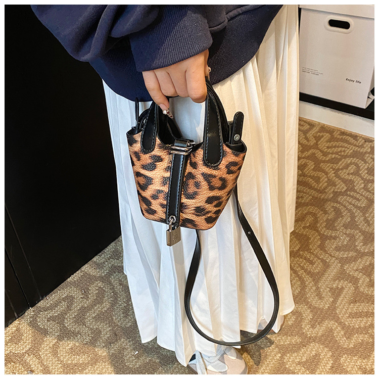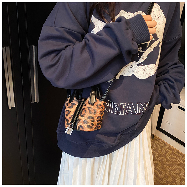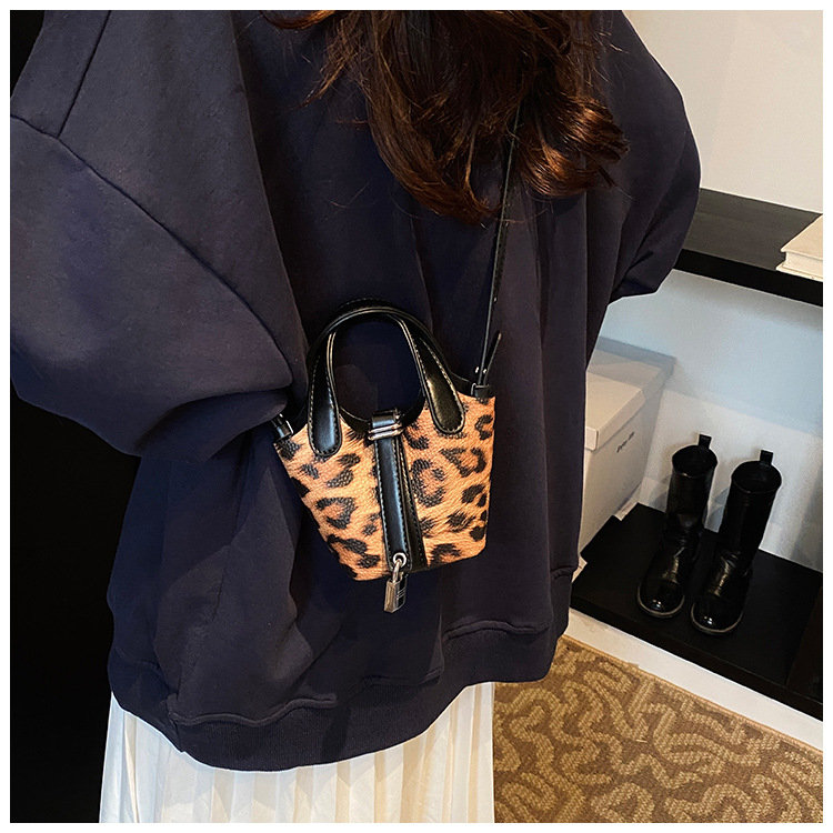 한국 가을 인기있는 틈새 디자인 어깨 가방 소녀 레오파드 무늬 야채 바구니 가방 미니 휴대용 소형 가방