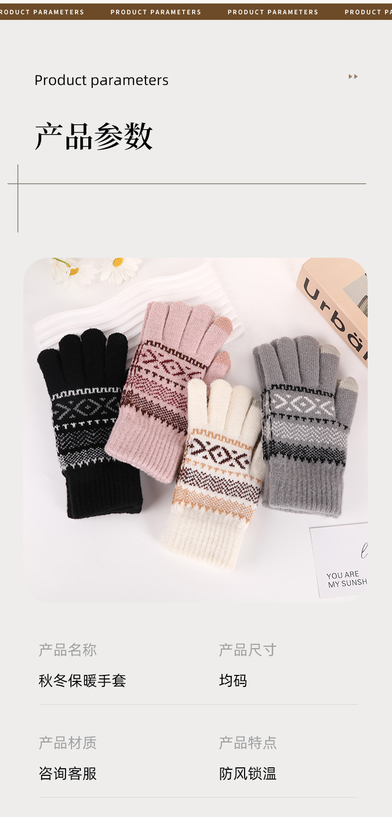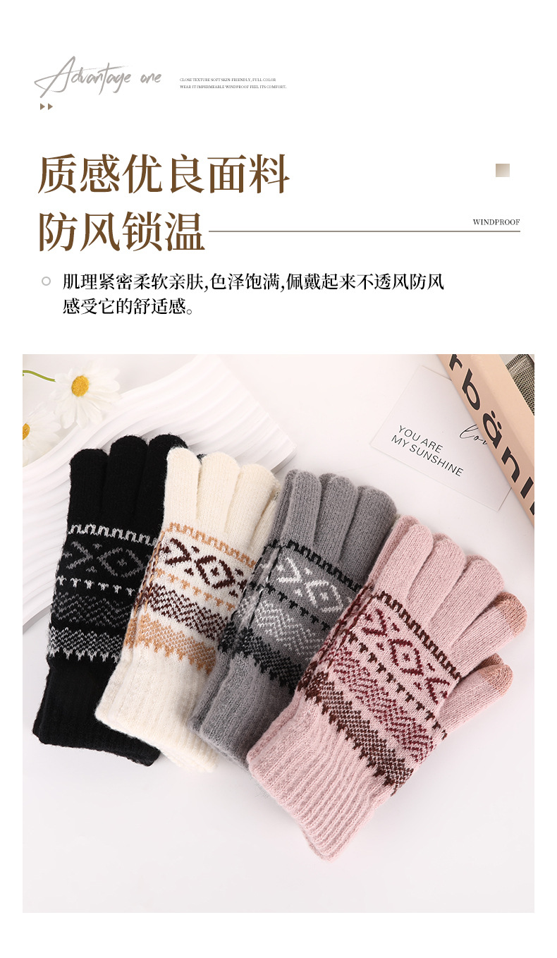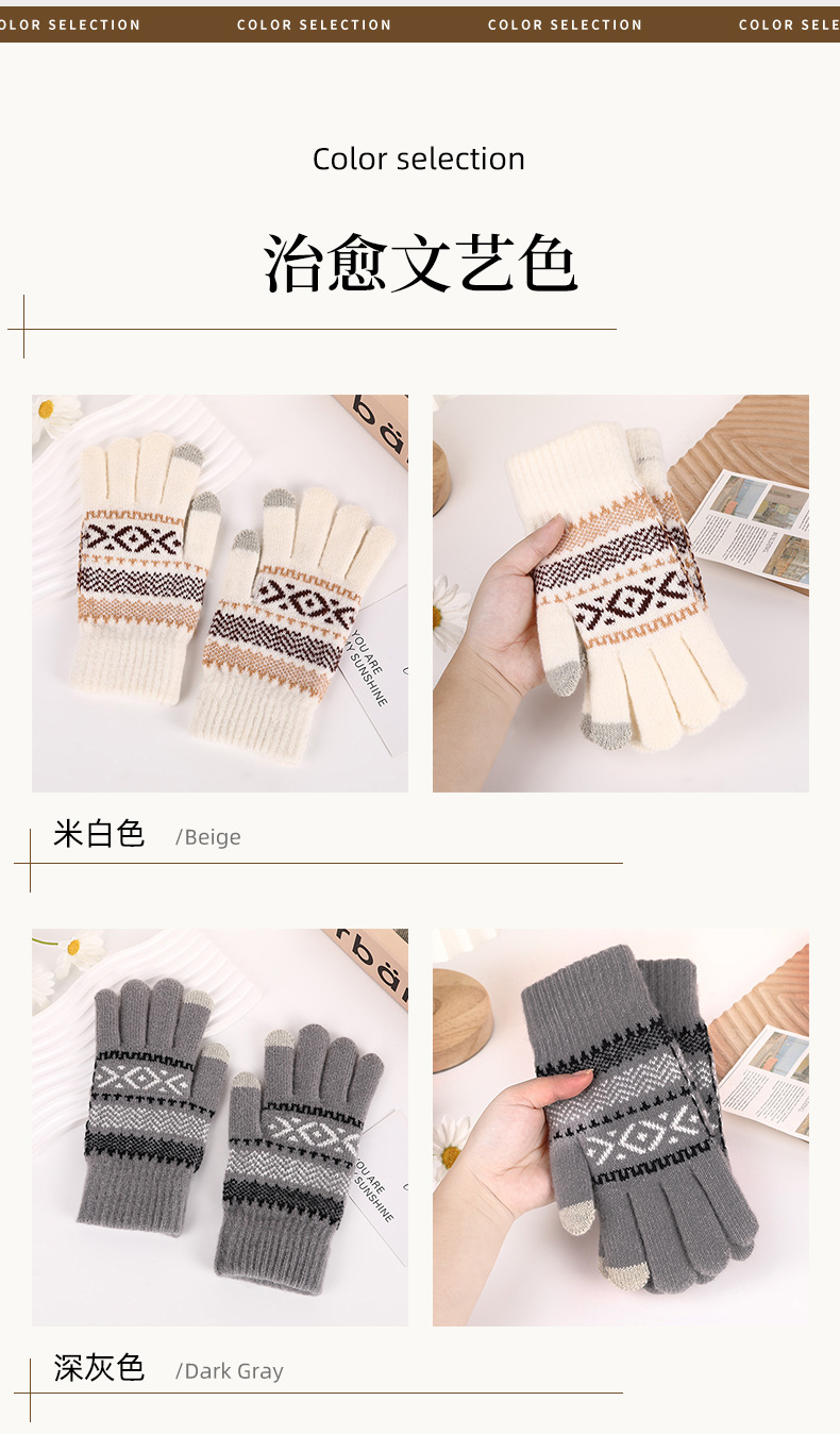 니트 자카드 터치 스크린 따뜻한 장갑 여성의 가을과 겨울 남성 야외 기모 두꺼운 방한 풀 손가락 울 장갑