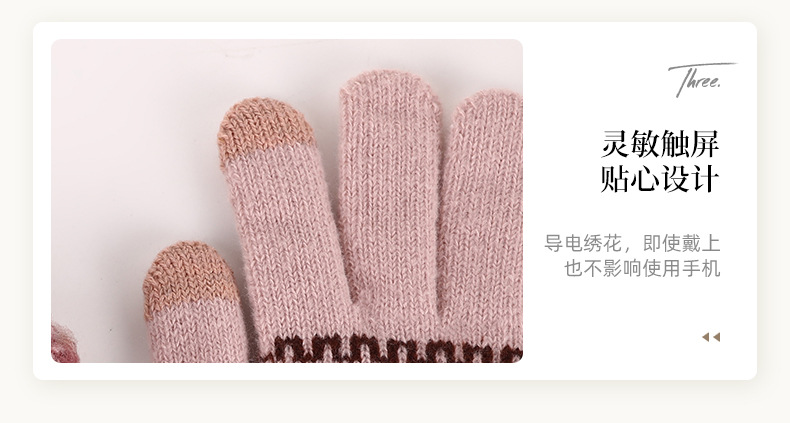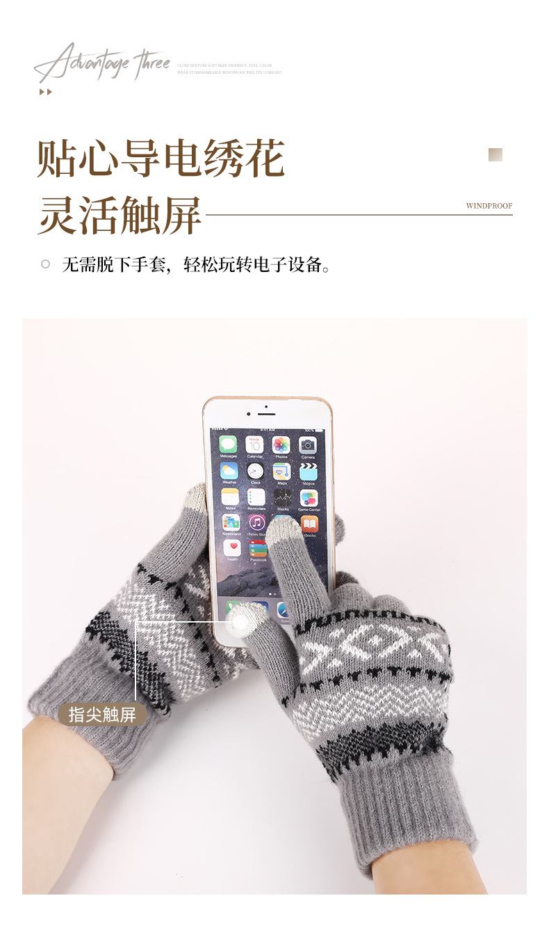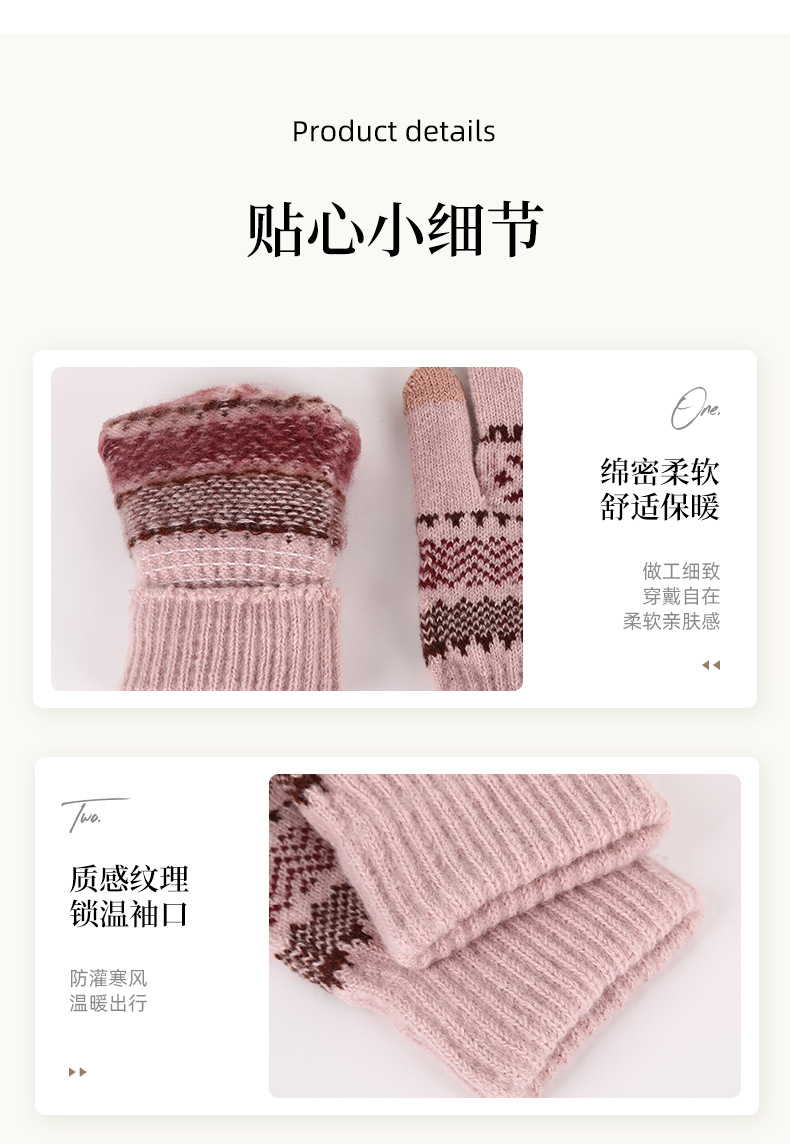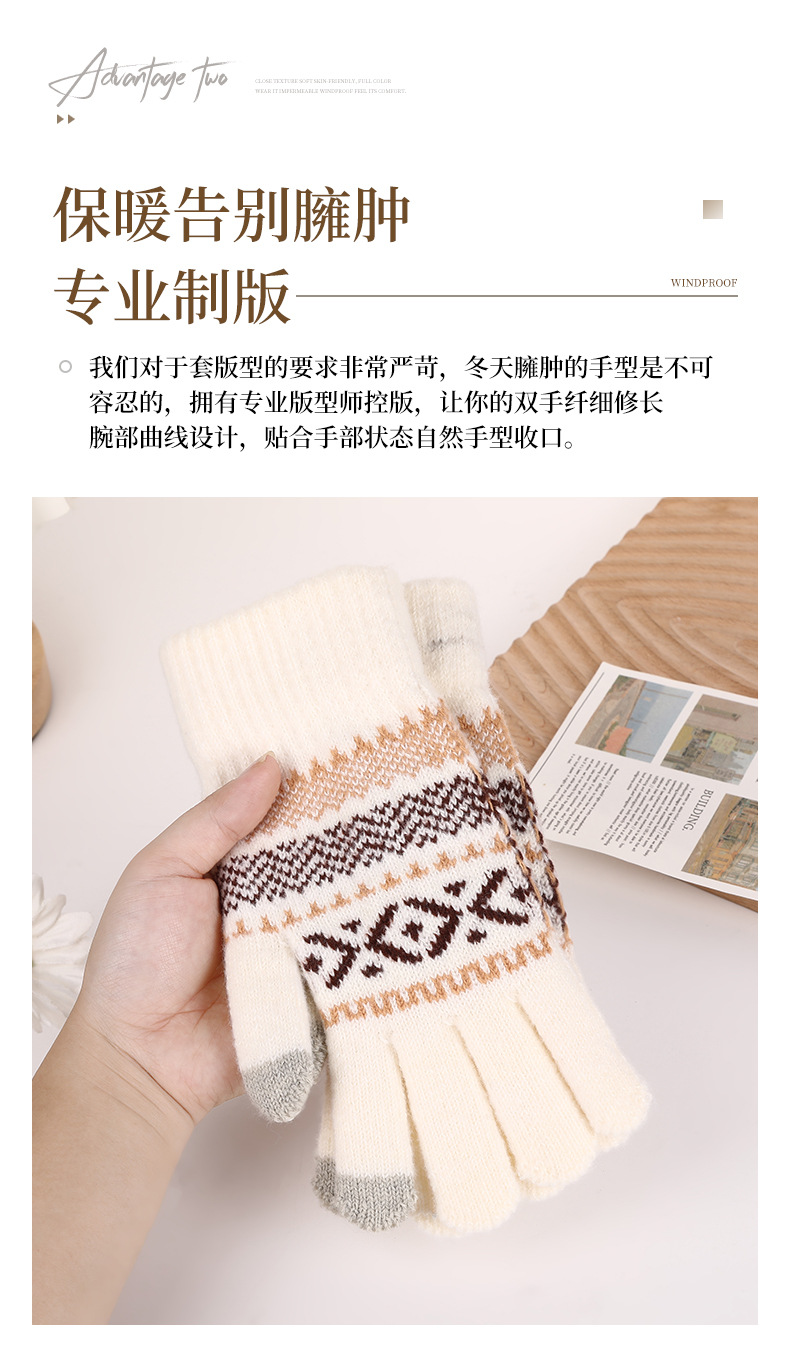 니트 자카드 터치 스크린 따뜻한 장갑 여성의 가을과 겨울 남성 야외 기모 두꺼운 방한 풀 손가락 울 장갑