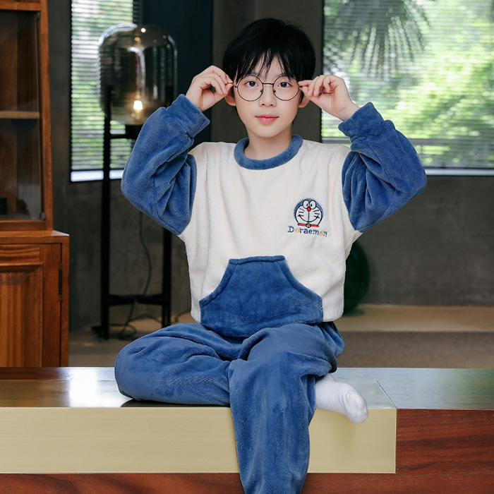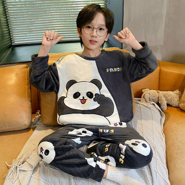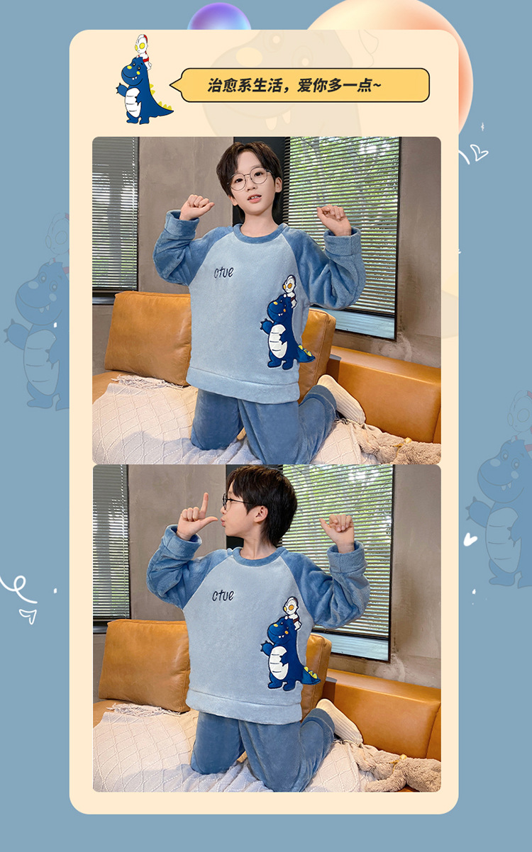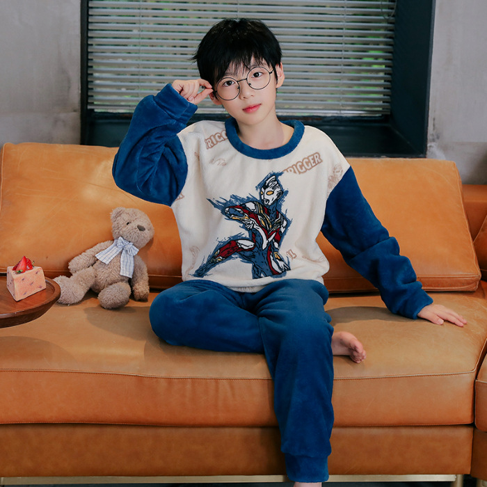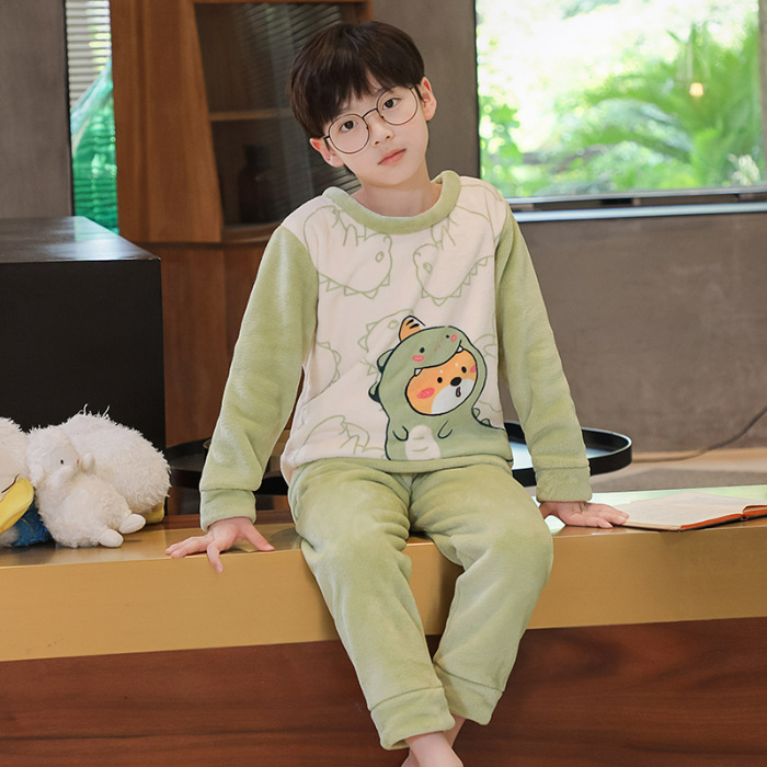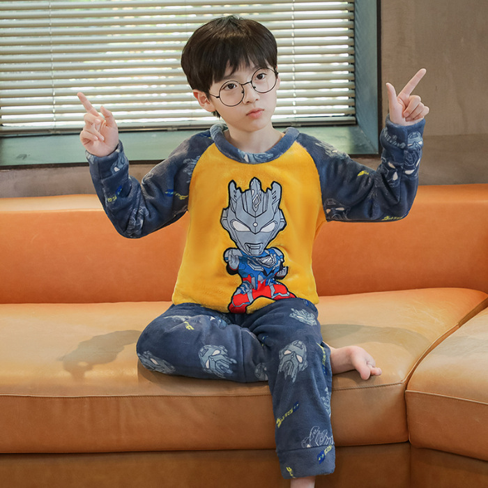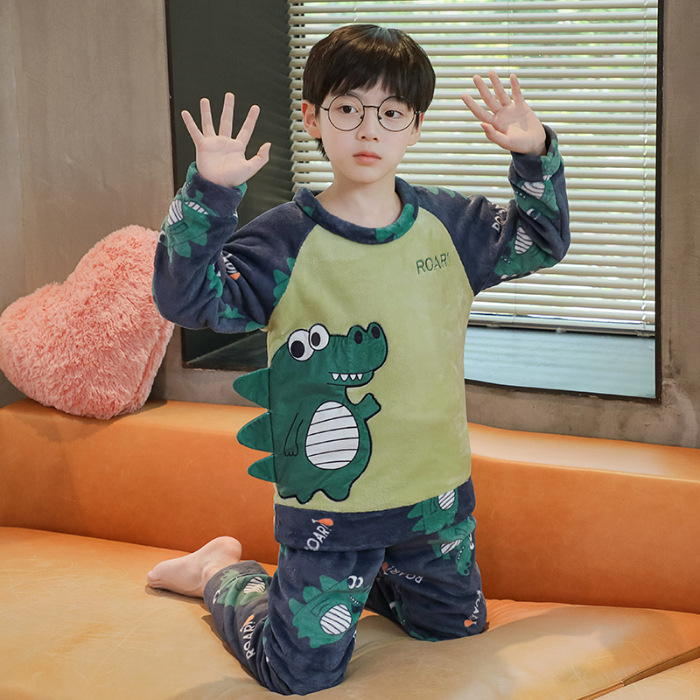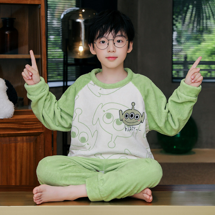 어린이 잠옷 산호 양털 겨울 만화 귀여운 소년 중 큰 아이들 가을과 겨울 소년 플란넬 홈 옷 세트