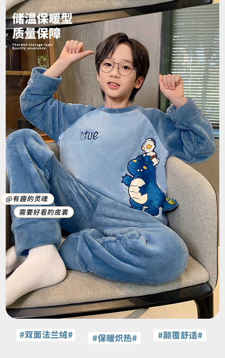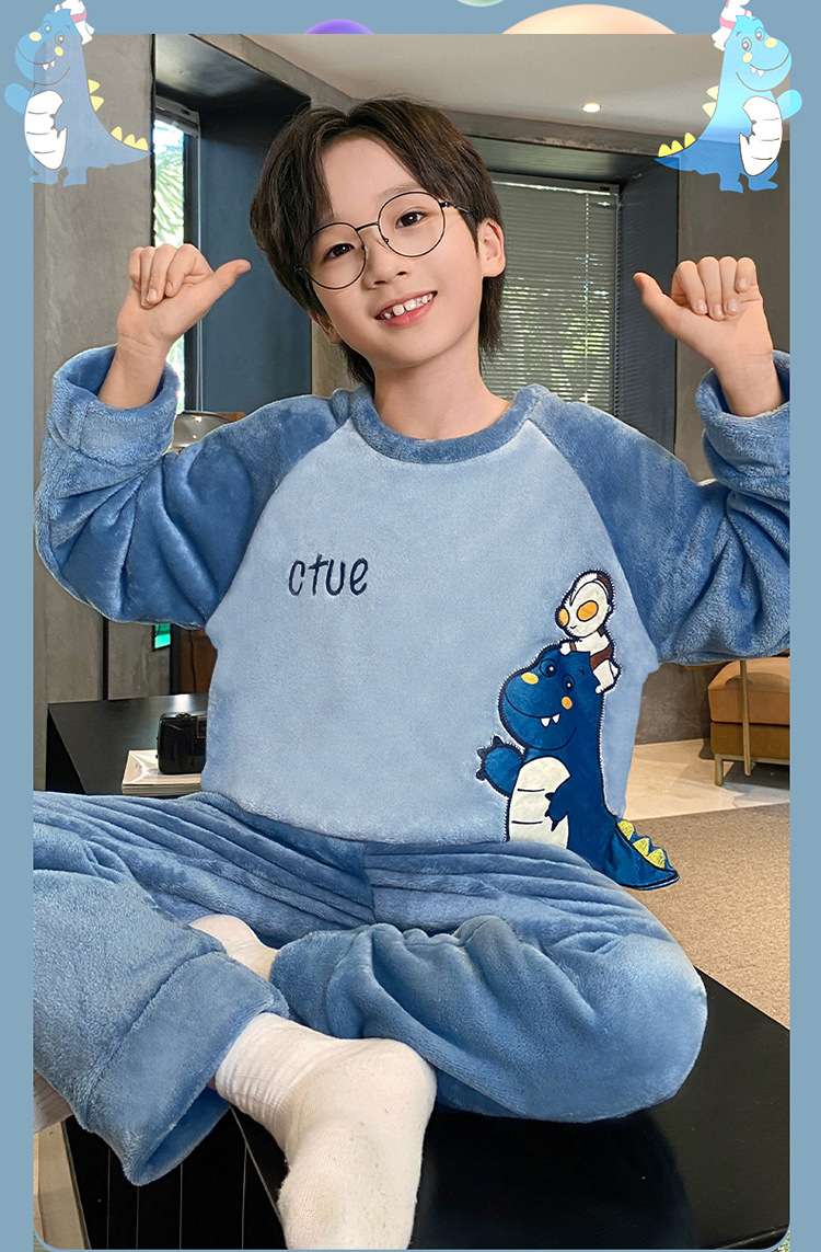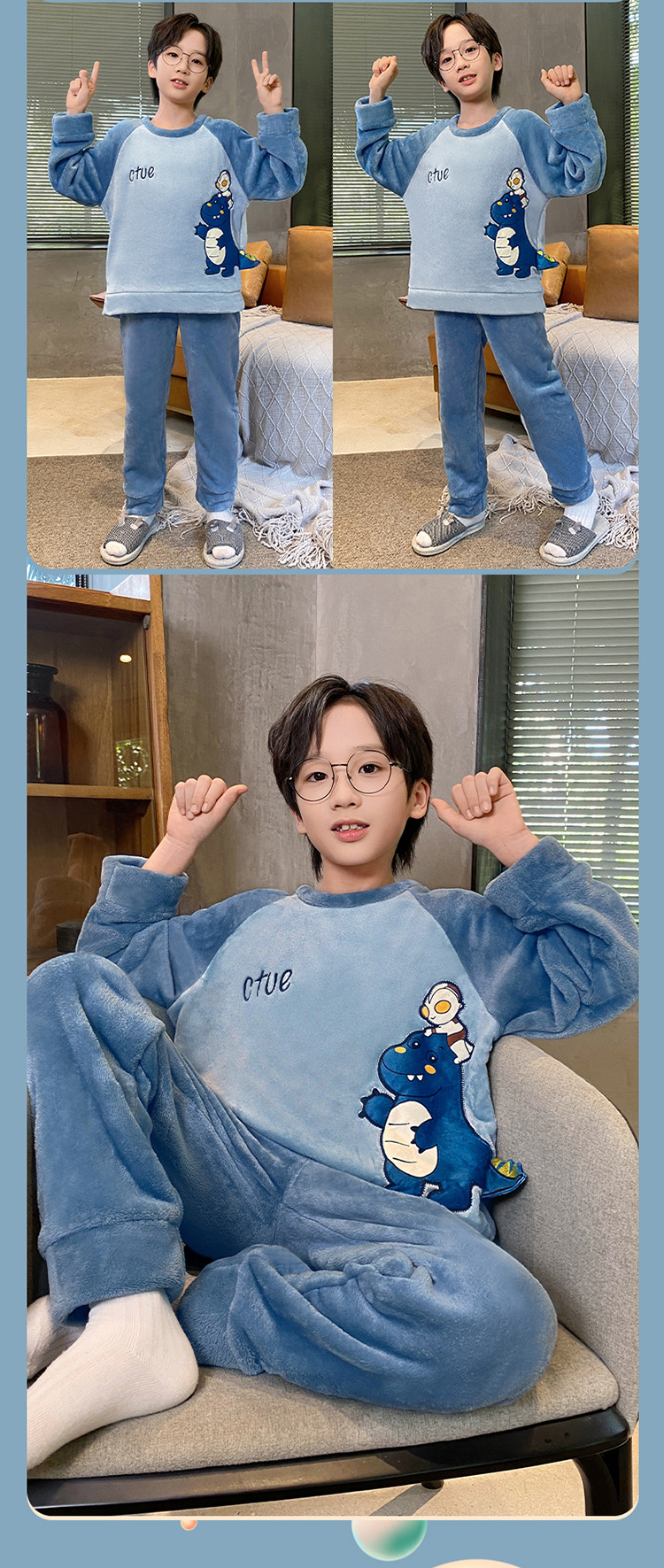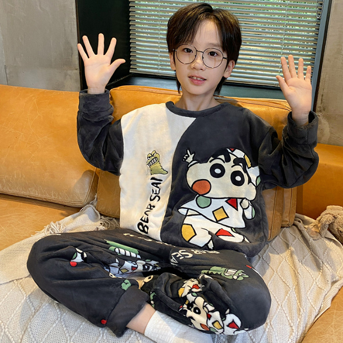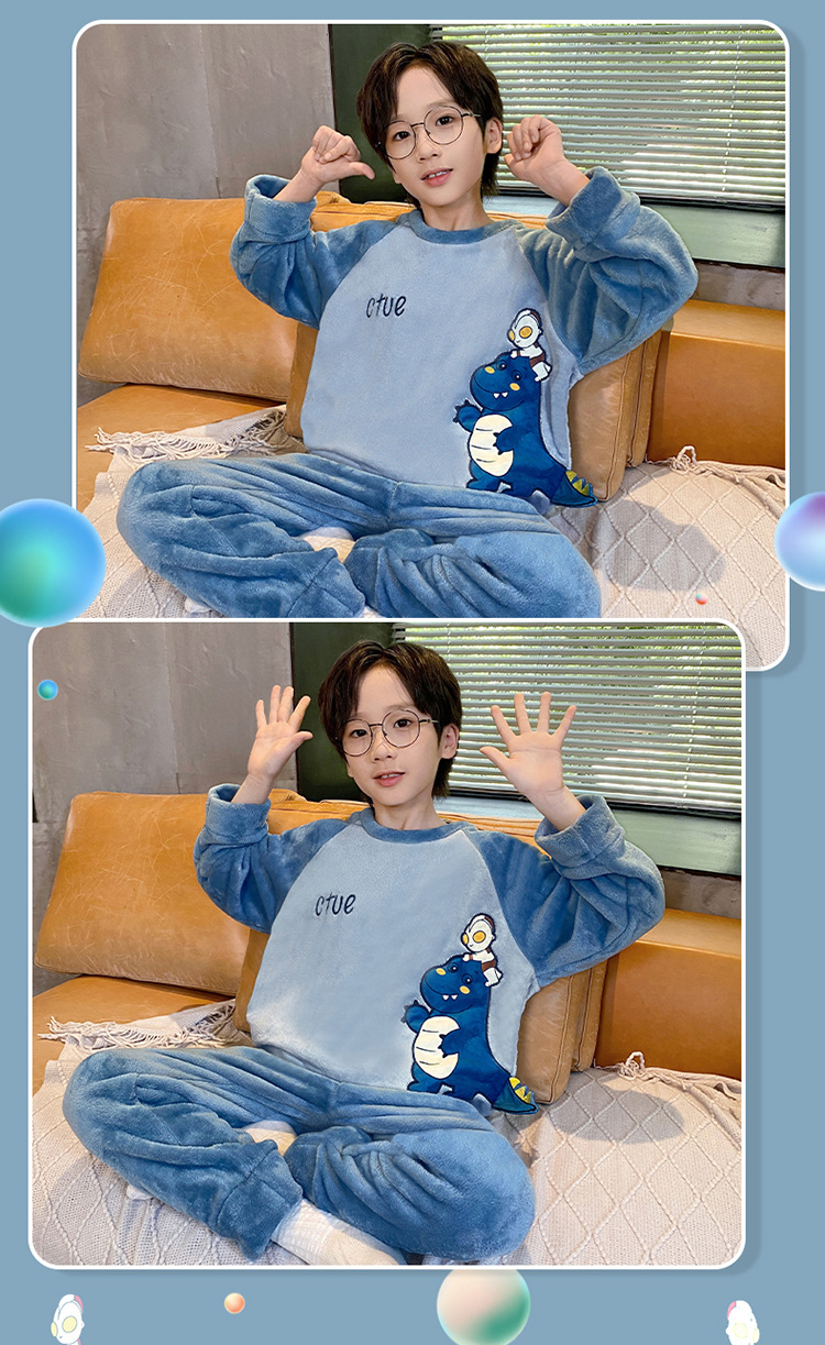 어린이 잠옷 산호 양털 겨울 만화 귀여운 소년 중 큰 아이들 가을과 겨울 소년 플란넬 홈 옷 세트스토어 가기