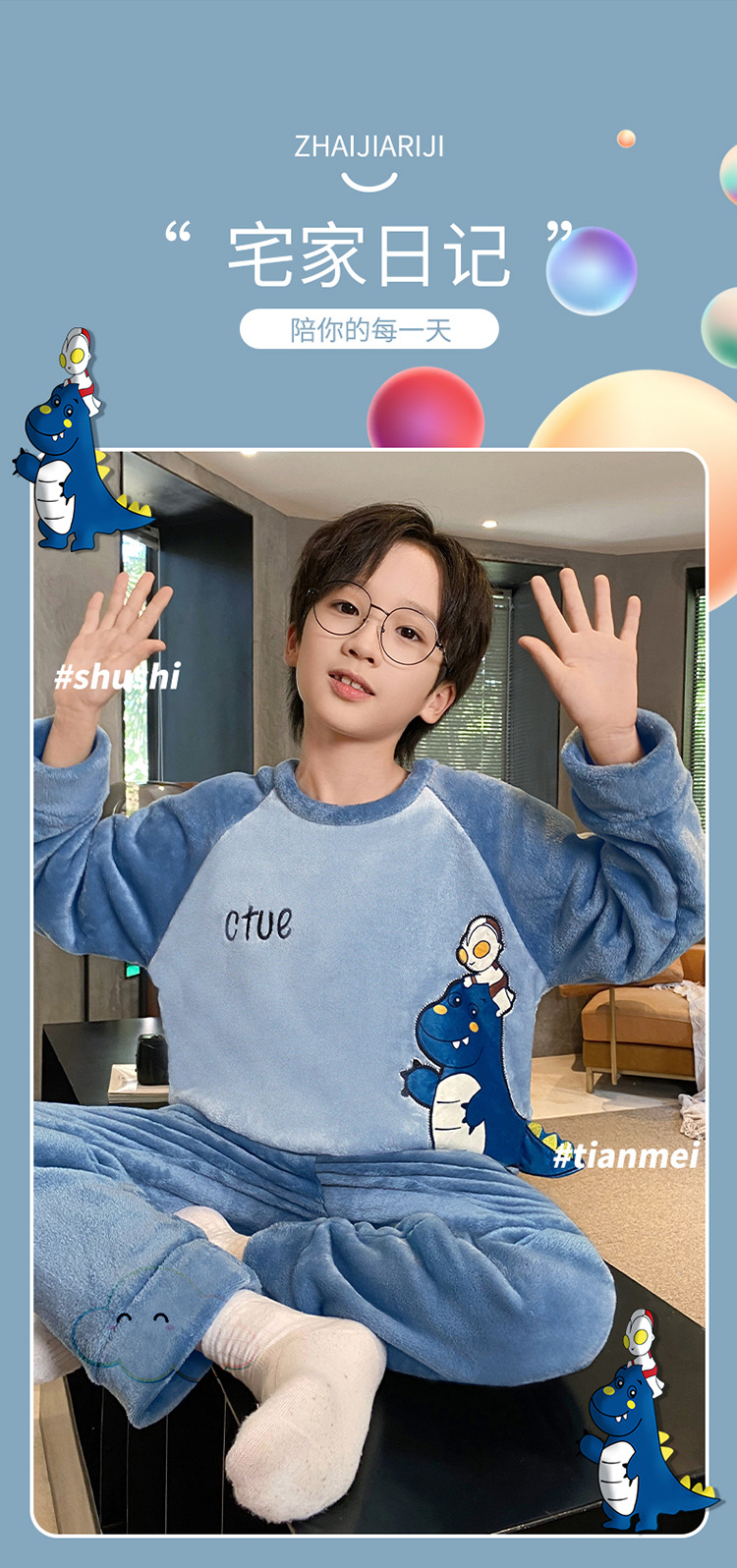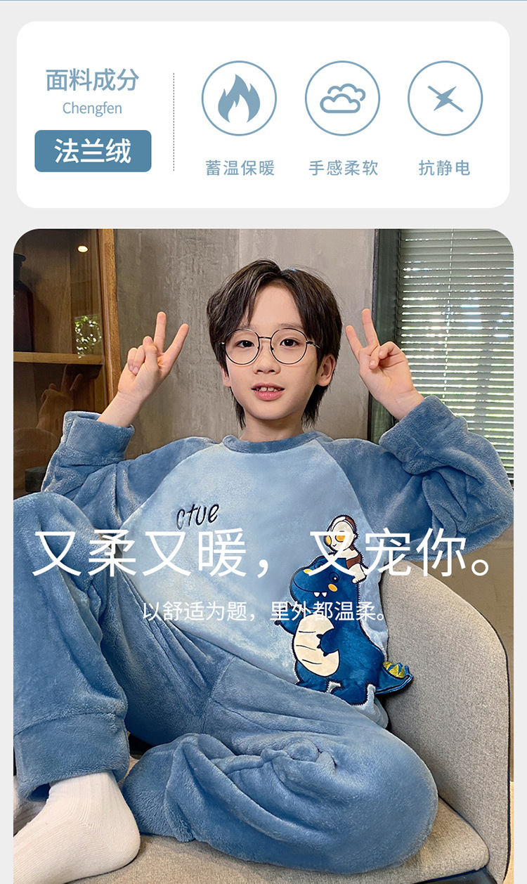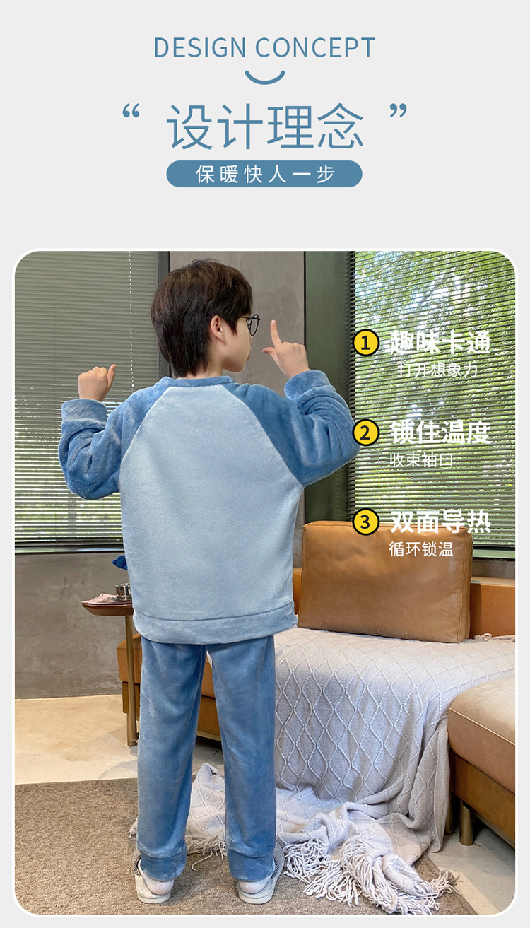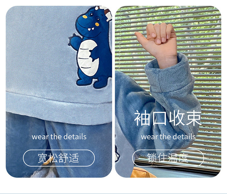어린이 잠옷 산호 양털 겨울 만화 귀여운 소년 중 큰 아이들 가을과 겨울 소년 플란넬 홈 옷 세트스토어 가기