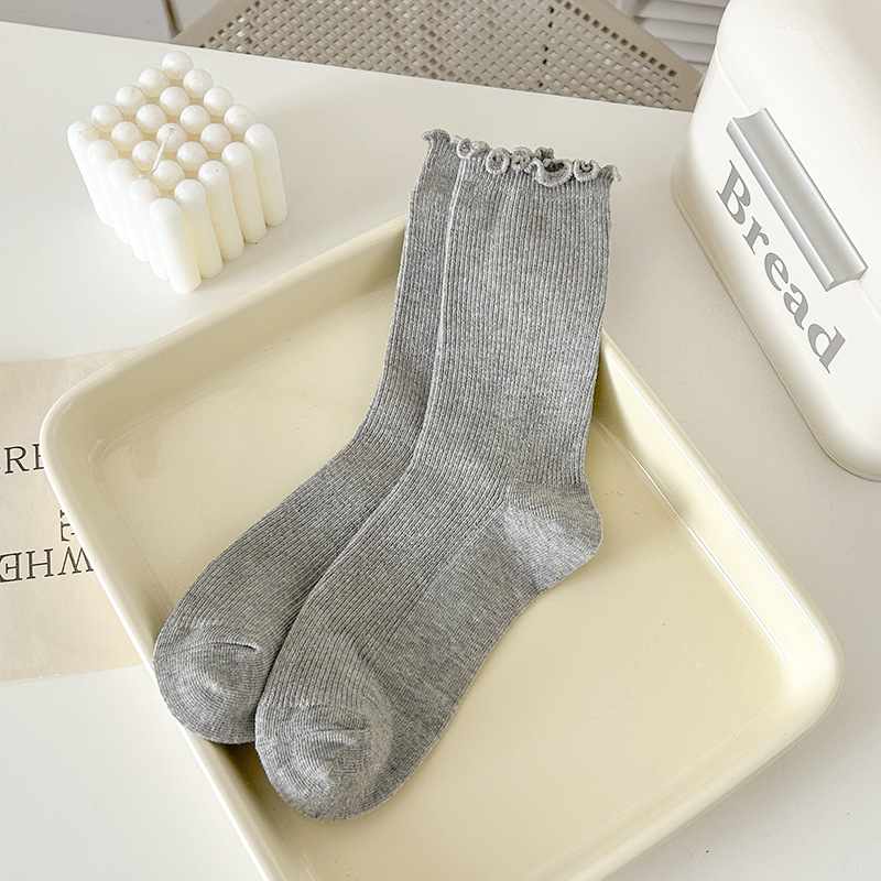여성 레이스 쌓인 목재-귀 가장자리와 미들 튜브 여성용 스타킹 봄 가을과 겨울 콤비드 코튼 한국식 화이트 스타킹 느슨한 스타킹
