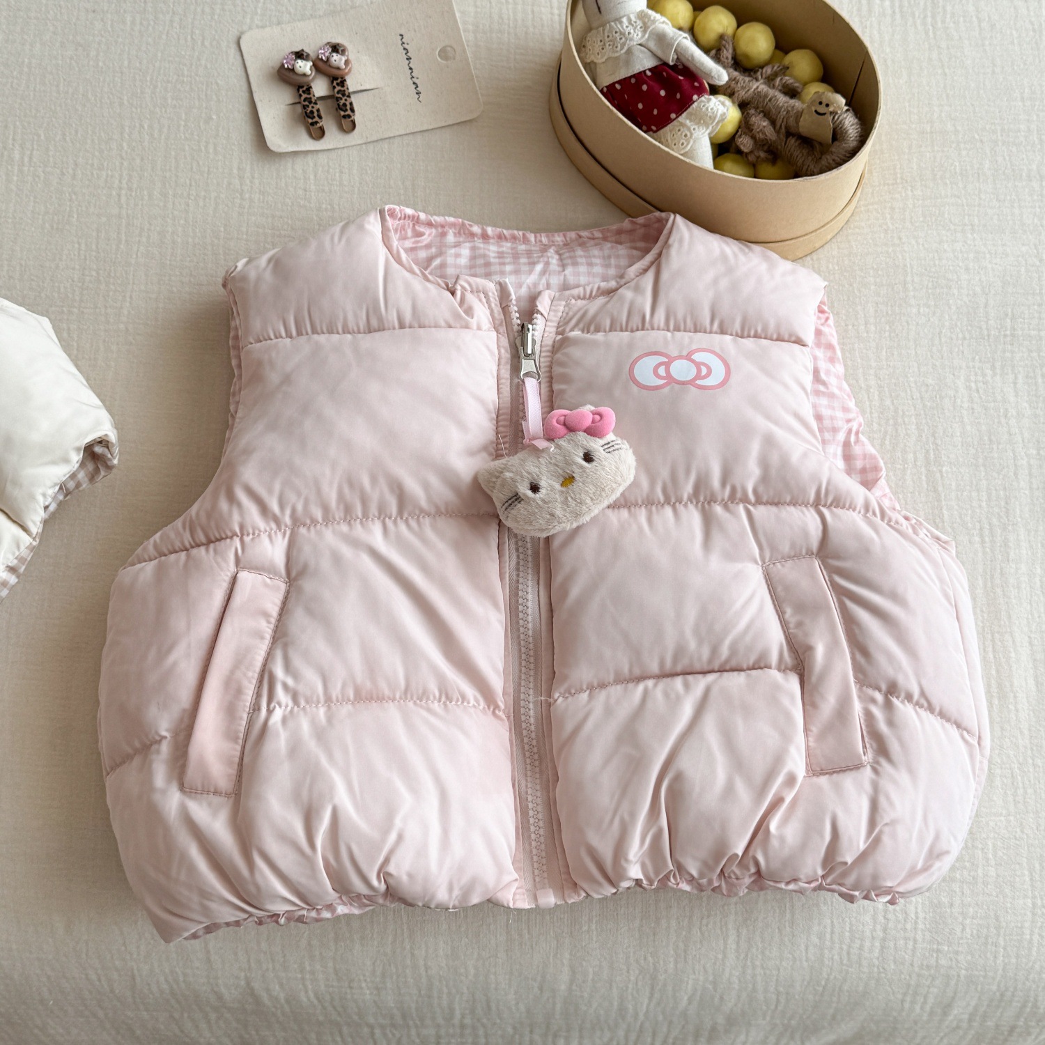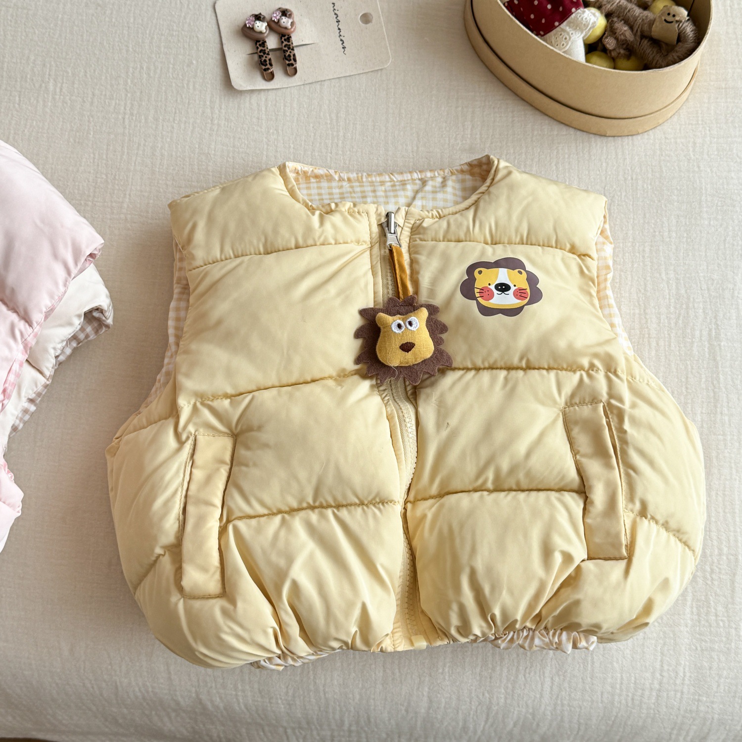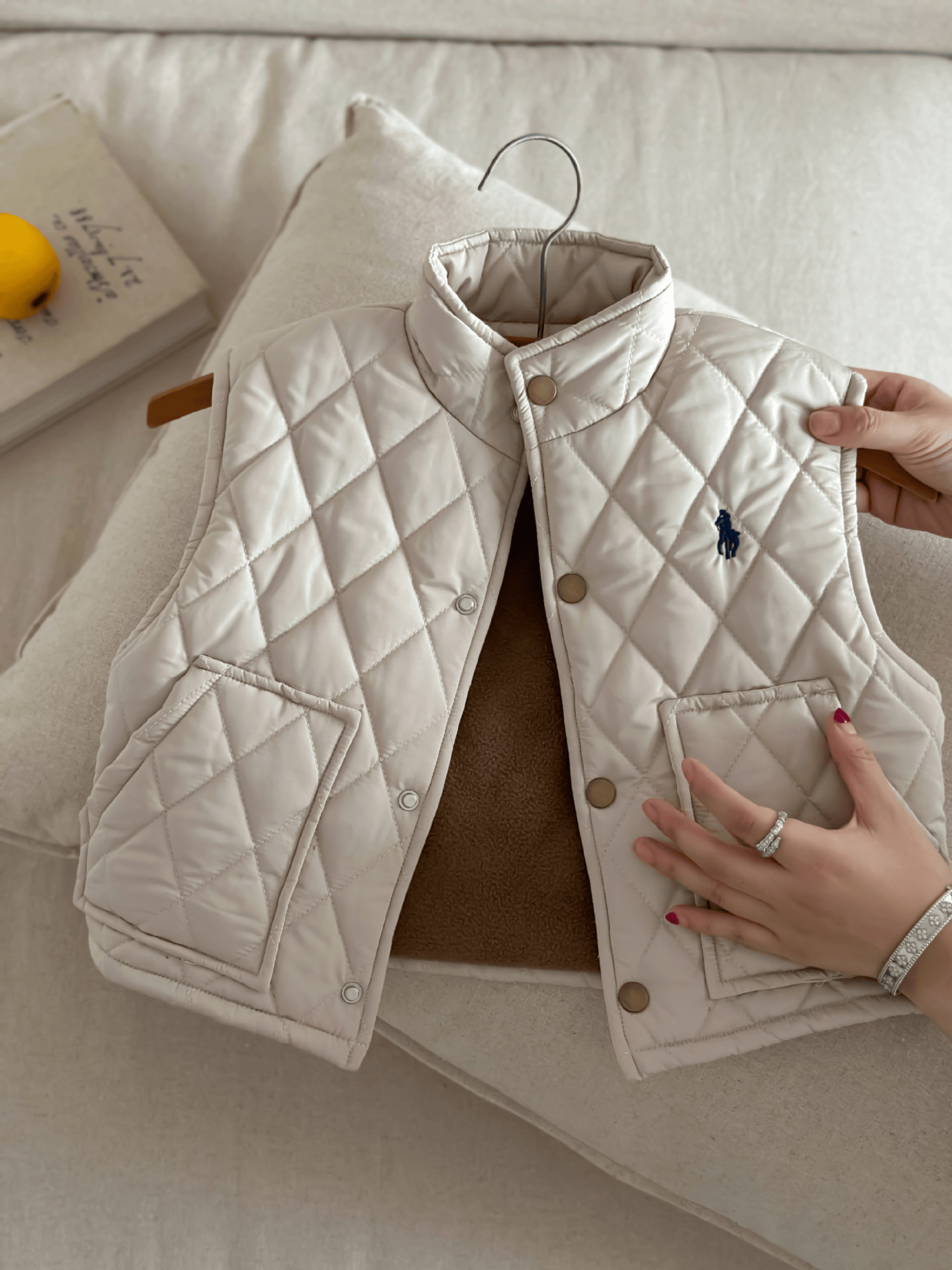국경을 넘는 어린이 인기 조끼 2025 가을 겨울 신상 남녀 아동 자수 트렌디 브랜드 마름모 무늬 플리스 조끼