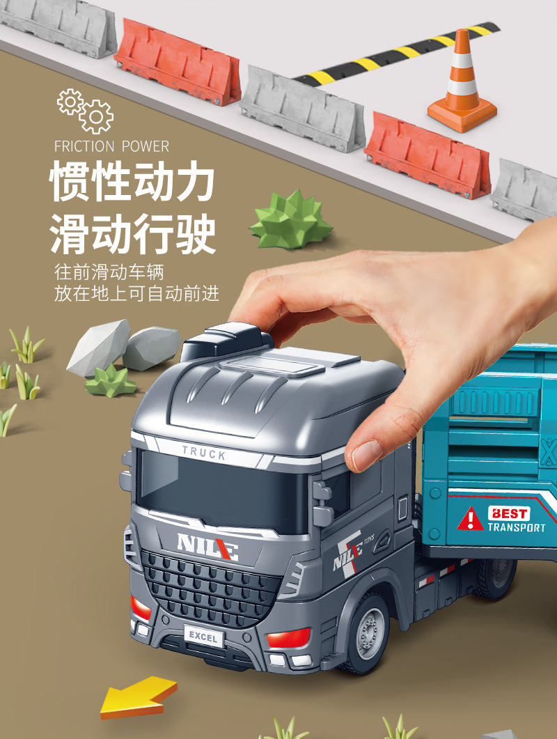 관성 컨테이너 운송업자 대형 트럭 컨테이너화물 트레일러 어린이 소년화물 엔지니어링 장난감 자동차 모델