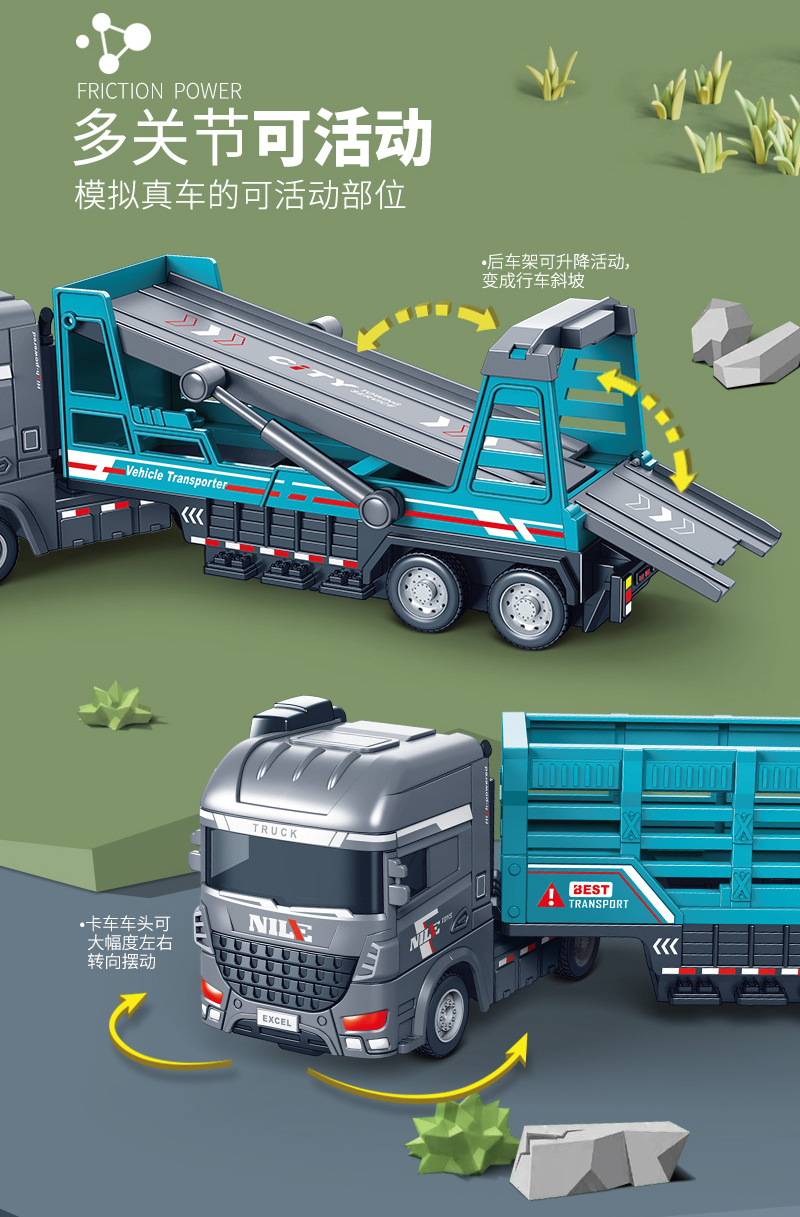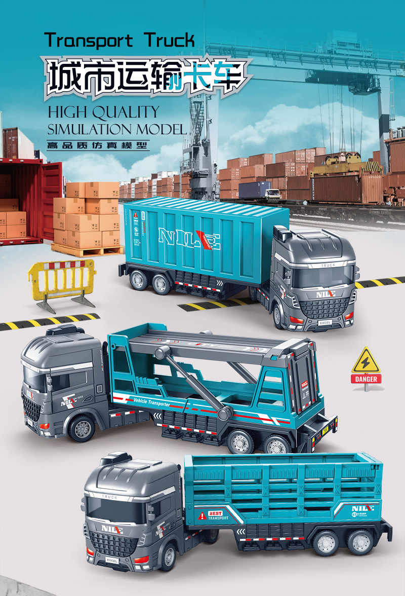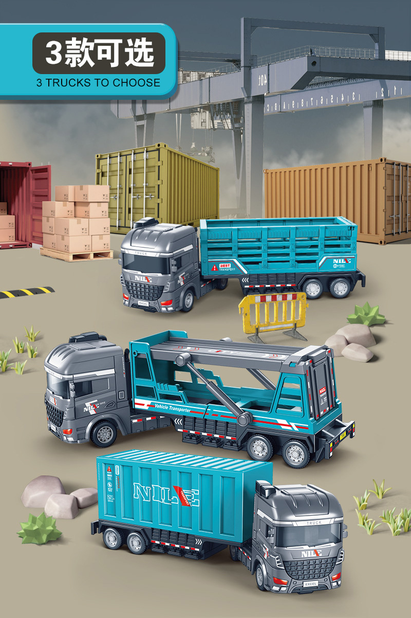 관성 컨테이너 운송업자 대형 트럭 컨테이너화물 트레일러 어린이 소년화물 엔지니어링 장난감 자동차 모델스토어 가기