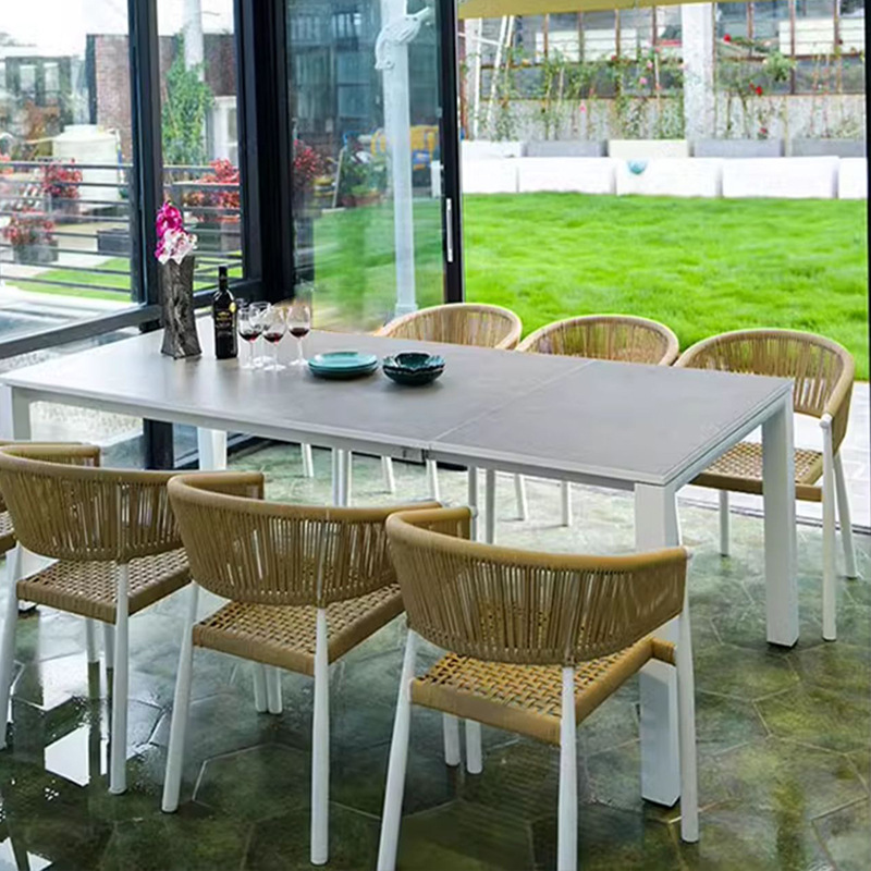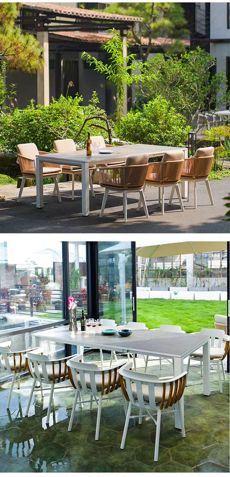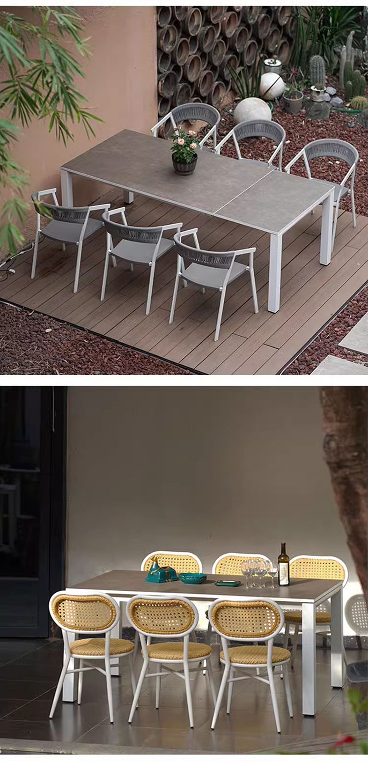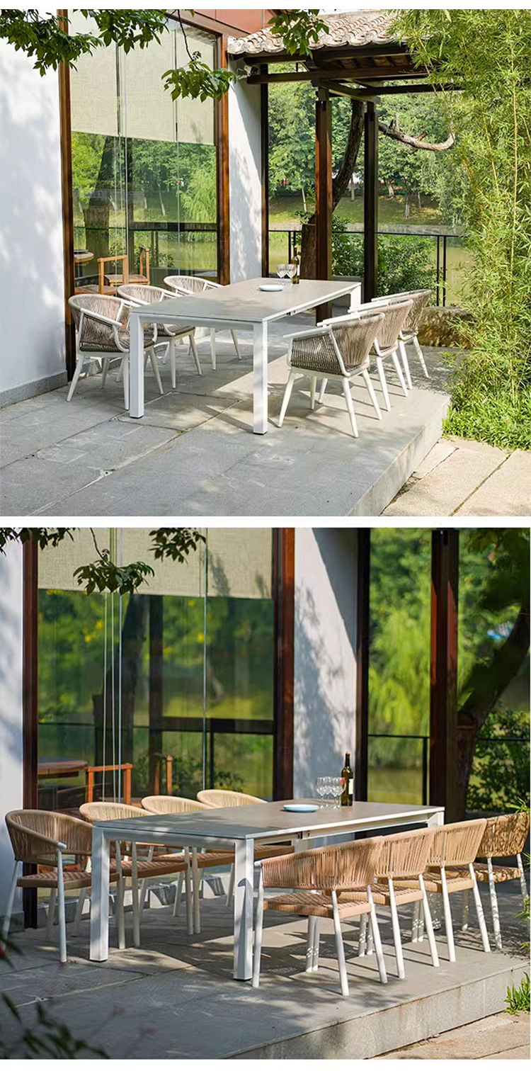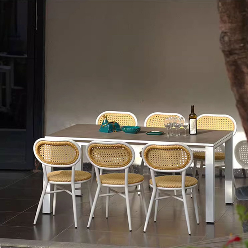 북유럽 간단한 발코니 테이블과 의자 조합 등나무 긴 테이블 망원경 창조적 인 빌라 야외 레저 방수 선 스크린