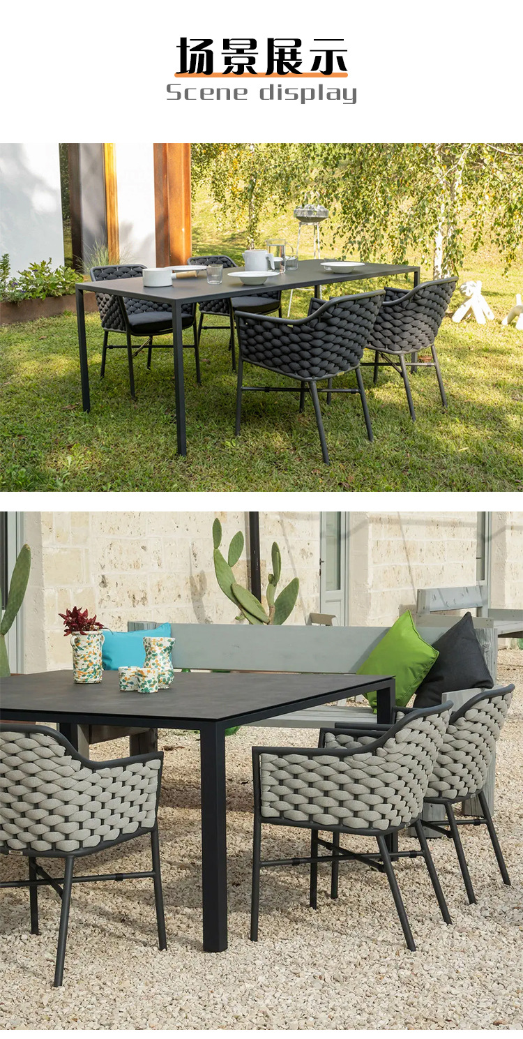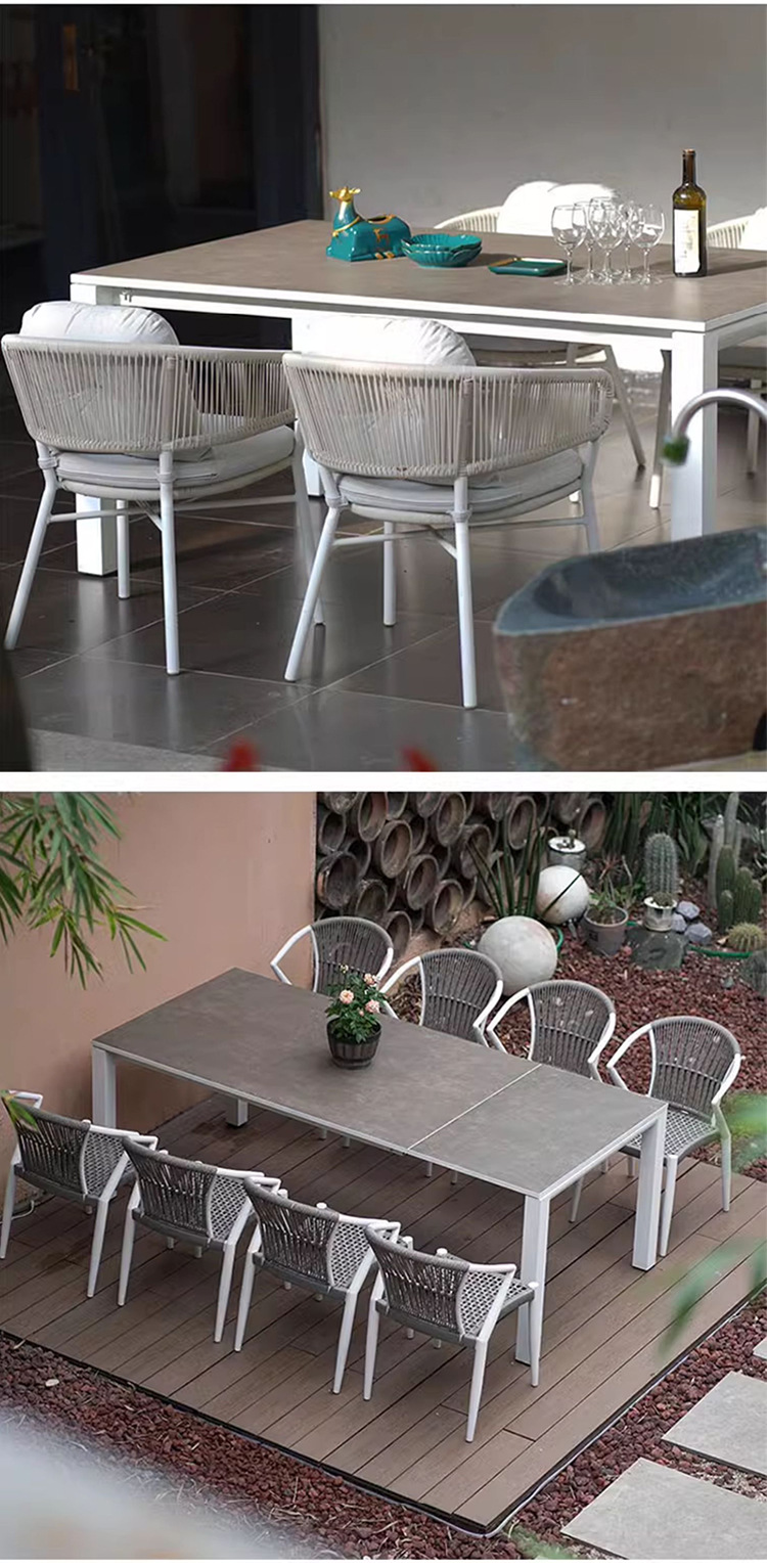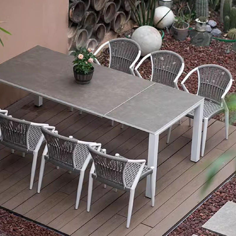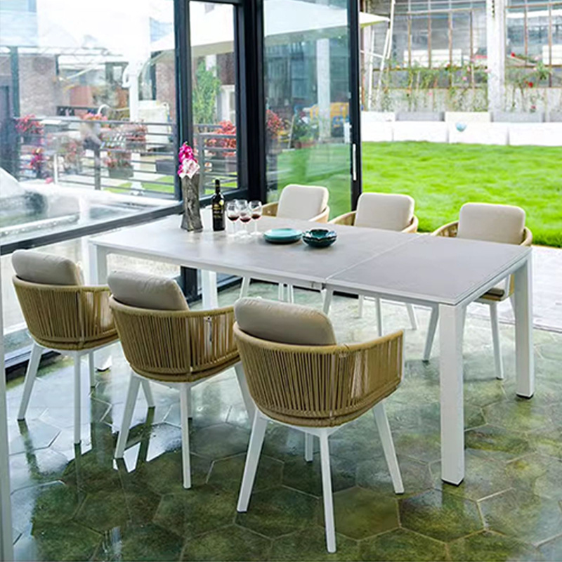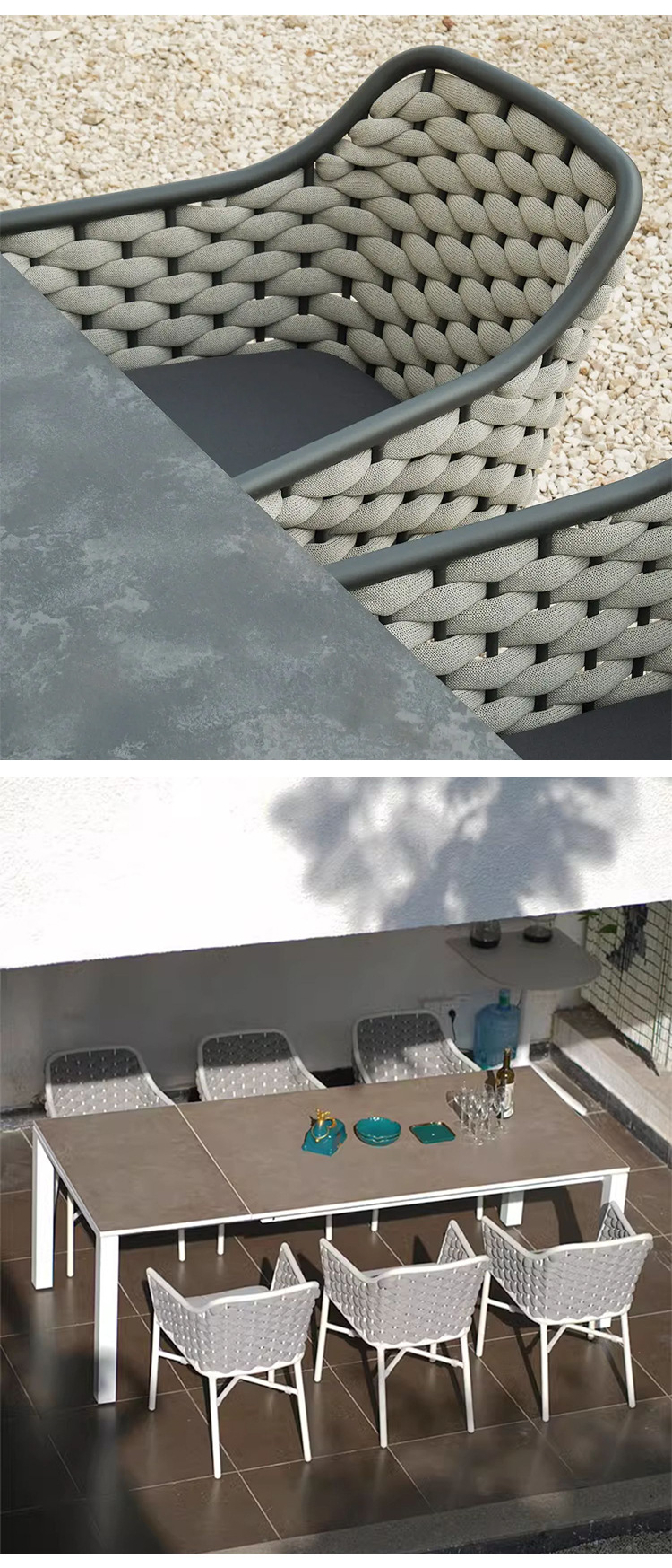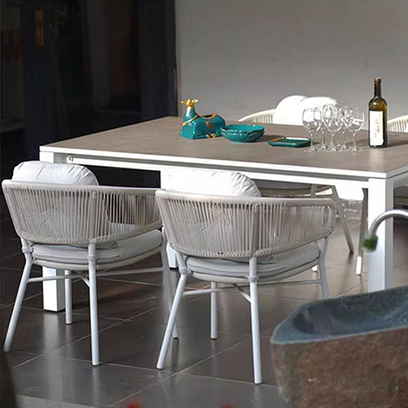 북유럽 간단한 발코니 테이블과 의자 조합 등나무 긴 테이블 망원경 창조적 인 빌라 야외 레저 방수 선 스크린