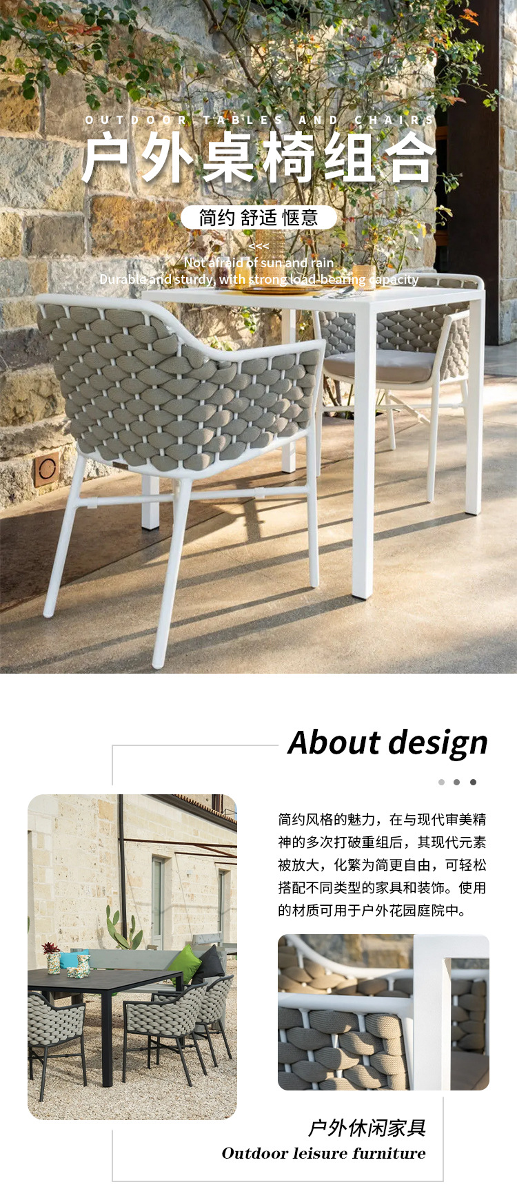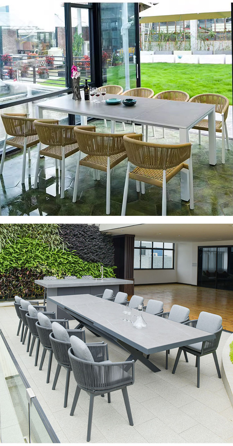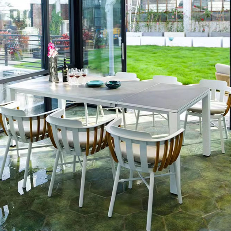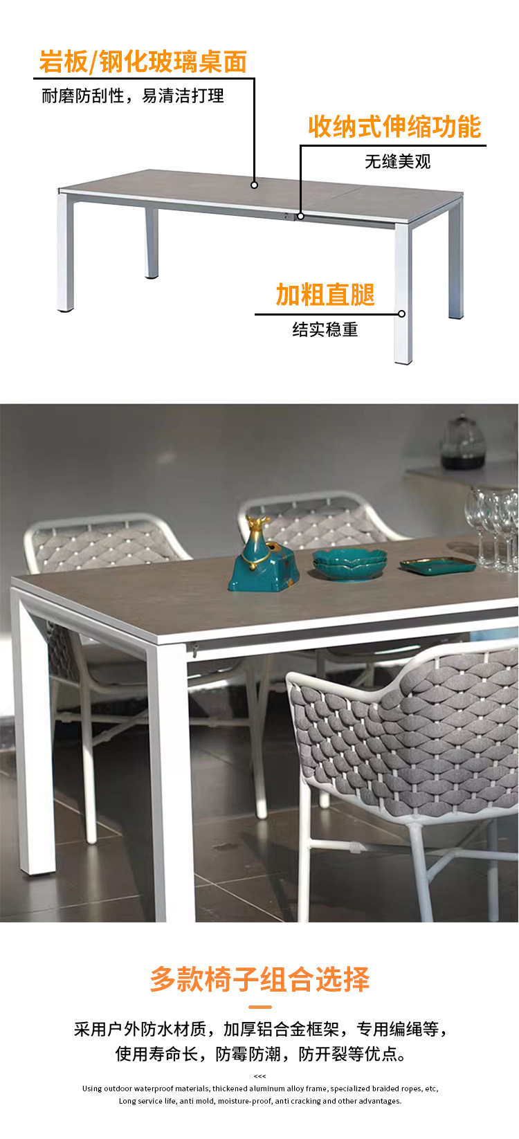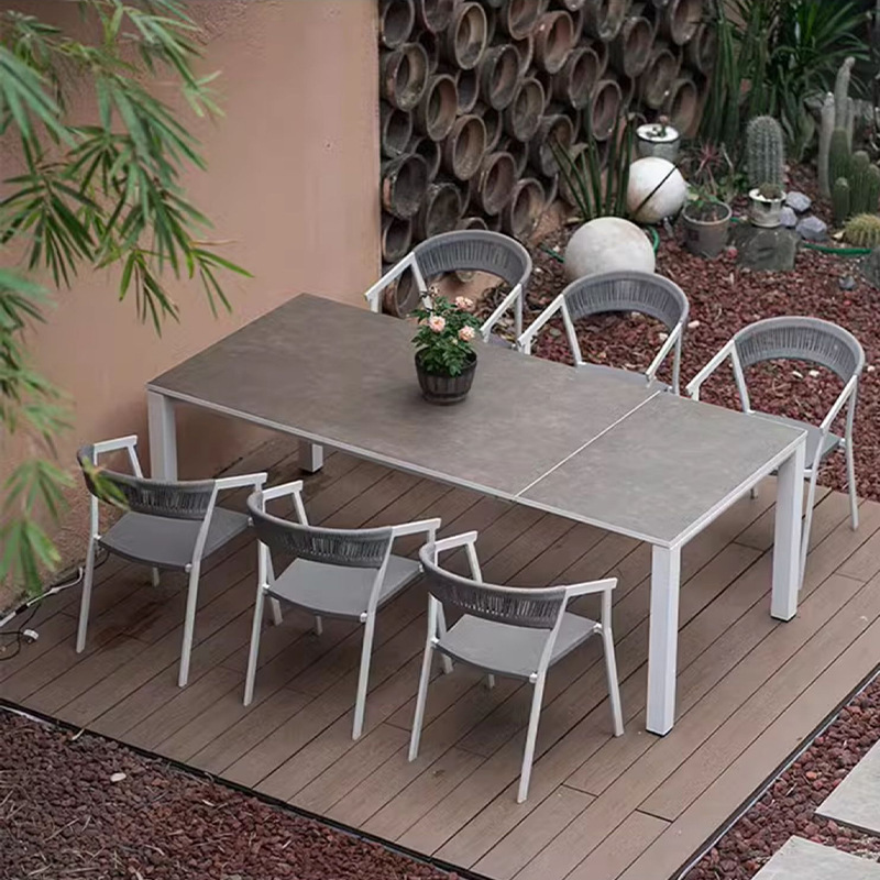 북유럽 간단한 발코니 테이블과 의자 조합 등나무 긴 테이블 망원경 창조적 인 빌라 야외 레저 방수 선 스크린