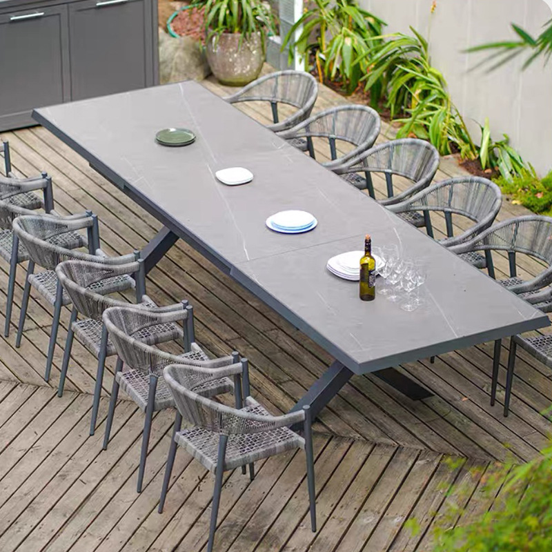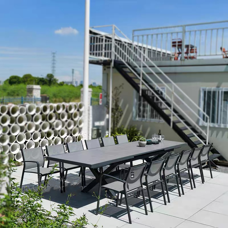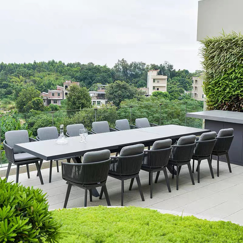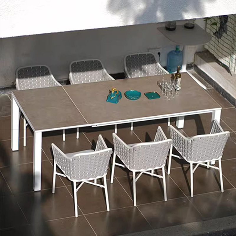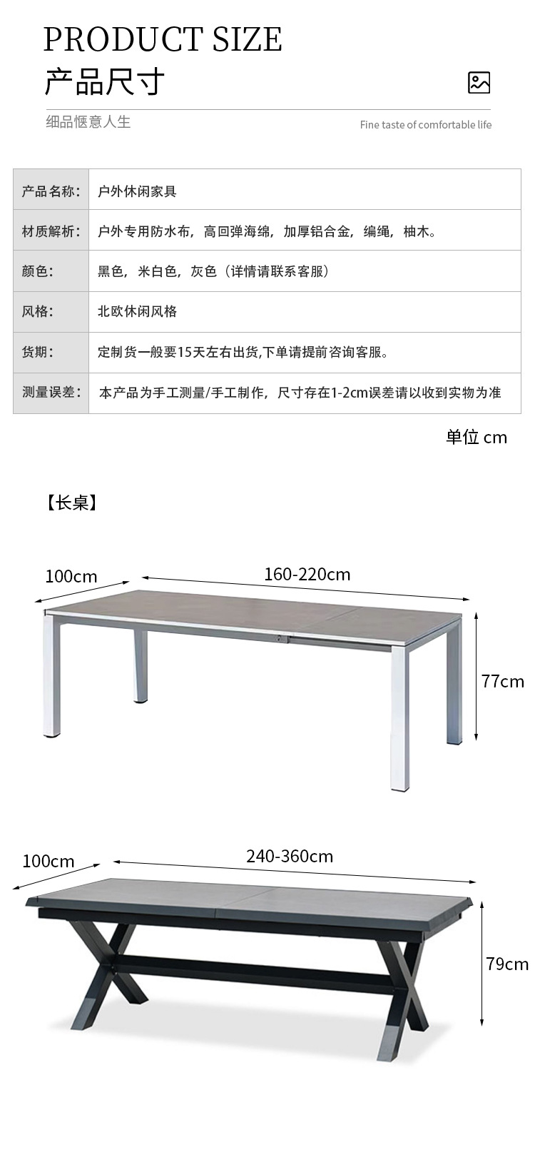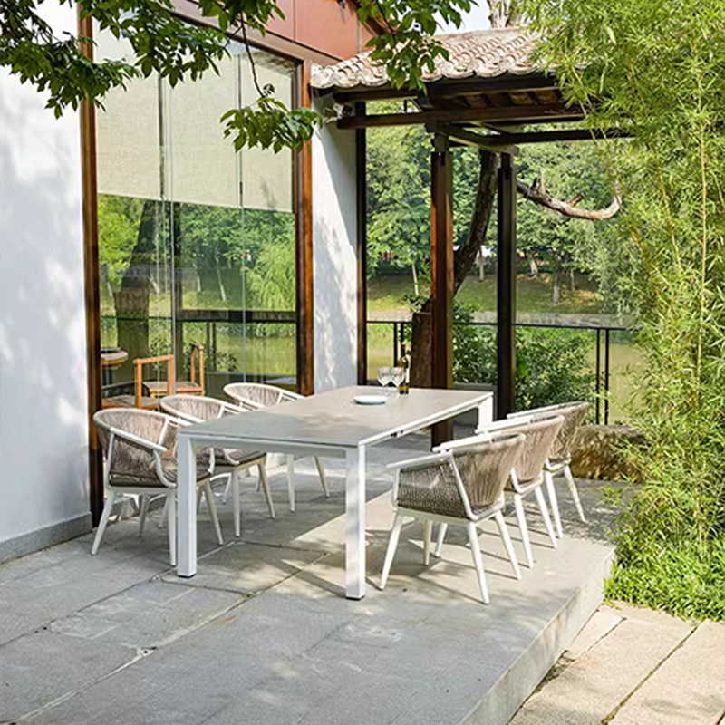북유럽 간단한 발코니 테이블과 의자 조합 등나무 긴 테이블 망원경 창조적 인 빌라 야외 레저 방수 선 스크린