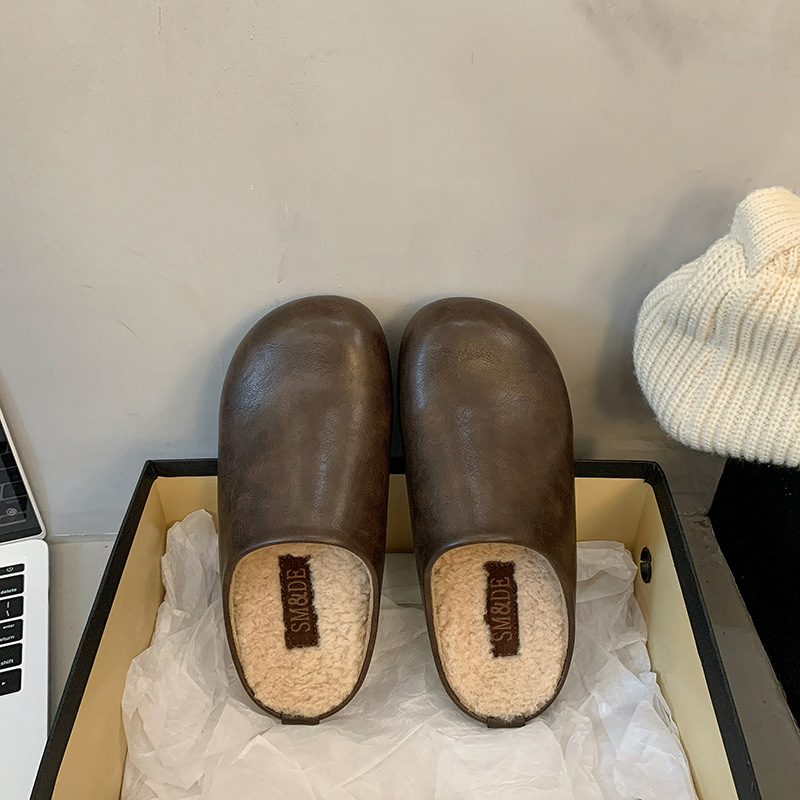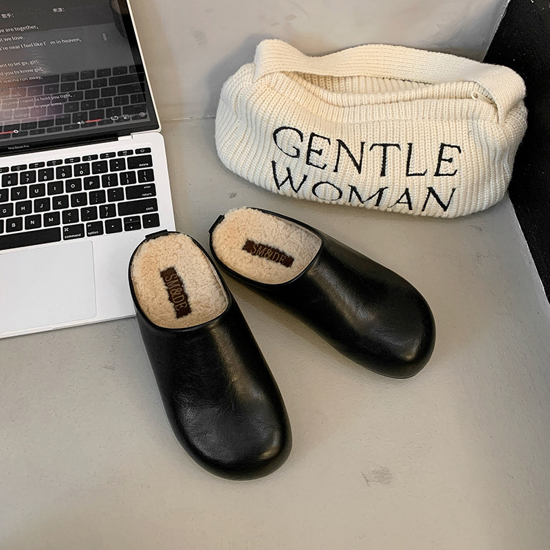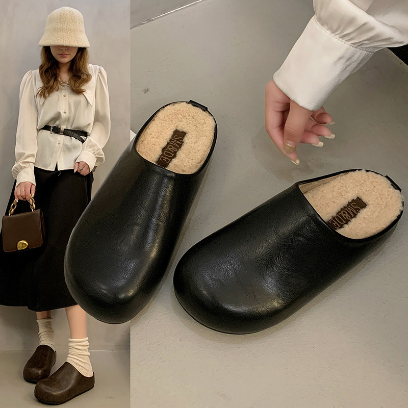 프랑스 Birkenneth 신발 새로운 라운드 발가락 반 드래그 플랫 후면 빈 신발 외부 착용 게으른 슬리퍼 유행 우아한 반 슬리퍼