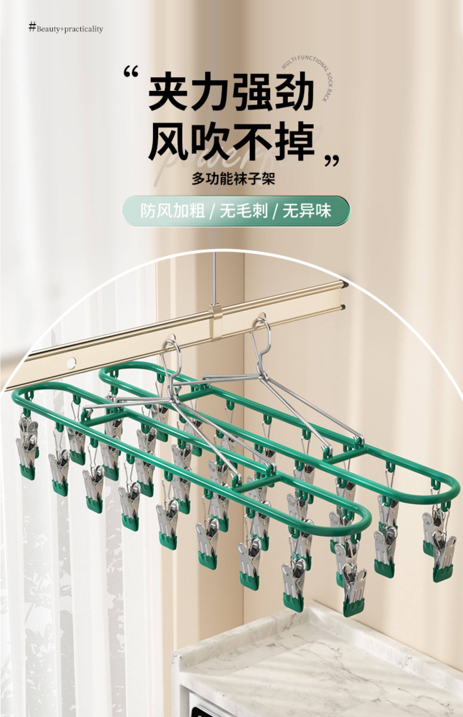 스테인레스 스틸 양말 건조 랙 멀티 클립 가정용 원활한 옷걸이 속옷 팬티 건조 랙 발코니 방풍 옷걸이
