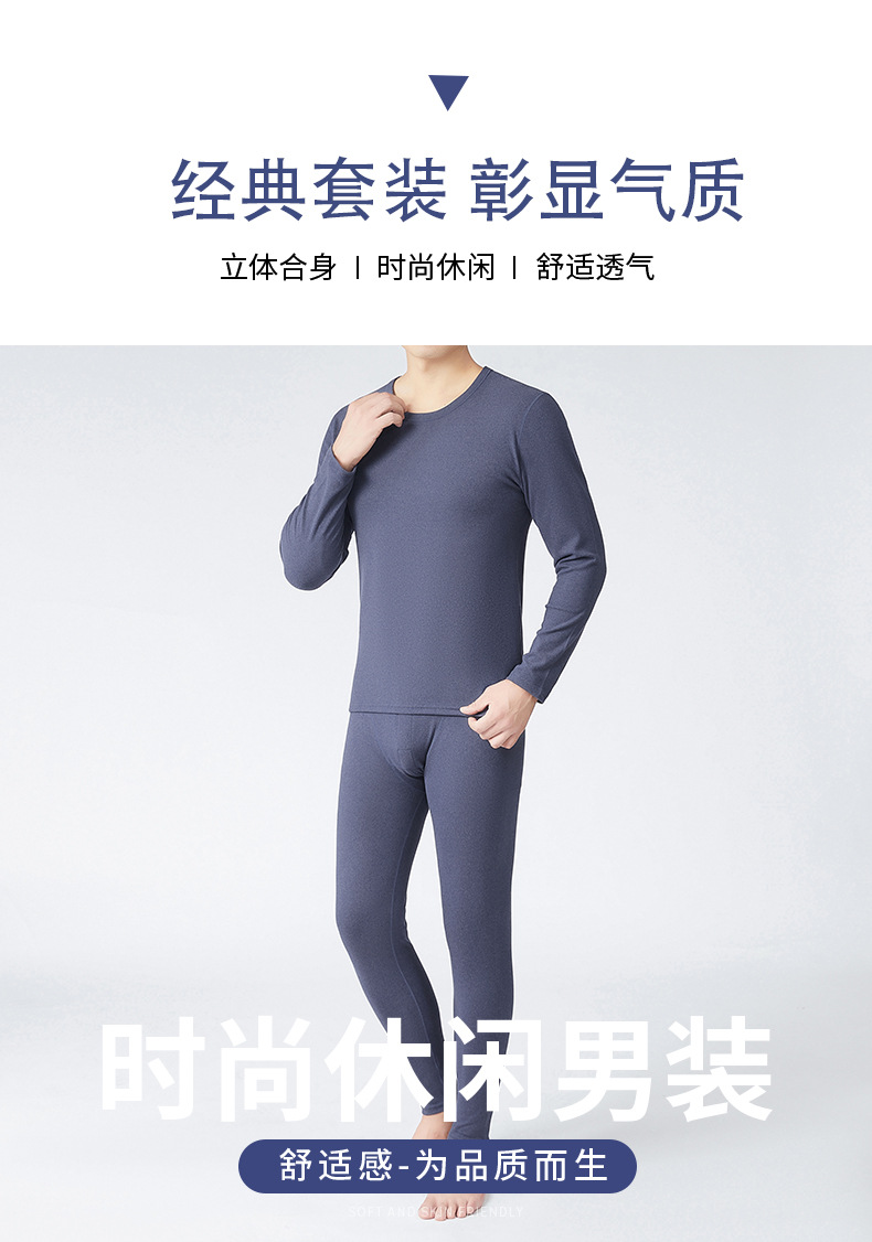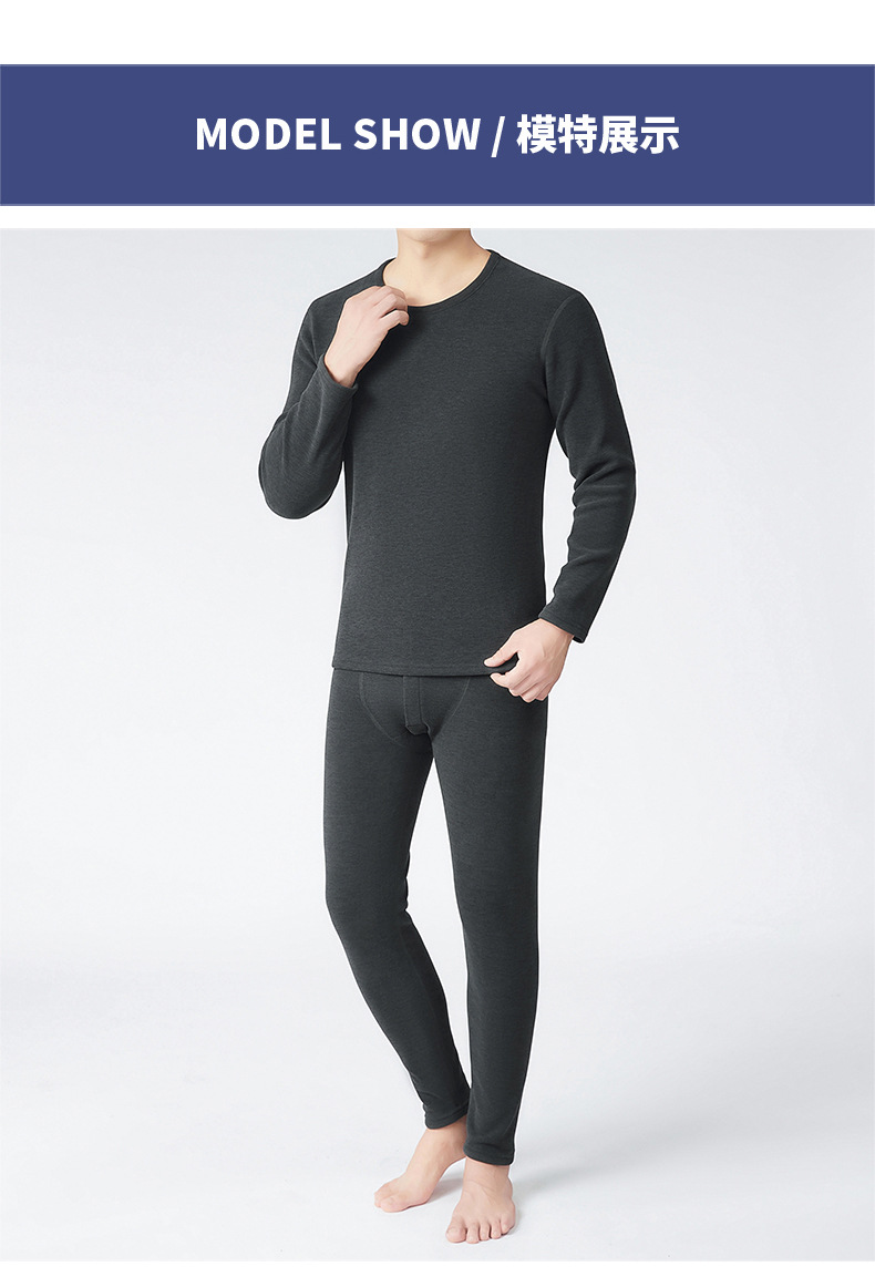 남성 가을과 겨울 크루 넥 벨벳 비 마킹 피부 친화적 인 열 속옷 젊고 중년의 기본 가을 옷 가을 바지 파자마 세트스토어 가기