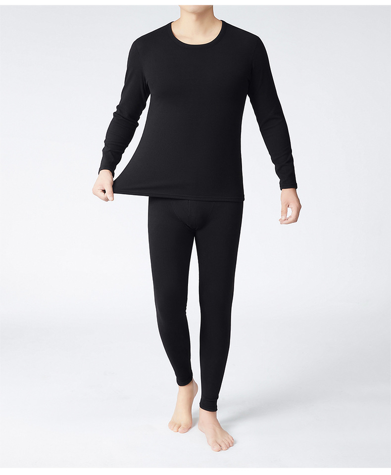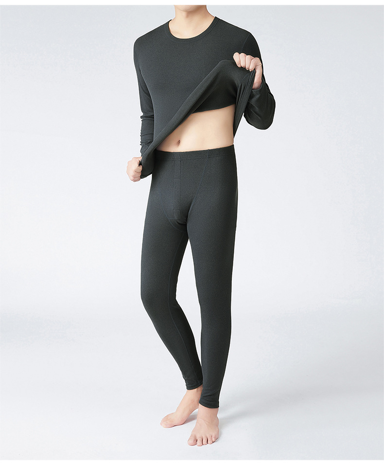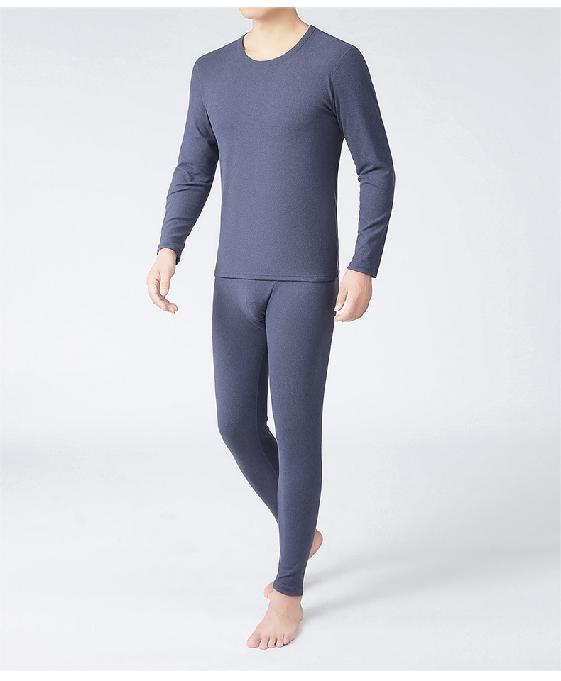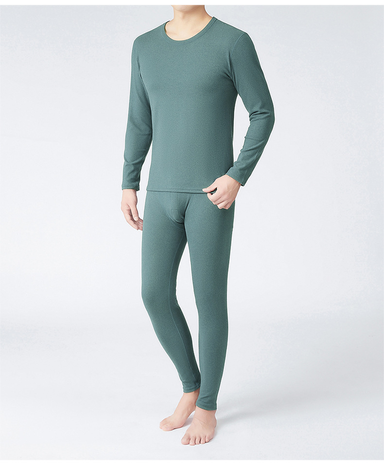 남성 가을과 겨울 크루 넥 벨벳 비 마킹 피부 친화적 인 열 속옷 젊고 중년의 기본 가을 옷 가을 바지 파자마 세트