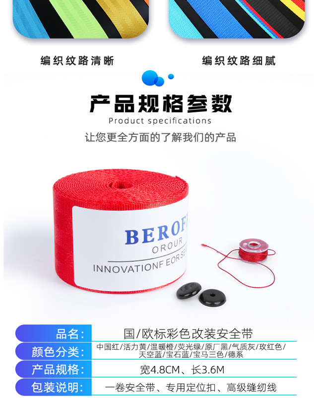 대외 무역 국경 뜨거운 4.8cm 넓은 컬러 자동차 안전 벨트 색상 변경 웨빙 바인딩 벨트 자동차 부품 공급스토어 가기