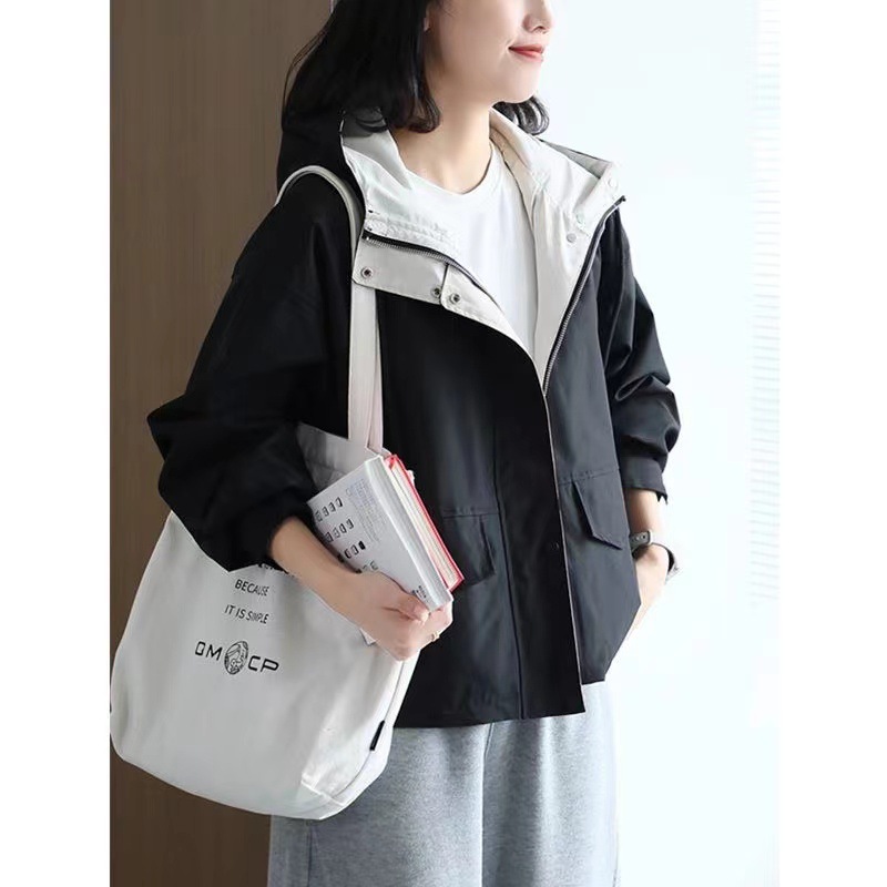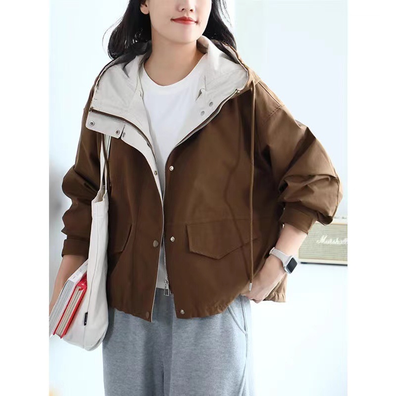 가을 새로운 후드 윈드브레이커 재킷 여성 캐주얼 루즈 슬리밍 한국 스타일 야외 재킷 여성 20957