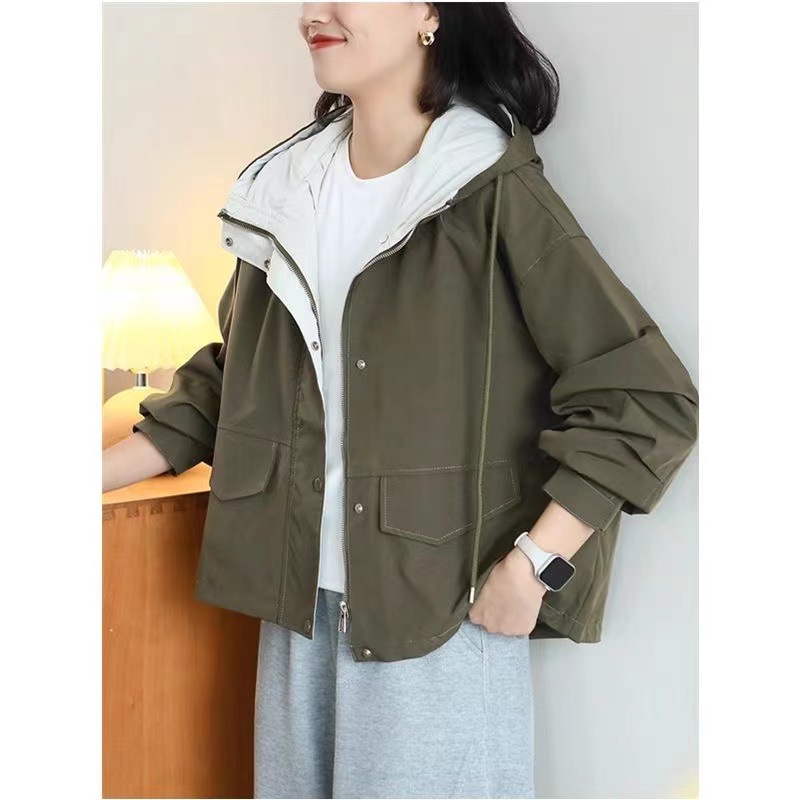 가을 새로운 후드 윈드브레이커 재킷 여성 캐주얼 루즈 슬리밍 한국 스타일 야외 재킷 여성 20957스토어 가기