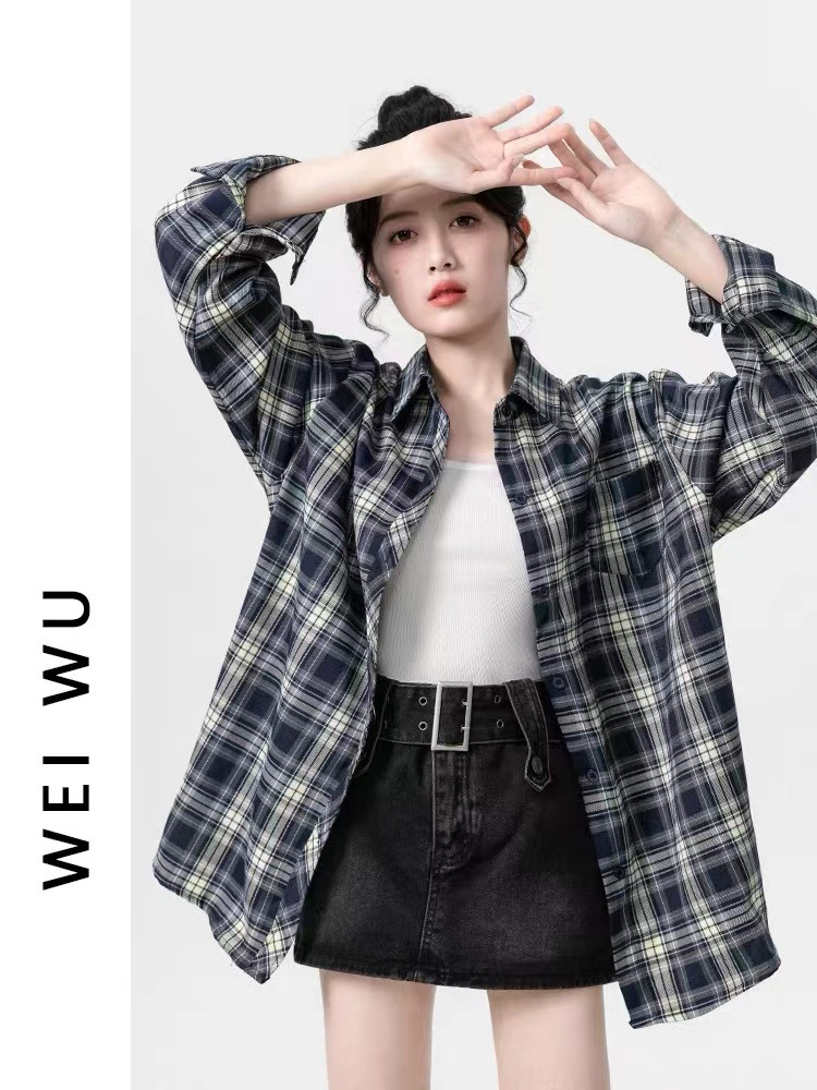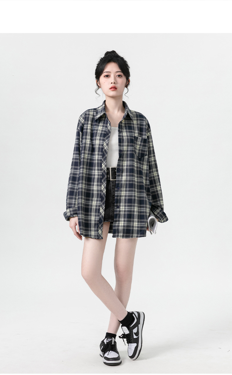 게으른 스타일의 복고풍 격자 무늬 셔츠 여성용 가을 한국 버전의 새로운 느슨한 긴 소매 셔츠 카디건 코트 코트 코트 도매스토어 가기