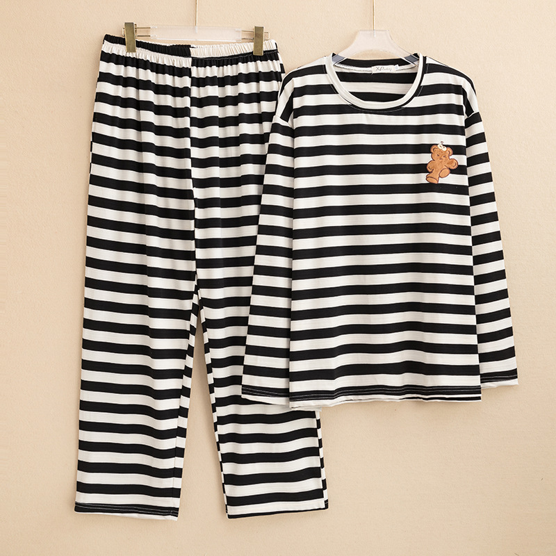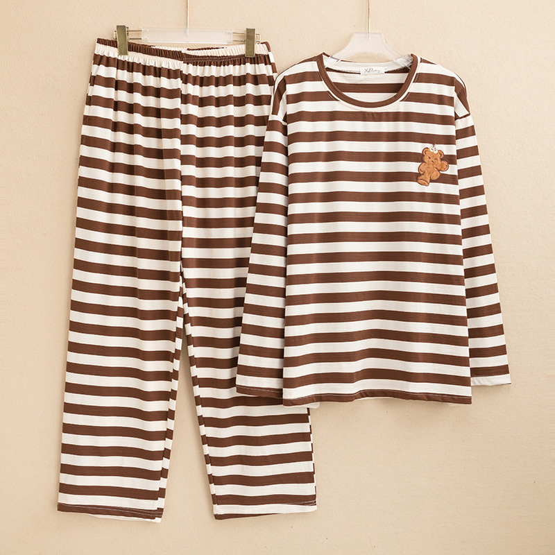 커플 잠옷 남성용 줄무늬 느슨한 플러스 사이즈 긴팔 코튼 니트 간단한 캐주얼 크루 넥 풀오버 홈 의류스토어 가기