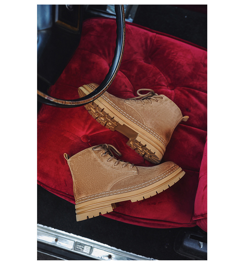 마틴 부츠 남자의 2024 새로운 가을 영국 스타일 빈티지 작업복 부츠 두꺼운 바닥 증가 된 대황 부츠