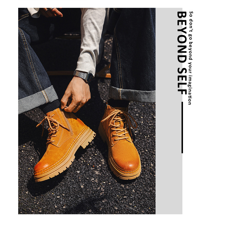 폭발적인 다목적 영국 스타일 레트로 작업복 부츠 기관차 두꺼운 단독 쇼트 부츠 증가 가을 및 겨울 유행 쇼트 부츠 마틴 부츠