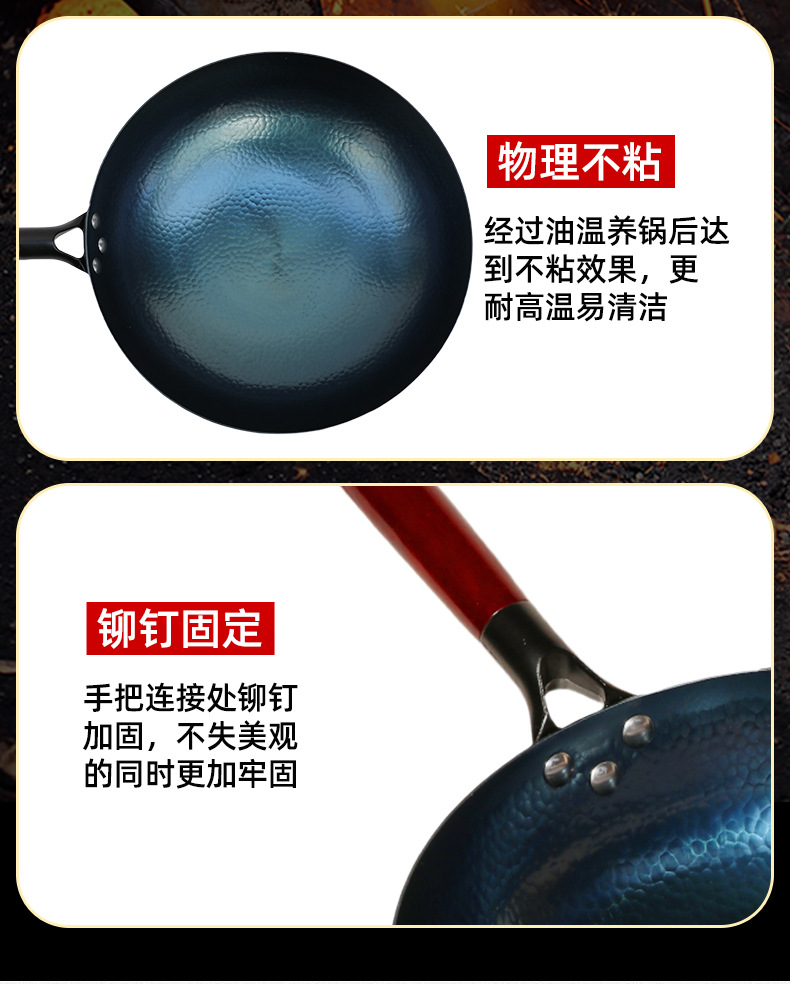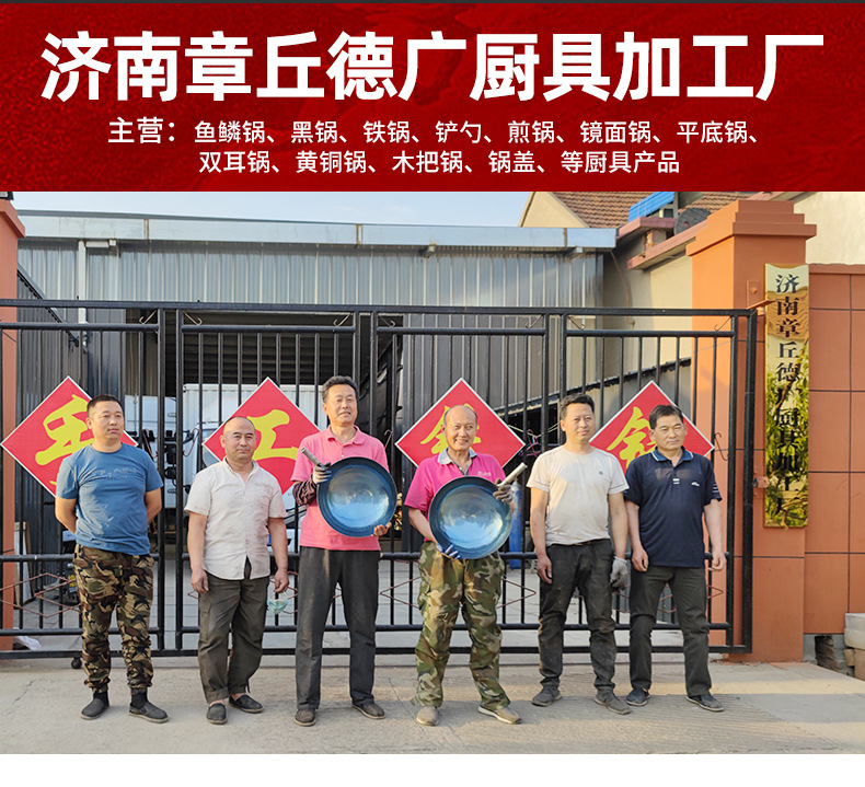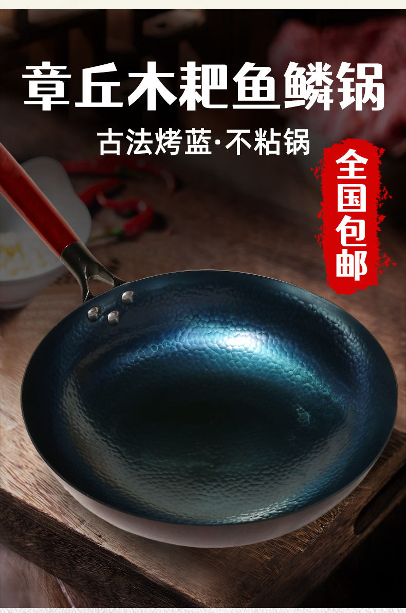 Zhangqiu 코팅되지 않은 철 냄비 나무 갈퀴 물고기 규모 냄비 철 냄비 손으로 단조 구식 가정용 물고기 규모 패턴 요리 붙지 않는 냄비