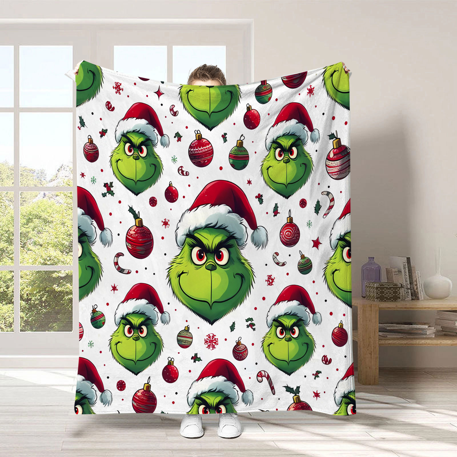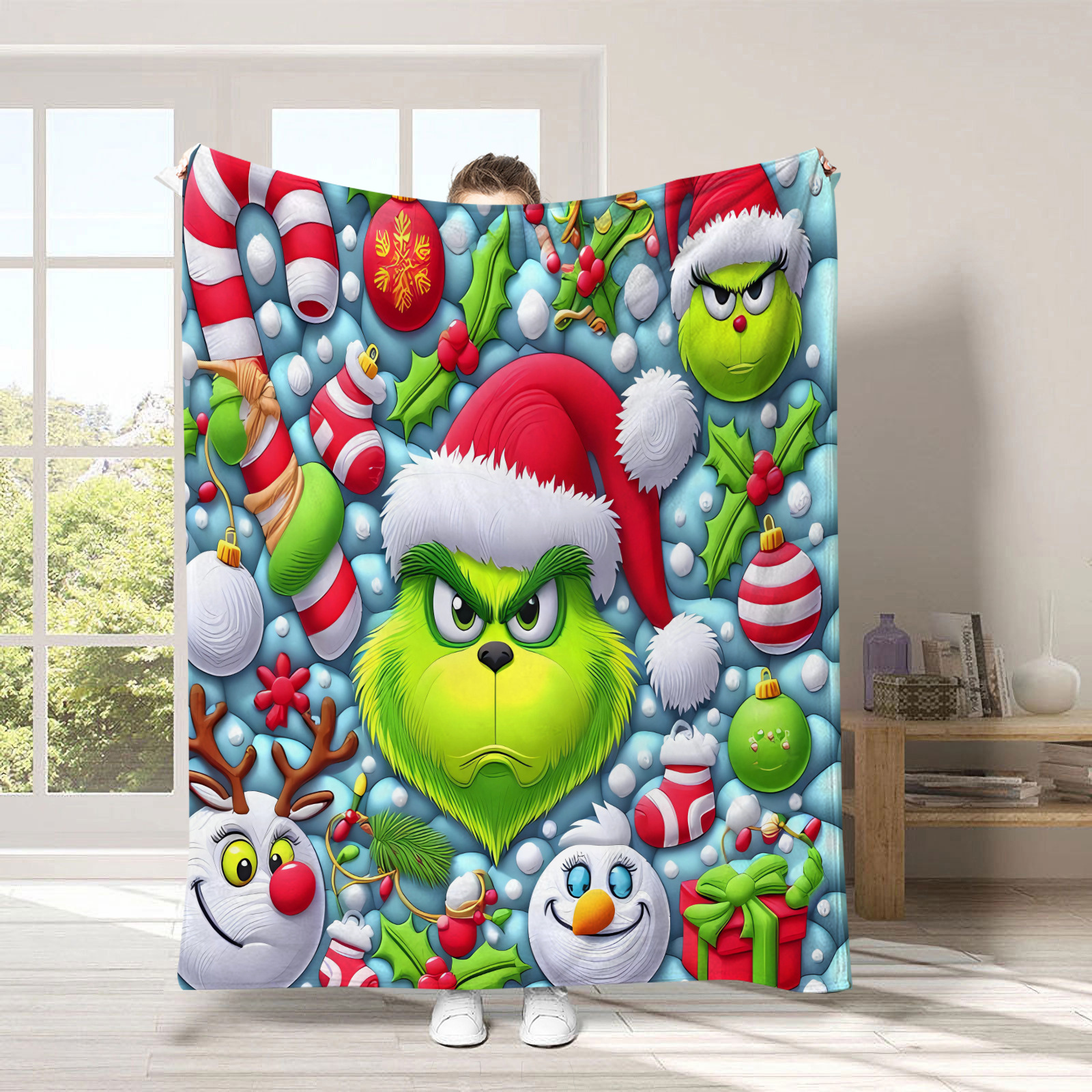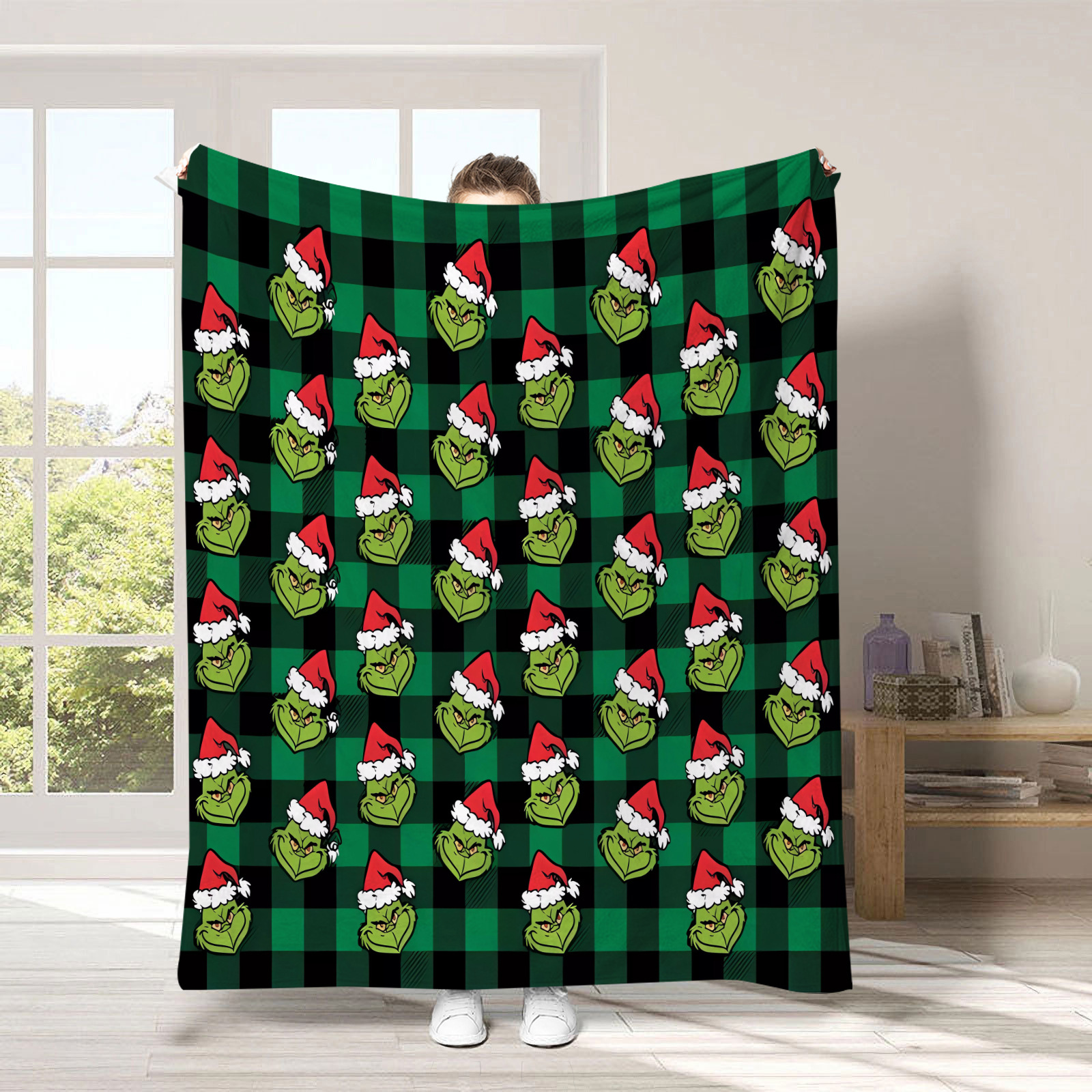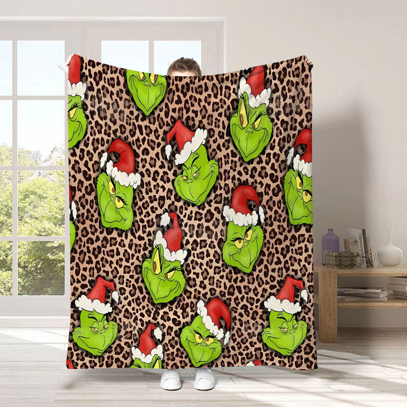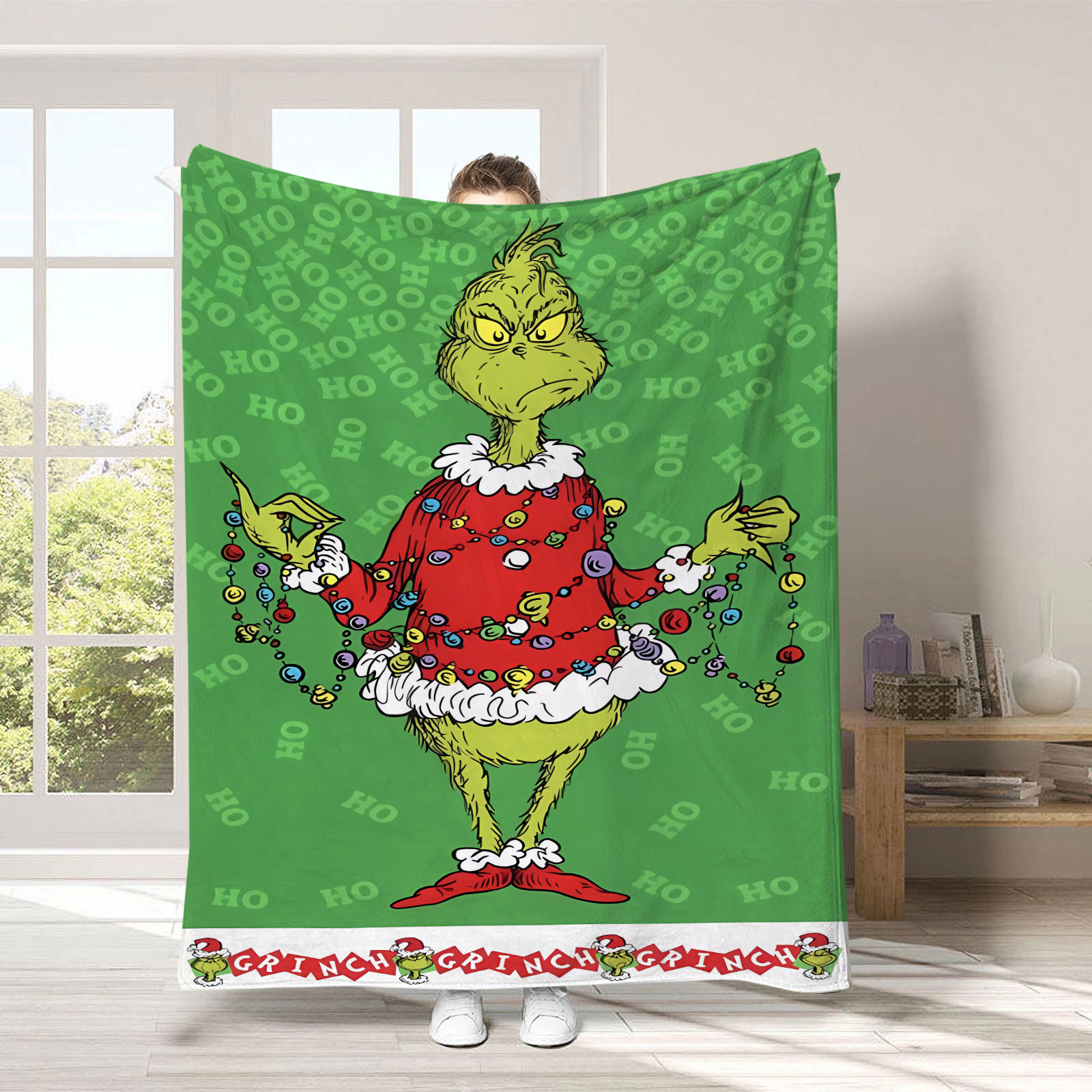 대외 무역 국경 디지털 인쇄 담요 크리스마스 녹색 머리 괴물 그라인치 플란넬 에어컨 점심 식사 담요스토어 가기